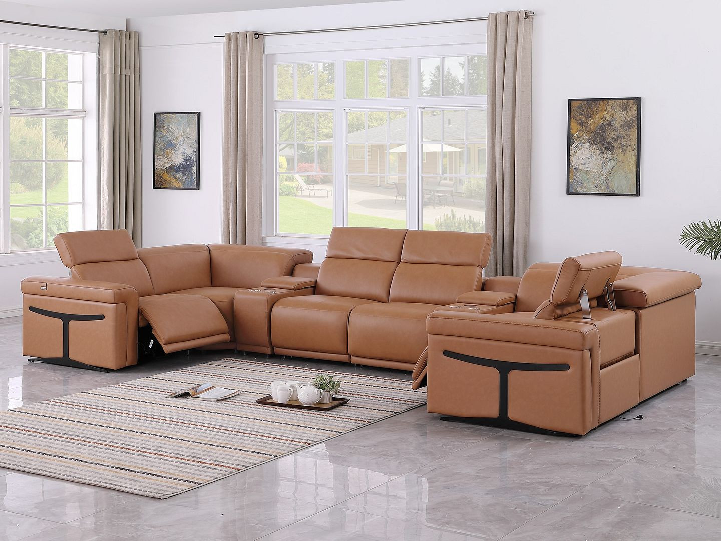 chestnut italian leather power reclining, italian leather power reclining shaped, leather power reclining shaped piece, shaped piece corner sectional console, reclining shaped piece corner sectional |