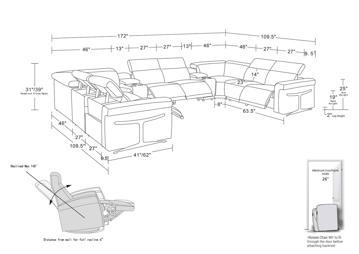 | Arm Height - Floor to Arm: |