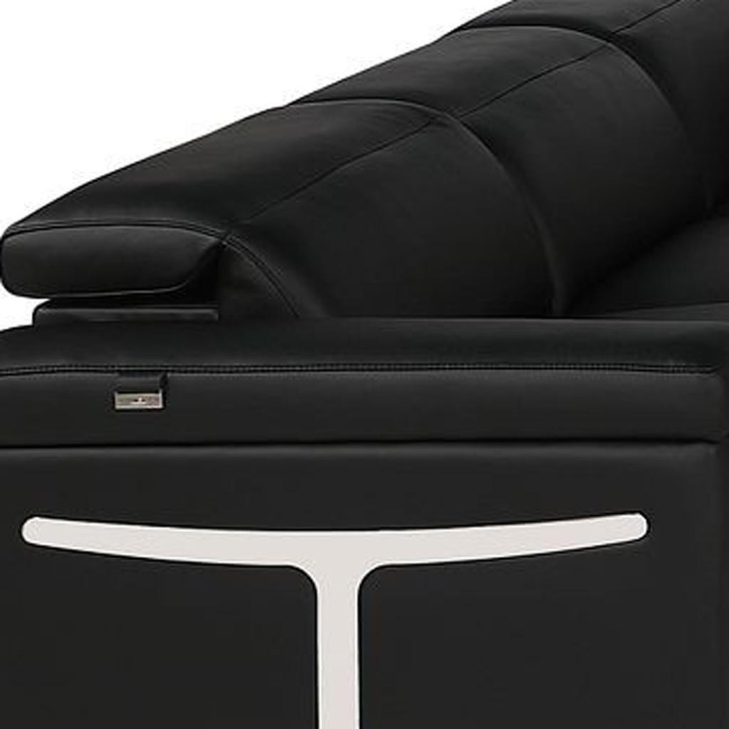 italian leather power reclining shaped, black italian leather power reclining, leather power reclining shaped piece, shaped piece corner sectional console, reclining shaped piece corner sectional |