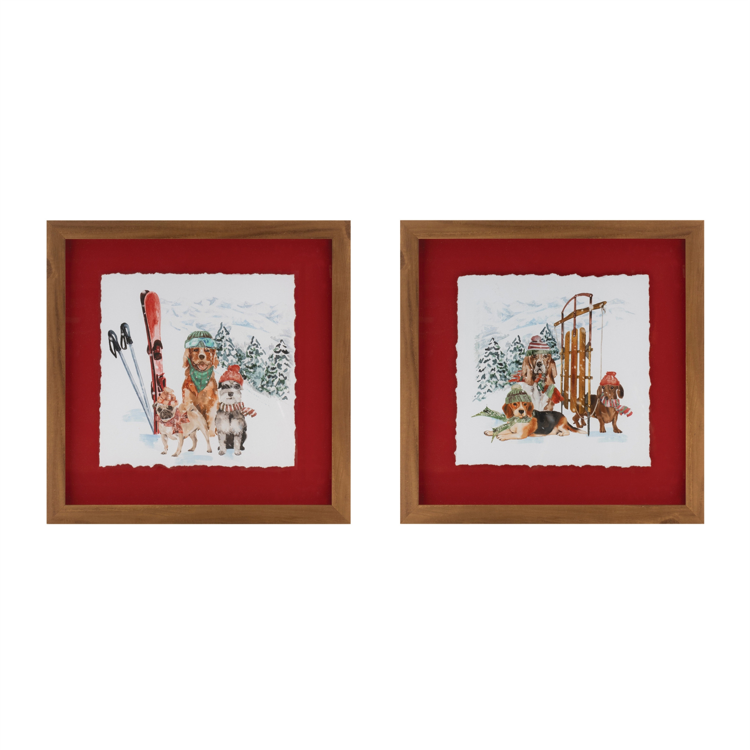 Bring some sizzle to your space with this eye-catching set of two dog sled and ski brown framed wall art. This adorable dog inspired art will hold a special place in your heart. Reproduced for you on canvas, this hanging decorative accent will be a trendy and fashionable way to dress your walls. Hang on your wall to add some up to date fashion and decoration. Utilize this opportunity to create a focal point in the room with this fabulous wall decor option. 12.25-inch h x 12.25-inch w x 1.00-inch d.