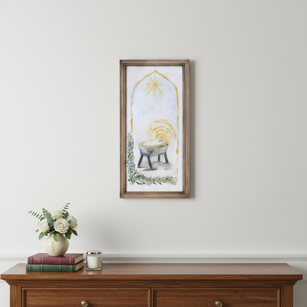 This christmas manger brown framed wall art is a great way to celebrate and decorate for the holidays. This textual art is a way to express your artistic style and add some fashion to your walls. Reproduced for you on paper, this hanging decorative accent will be a trendy and fashionable way to dress your walls. Adding this hanging wall art to your space to make your room feel more finished and attractive. Utilize this opportunity to create a focal point in the room with this fabulous wall decor option. 23.75-inch h x 12.00-inch w x 0.50-inch d.