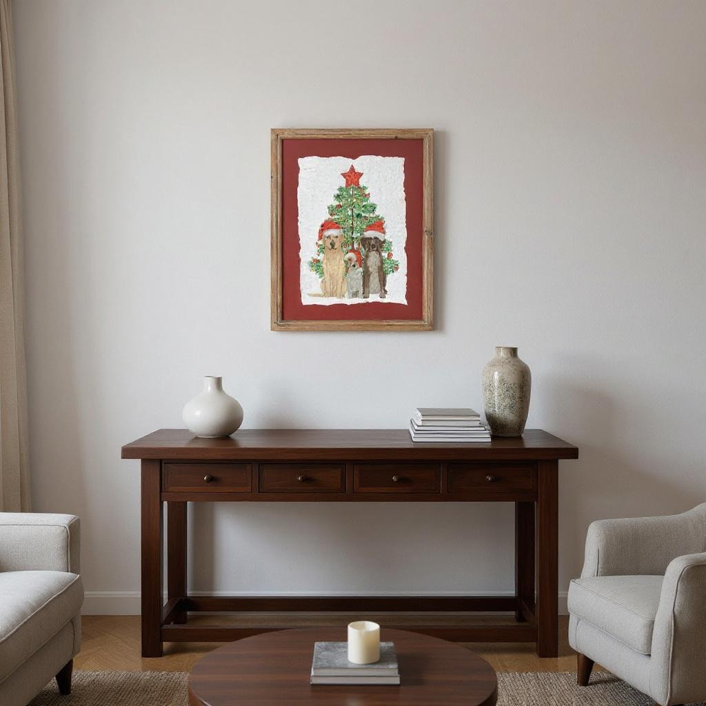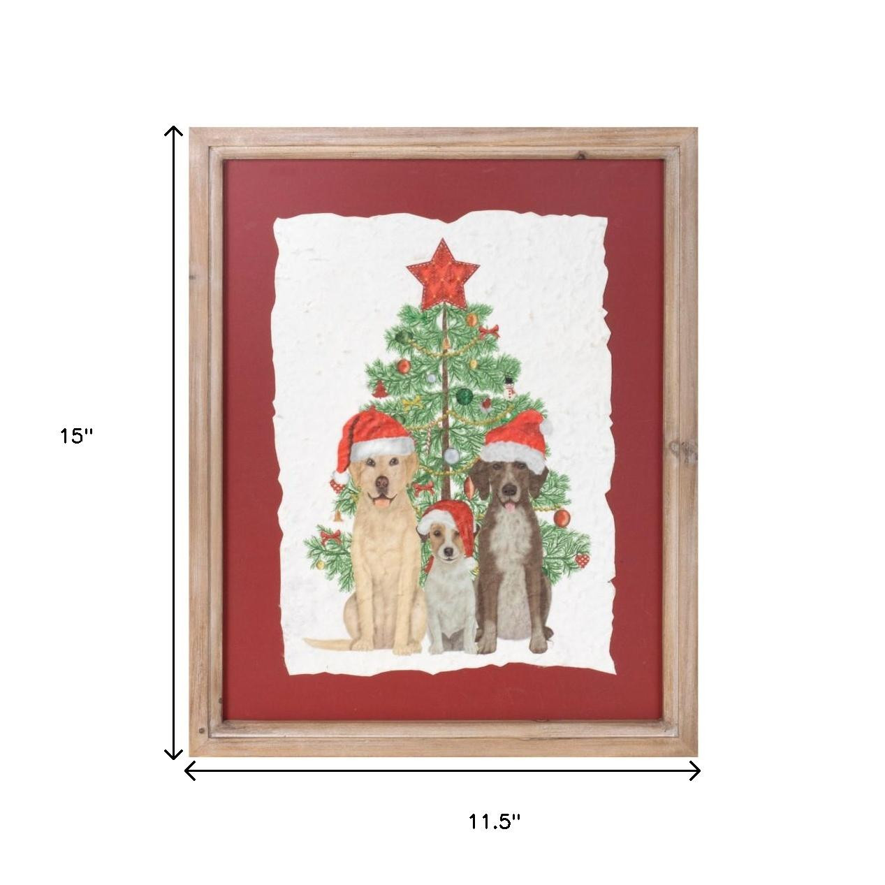 The holiday dogs and christmas tree brown framed wall art is the perfect decorative accessory for your home. This adorable dog inspired art will hold a special place in your heart. This textual art is a way to express your artistic style and add some fashion to your walls. Reproduced for you on paper, this hanging decorative accent will be a trendy and fashionable way to dress your walls. Adding this hanging wall art to your space to make your room feel more finished and attractive. Utilize this opportunity to create a focal point in the room with this fabulous wall decor option. 15.00-inch h x 11.50-inch w x 0.50-inch d.