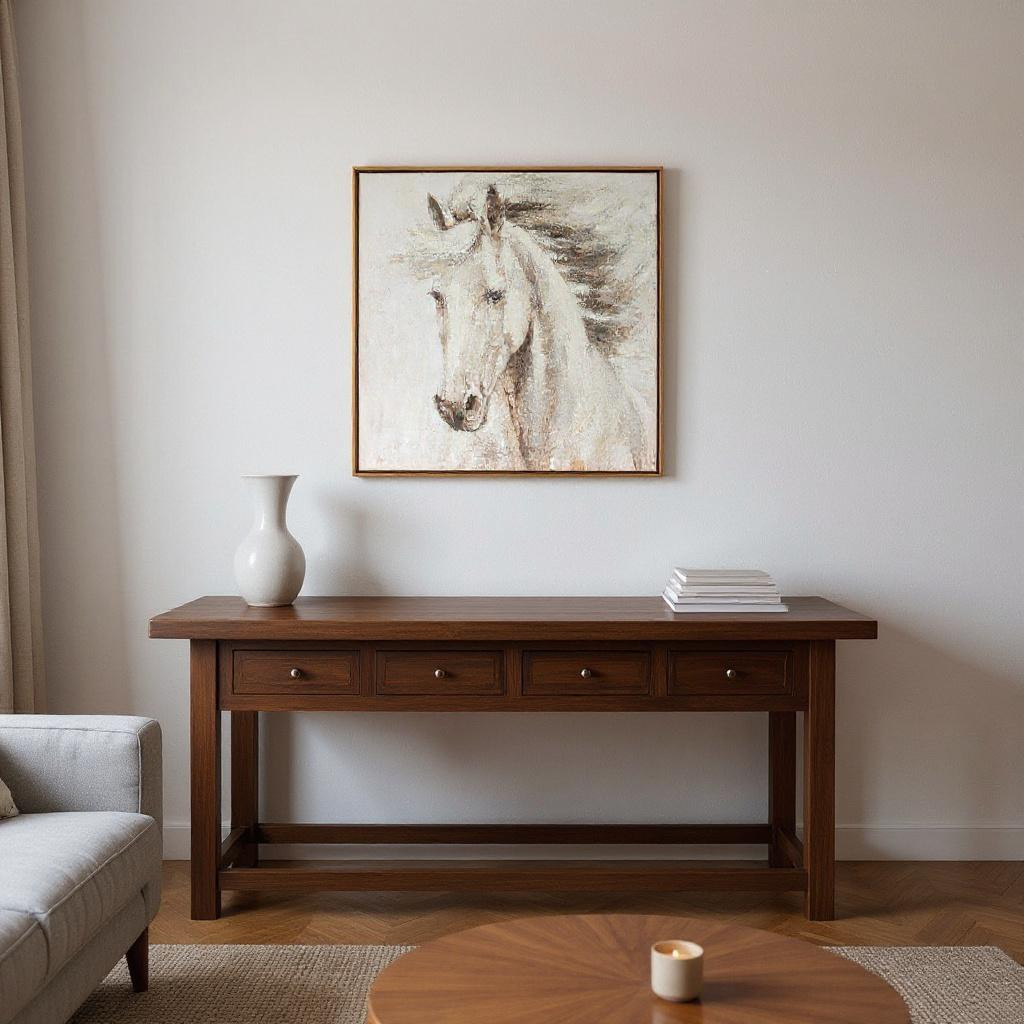 This framed horse brown framed wall art will add a beautiful decorative accent to your decor. Update your walls with this farm animal decor. This textual art is a way to express your artistic style and add some fashion to your walls. Reproduced for you on canvas, this hanging decorative accent will be a trendy and fashionable way to dress your walls. Hang on your wall to add some up to date fashion and decoration. Utilize this opportunity to create a focal point in the room with this fabulous wall decor option. 24.00-inch h x 24.00-inch w x 1.50-inch d.
