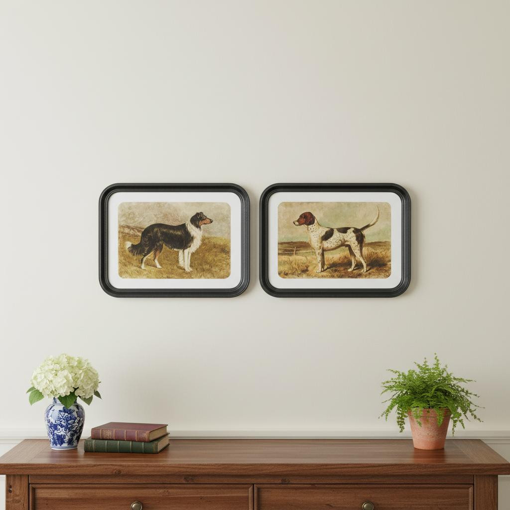 Unique and decorative, this set of two country dog buddies black framed wall art will leave a lasting impression. This adorable collie and pointer dog inspired art will hold a special place in your heart. This textual art is a way to express your artistic style and add some fashion to your walls. Reproduced for you on paper, this hanging decorative accent will be a trendy and fashionable way to dress your walls. Hang on your wall to add some up to date fashion and decoration. Instantly liven up your space with this art that brings color and dimension to your walls. 11.80-inch h x 15.70-inch w x 0.90-inch d.