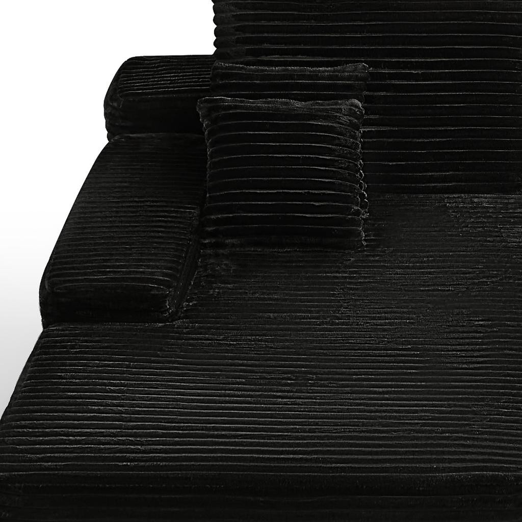 modular sofa chaise toss pillows, sofa chaise toss pillows, black corduroy modular sofa chaise, corduroy modular sofa chaise, 82" black corduroy modular sofa |