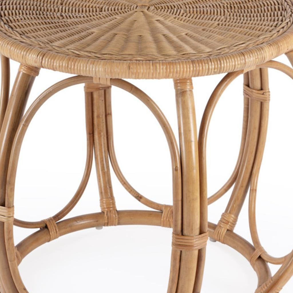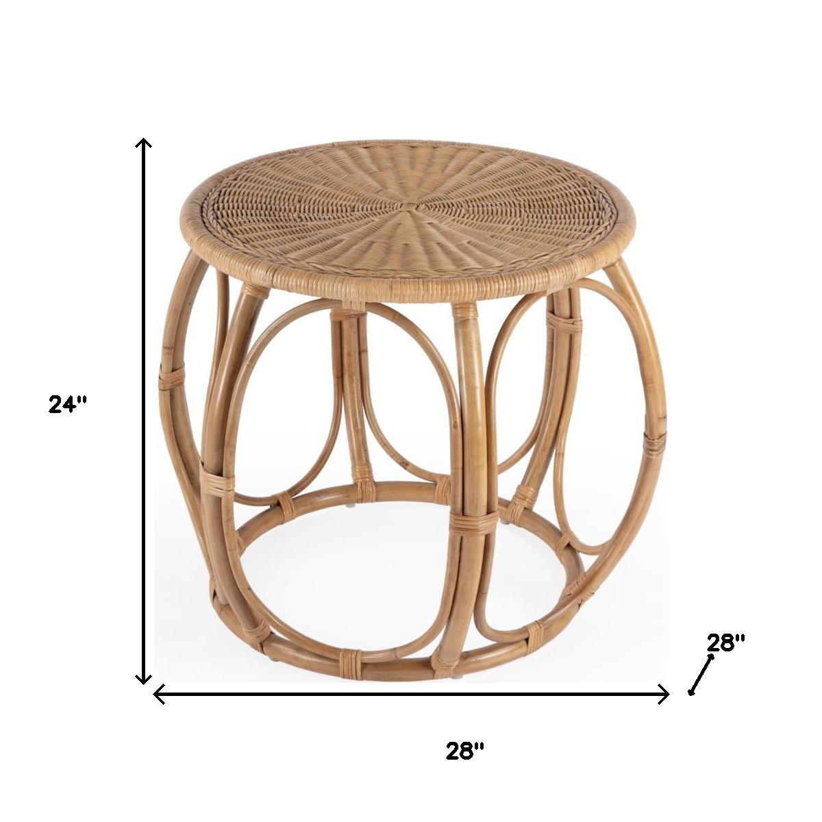 Distinctive in style the 24-inch natural rattan round drum end table radiates a versatile charm. This table is made from rattan in a natural color throughout the base and top. the natural rattan gives your space a casual vibe that is great for coastal, tropical, or bohemian style. An ideal location for placing your snacks and drinks, and a place to keep your lamp, frames, or other accessories. This versatile table is a great accent for most any room. 24-inch h x 28-inch w x 28-inch d.