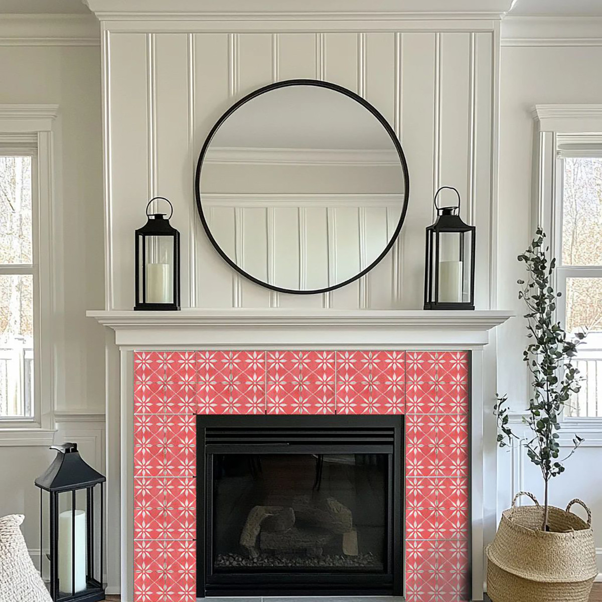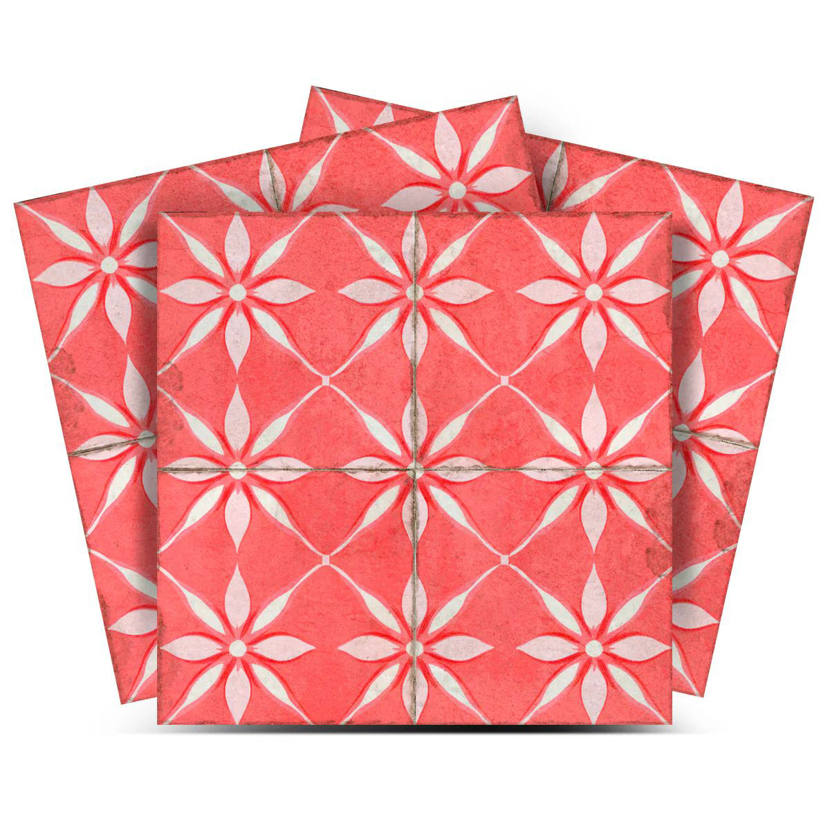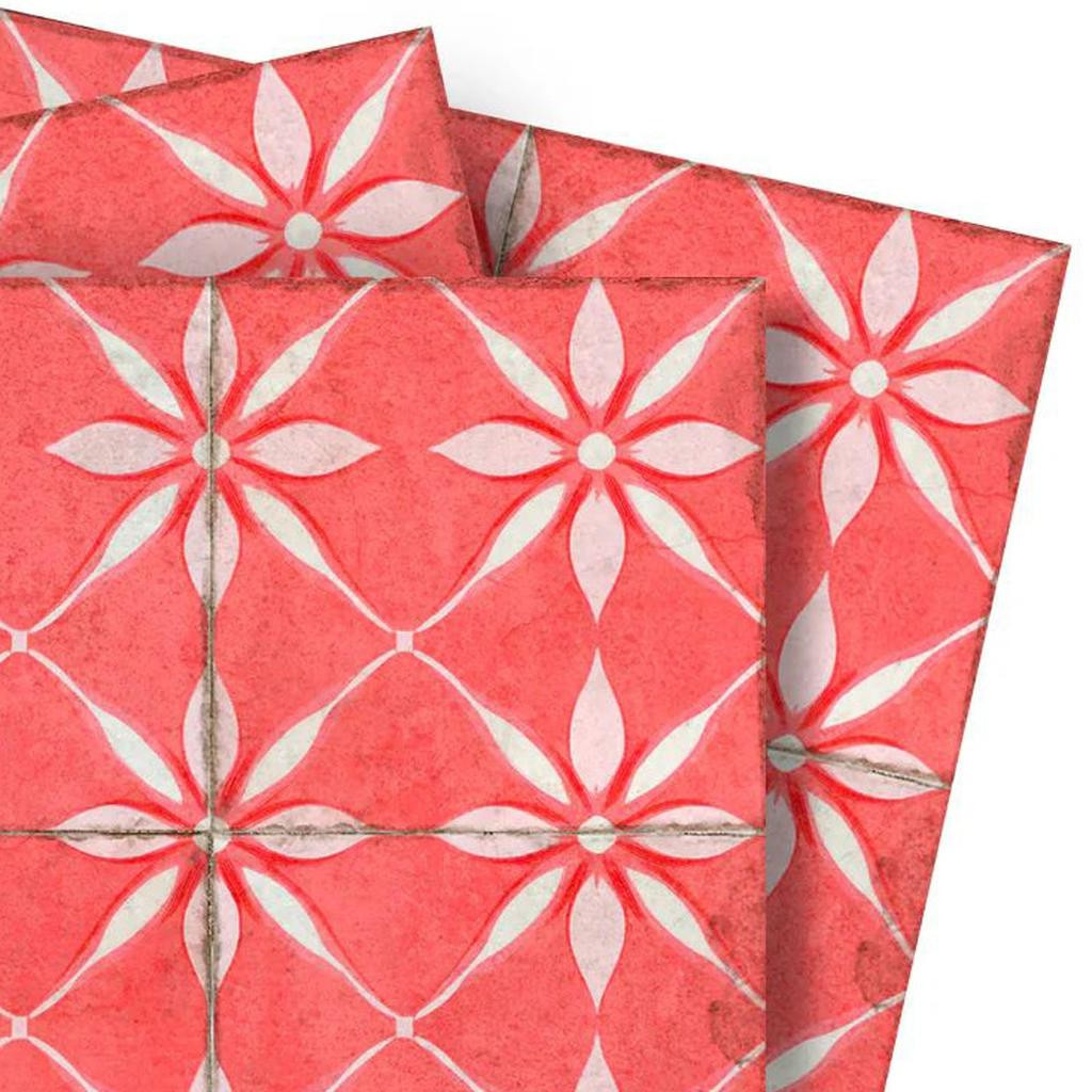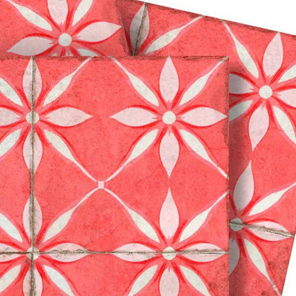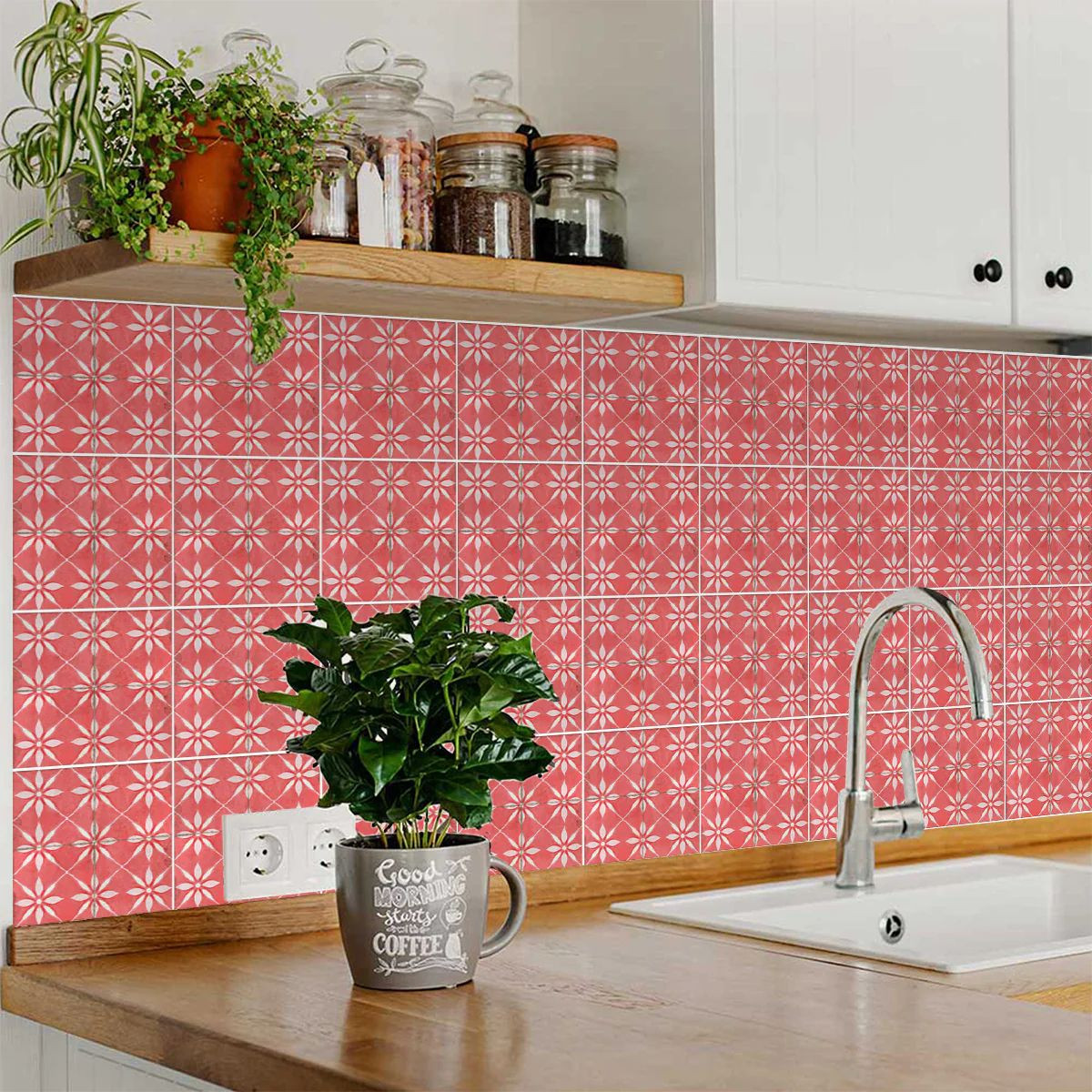 Indian red floral tile stickers, mosaic vinyl peel stick removable tiles, kitchen peel stick, backsplash peel stick tiles, mosaic peel stick removable |