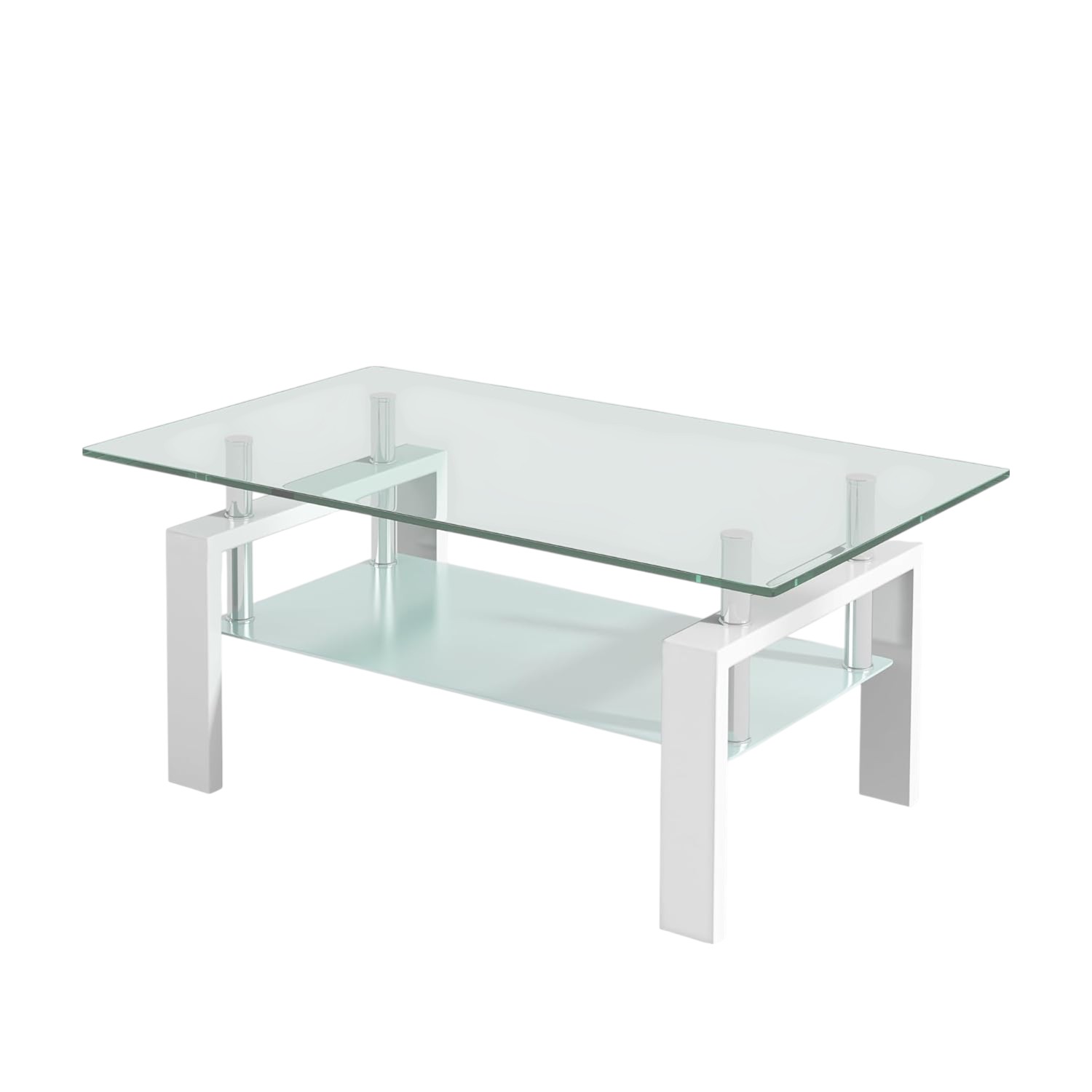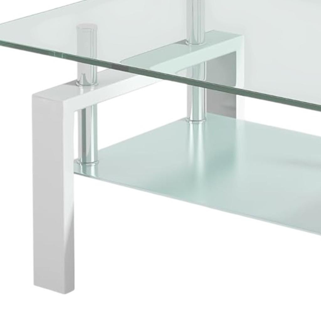 white glass steel coffee table, glass steel coffee table shelf, glass steel coffee table, coffee table shelf, 39" clear white glass |