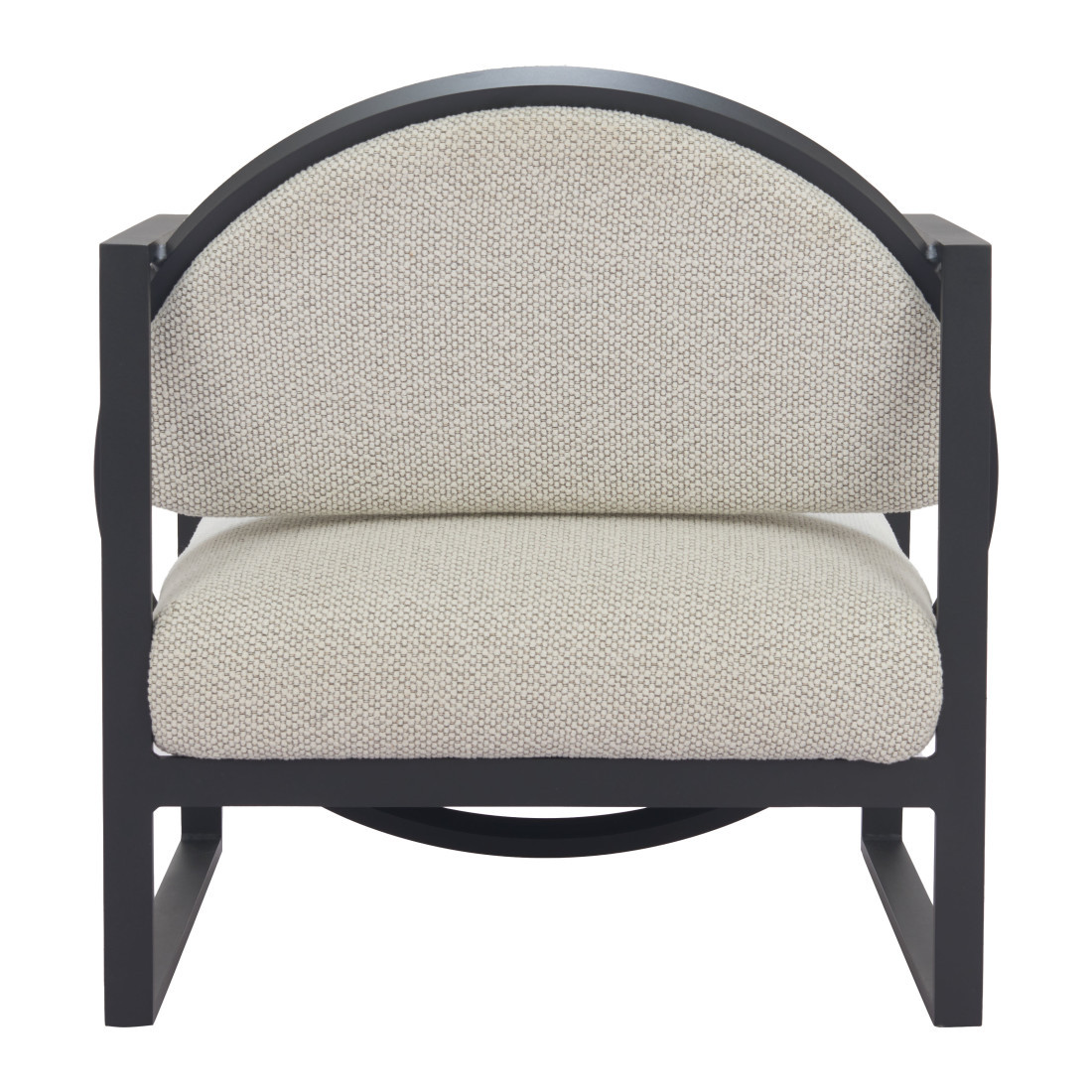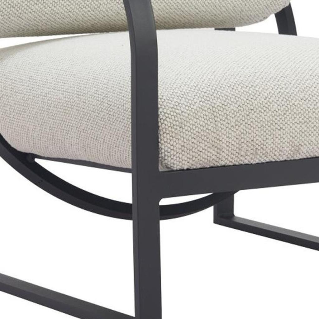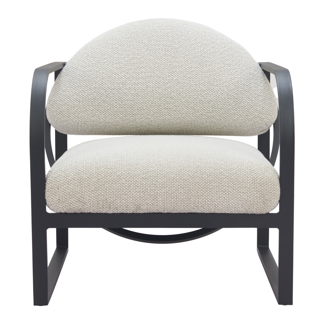 A mix of form and function, this 28-inch ivory and black upholstered arm chair will bring a good looking and usable accent to your space. Built to last this arm chair is finished in solid ivory 100% polyester to give your room a great update. The sturdy inner frame is built with high quality aluminum, includes armrests, and features a pillow back that is accented with soft and comfortable cushioning. 28.30-inch h x 28.00-inch w x 30.00-inch d.