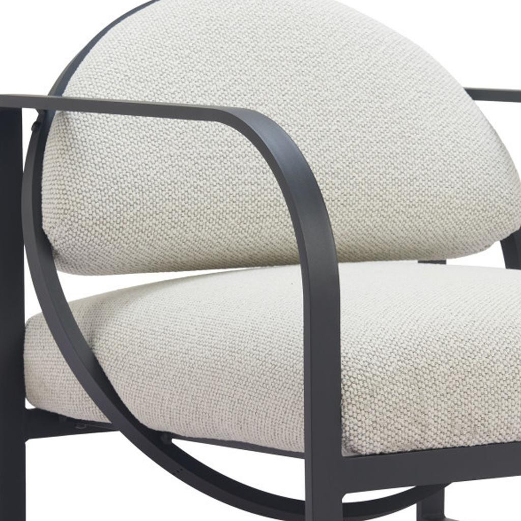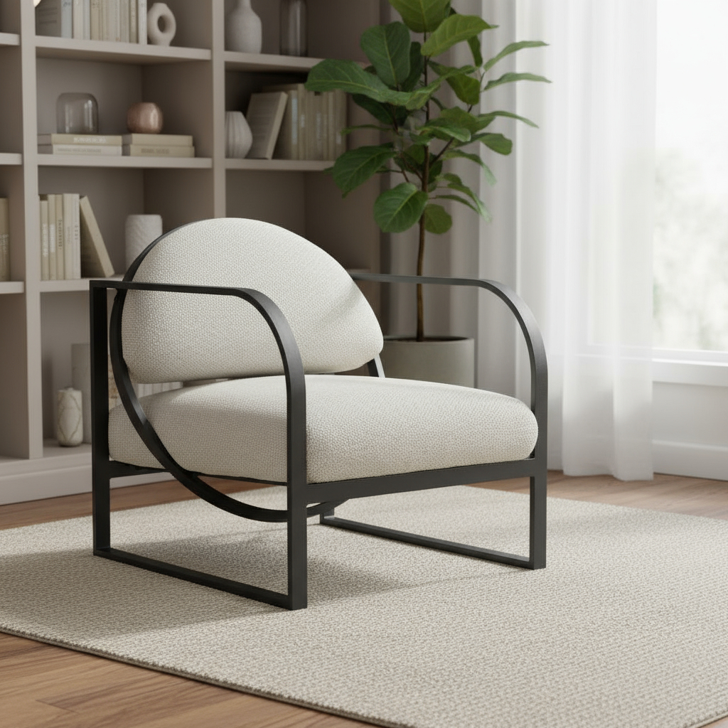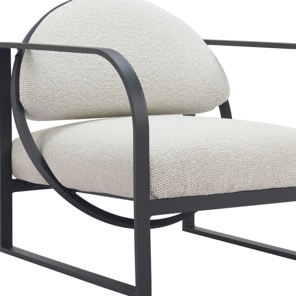 A mix of form and function, this 28-inch ivory and black upholstered arm chair will bring a good looking and usable accent to your space. Built to last this arm chair is finished in solid ivory 100% polyester to give your room a great update. The sturdy inner frame is built with high quality aluminum, includes armrests, and features a pillow back that is accented with soft and comfortable cushioning. 28.30-inch h x 28.00-inch w x 30.00-inch d.