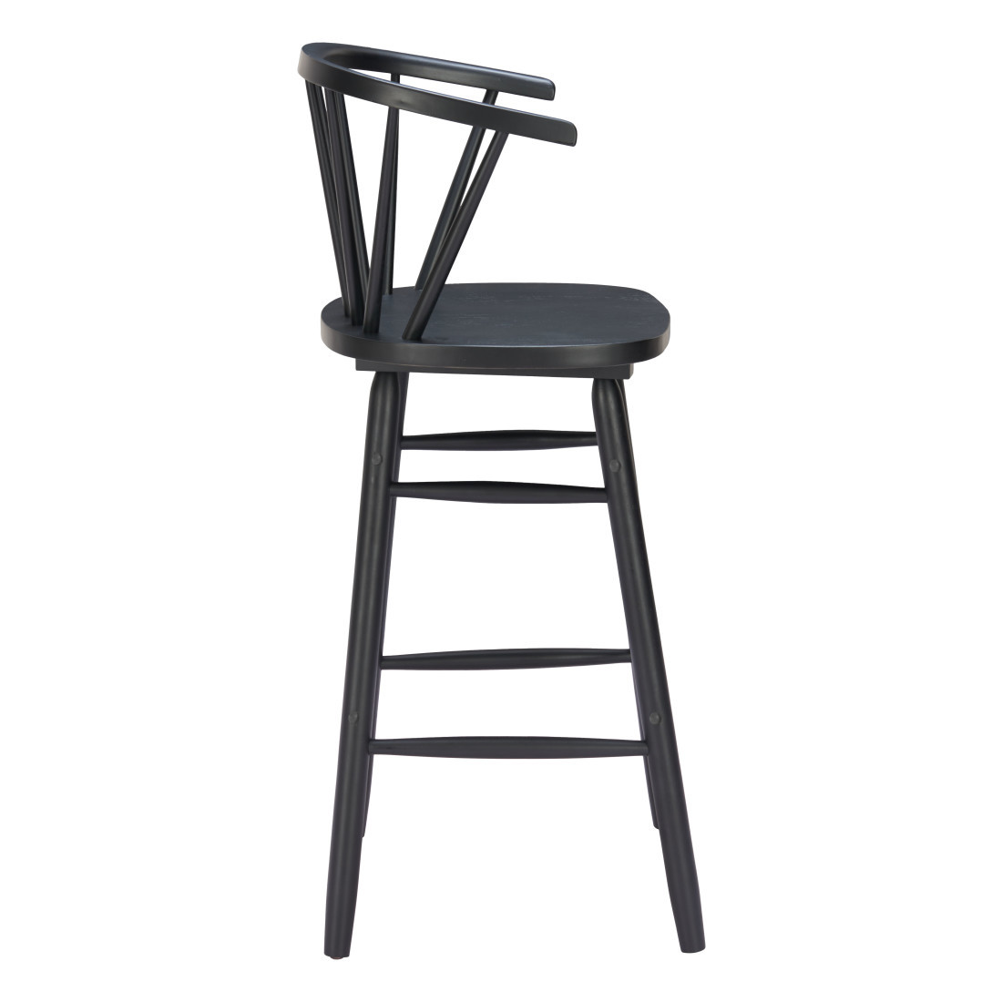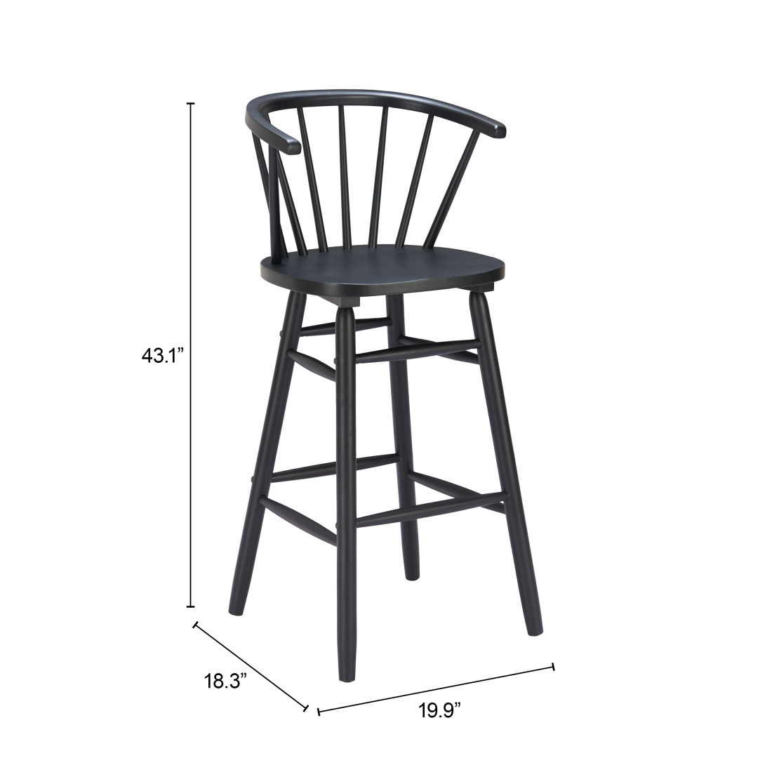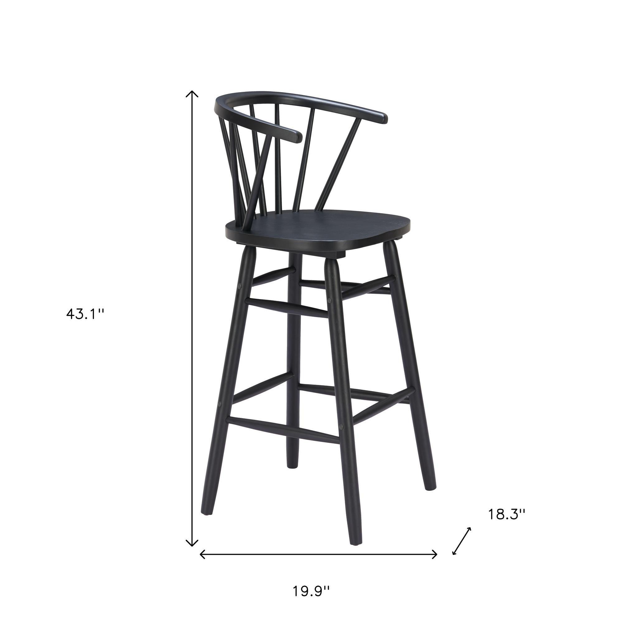 The perfect way to add some extra seating in your home, this set of two black solid wood low back bar chairs will elevate the look and vibe of your room. Designed with armrests for your comfort, this chair also features a footrest for comfort and convenience. The bucket shape of the seat combines with a low back to give this chair a comfortable and fashionable look. 43.10-inch h x 19.90-inch w x 18.30-inch d.