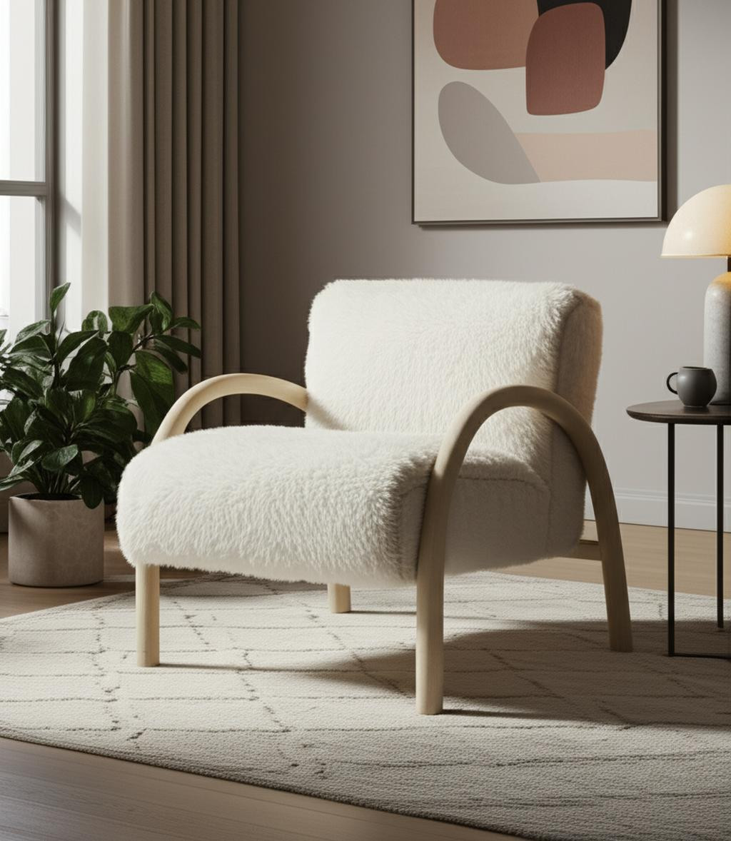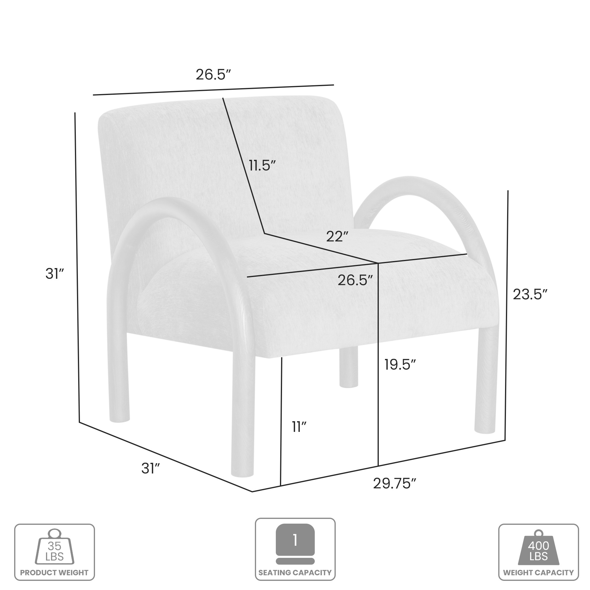 Give your living room, bedroom, or office a facelift with this beautifully crafted 30-inch off white and natural faux fur and wood arm chair. The simple silhouette of this accent chair features a fabulously chic and cozy textural faux fur in a shaggy off white. The high quality solid and manufactured wood frame flaunts convenient and stylish rounded armrests and a fluffy square back. 31.00-inch h x 29.75-inch w x 31.00-inch d.