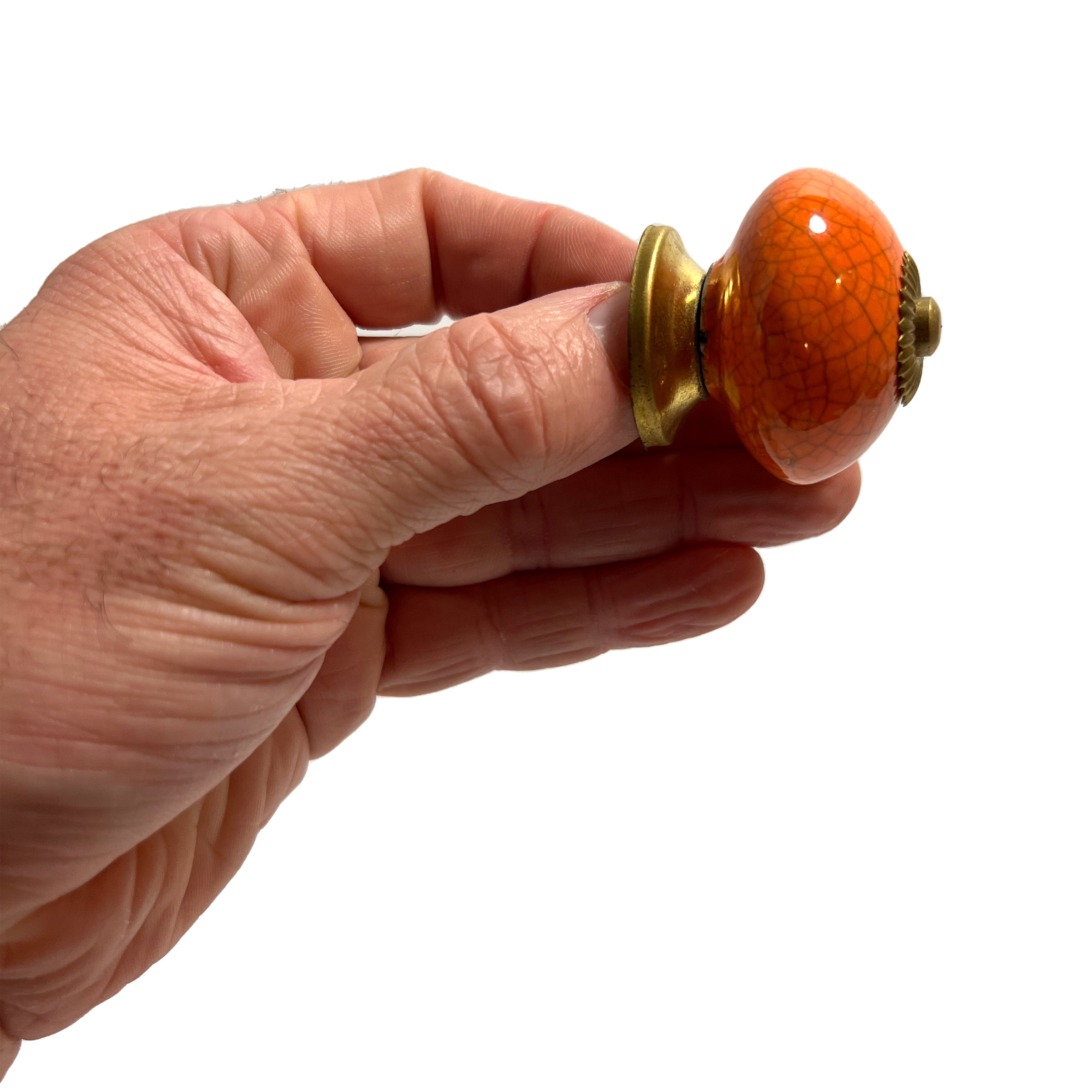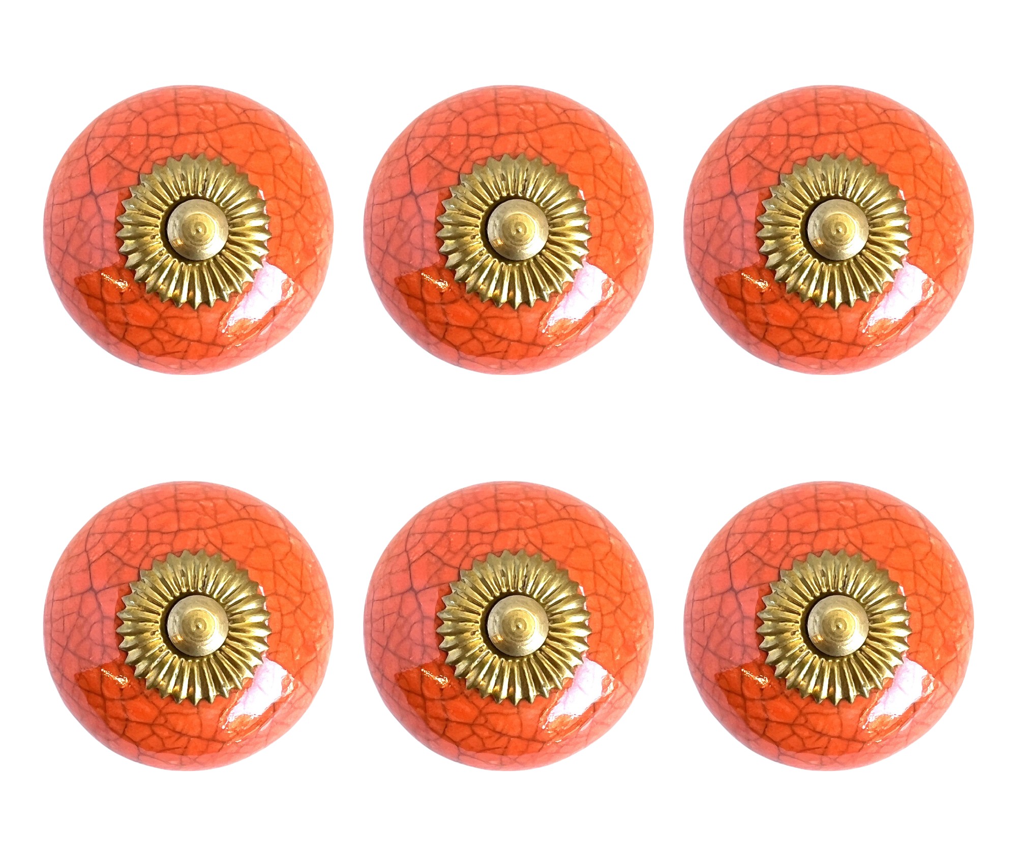 Upgrade your space with a high end look with this set of six coral and gold ceramic drawer pull knobs. Hand-painted by talented artisans, these knobs will add a touch of artisanal design. The round shape provides a classic appeal that complements various decor styles. Crafted from durable ceramic, these knobs bring both elegance and longevity to your furniture. Each knob comes with screws included for easy installation, ensuring a hassle-free upgrade to your drawers and cabinets. Enjoy the perfect blend of functionality and style with this exquisite set. 6-inch h x 6.25-inch w x 1.5-inch d.