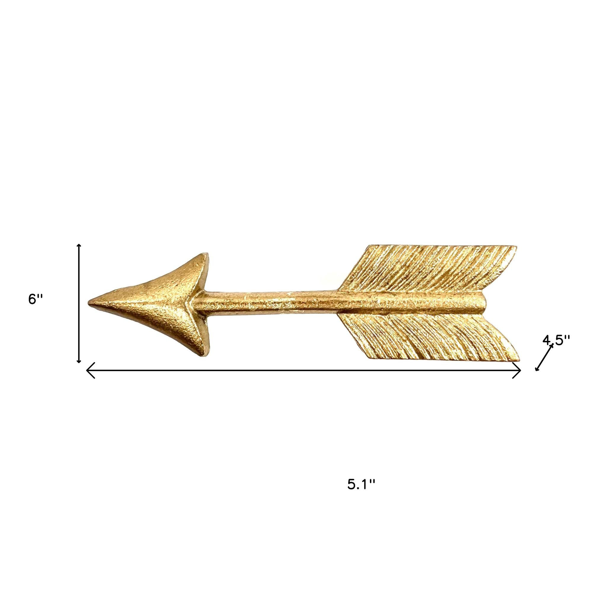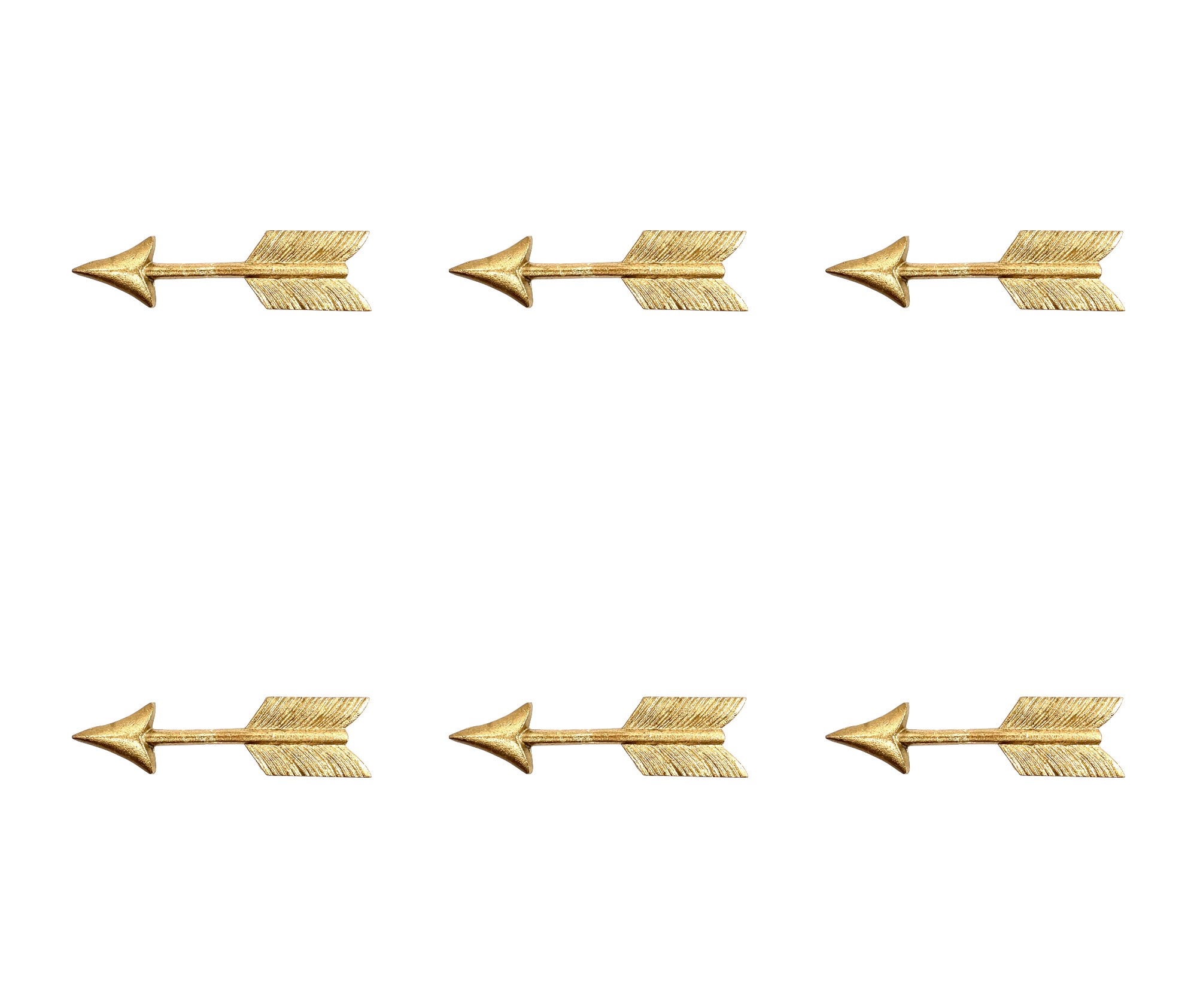 Transform your space quickly and easily with this set of six brass cast aluminum arrow drawer pull knobs. Hand-painted by talented artisans, these handles will add a touch of artisanal design with a fun bohemian playful style. Crafted from durable cast aluminum, these knobs offer longevity and style to your furniture. With screws included, installation is a breeze, making it simple to update your cabinetry or furniture. This set of six provides ample options for enhancing multiple spaces in your home. 6-inch h x 5.1-inch w x 4.5-inch d.
