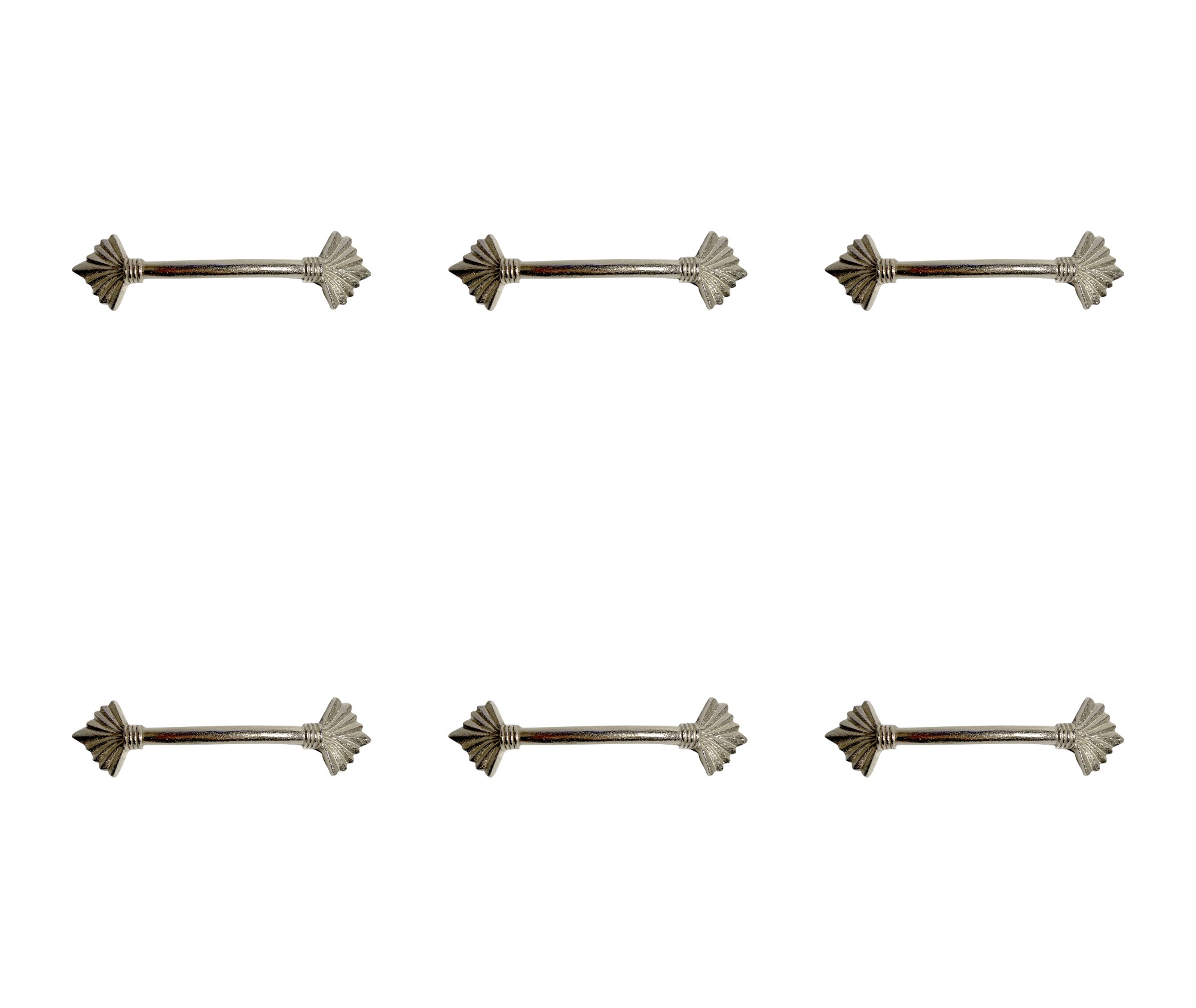 Give your drawers or cabinets a facelift with this set of six silver metal drawer pull knobs. These whimsical knobs are crafted from high-quality metal, ensuring durability and a sleek finish. Each knob features a machine-made construction that guarantees precision in both design and fit. The included screws make installation a breeze, allowing you to effortlessly upgrade your furniture. With a count of six, you can revamp multiple pieces in your home, bringing a cohesive look to your decor while adding a touch of charm to your living space. 4.75-inch h x 6.50-inch w x 3.62-inch d.
