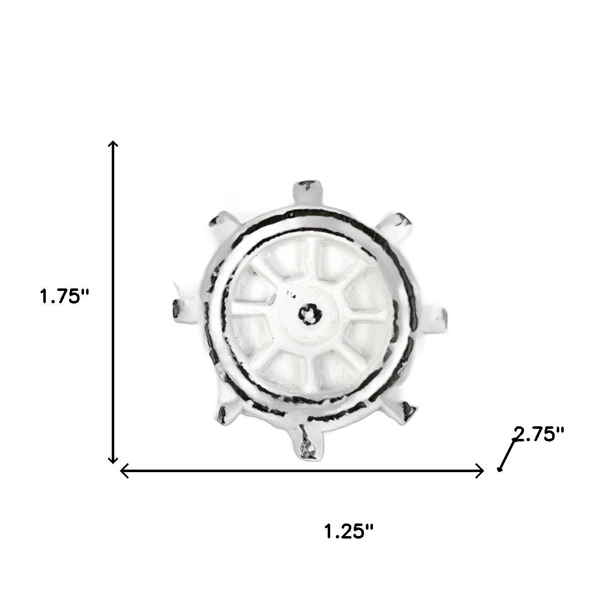 Give your drawers or cabinets a facelift with this set of six white iron drawer pull knobs. Machine made for precision to add a uniform look and style. These round knobs are crafted from durable iron, ensuring long-lasting performance in your home. Each knob features a nautical theme, perfect for adding a touch of coastal charm to your space. The set includes screws, making installation a breeze and ensuring a secure fit. With six knobs included, you can easily update multiple pieces of furniture to create a cohesive and stylish decor theme throughout your home. 1.75-inch h x 1.25-inch w x 2.75-inch d.