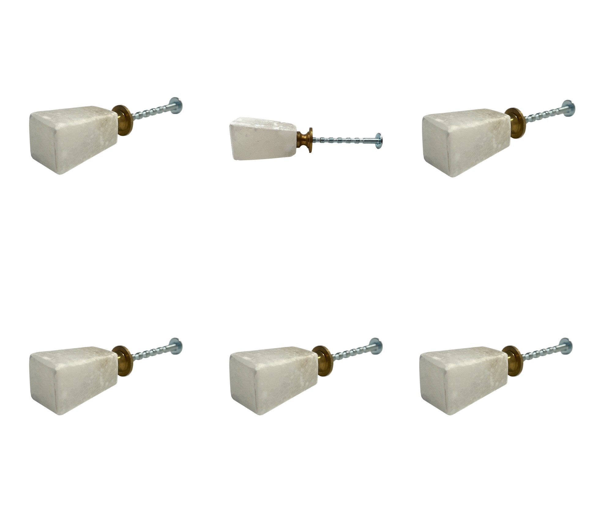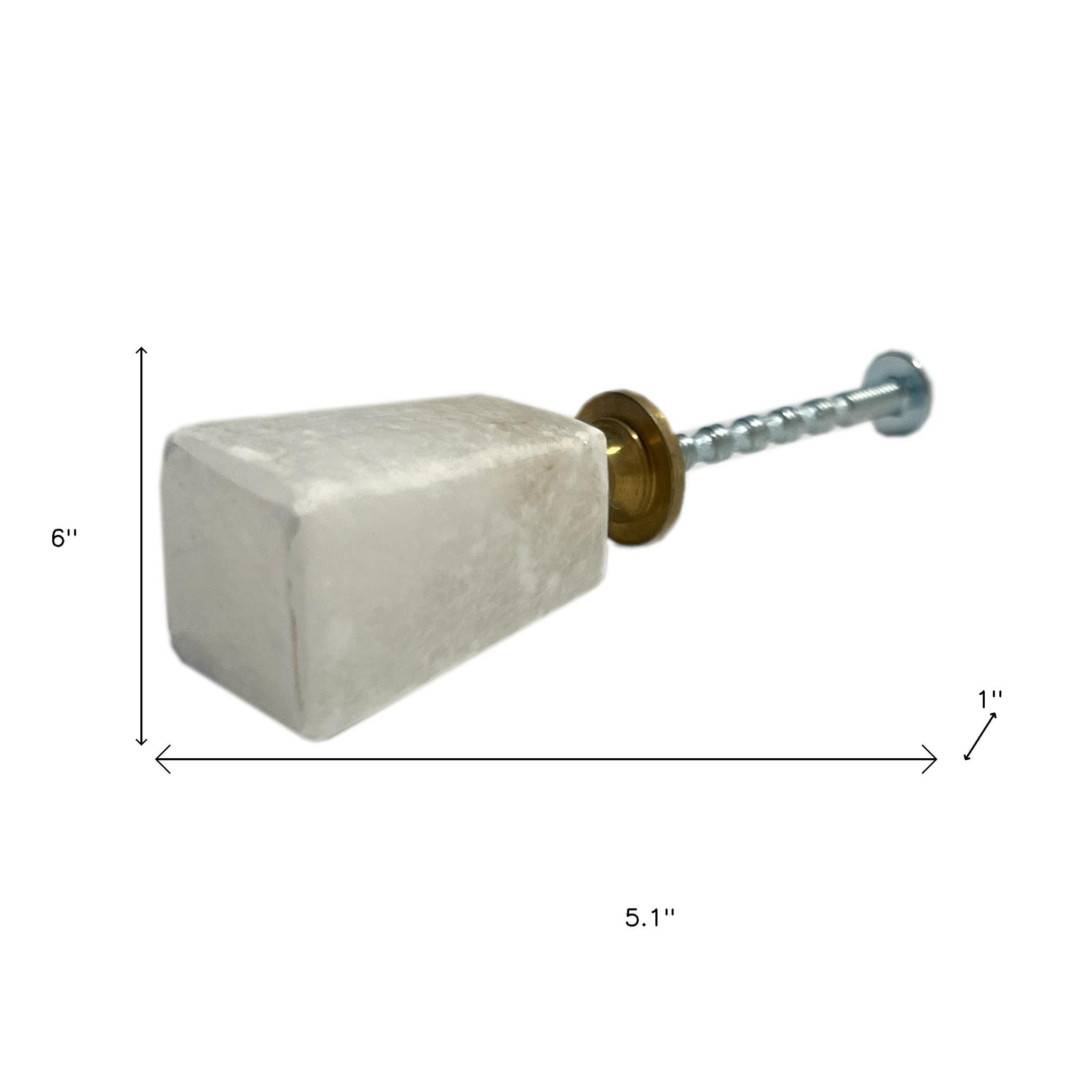 Give your drawers or cabinets a facelift with this set of six white stone square cylindrical drawer pull knobs. These unique tapered cylindrical knobs are crafted from durable stone, ensuring longevity and a premium feel. Designed to perfectly complement various decor styles, they add a touch of sophistication to any furnishings. The set includes six knobs, allowing for a cohesive and coordinated look across your furniture. Installation is easy with the included screws, making it a hassle-free upgrade. 6.00-inch h x 5.10-inch w x 1.00-inch d.
