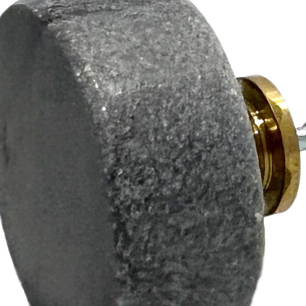 Give your drawers or cabinets a facelift with this set of six gray disc knob stone drawer pull knobs. Each knob features a sleek disc shape that harmonizes with contemporary decor. Crafted from durable stone, these knobs provide an elegant touch to any furniture piece. The machine-made construction ensures consistent quality and style throughout the set. Installation is straightforward, as screws are included for your convenience, making it easy to refresh your space with minimal effort. Transform your interiors with these stylish and functional drawer pulls that blend utility with modern aesthetics. 1.38-inch h x 1.00-inch w x 2.50-inch d.