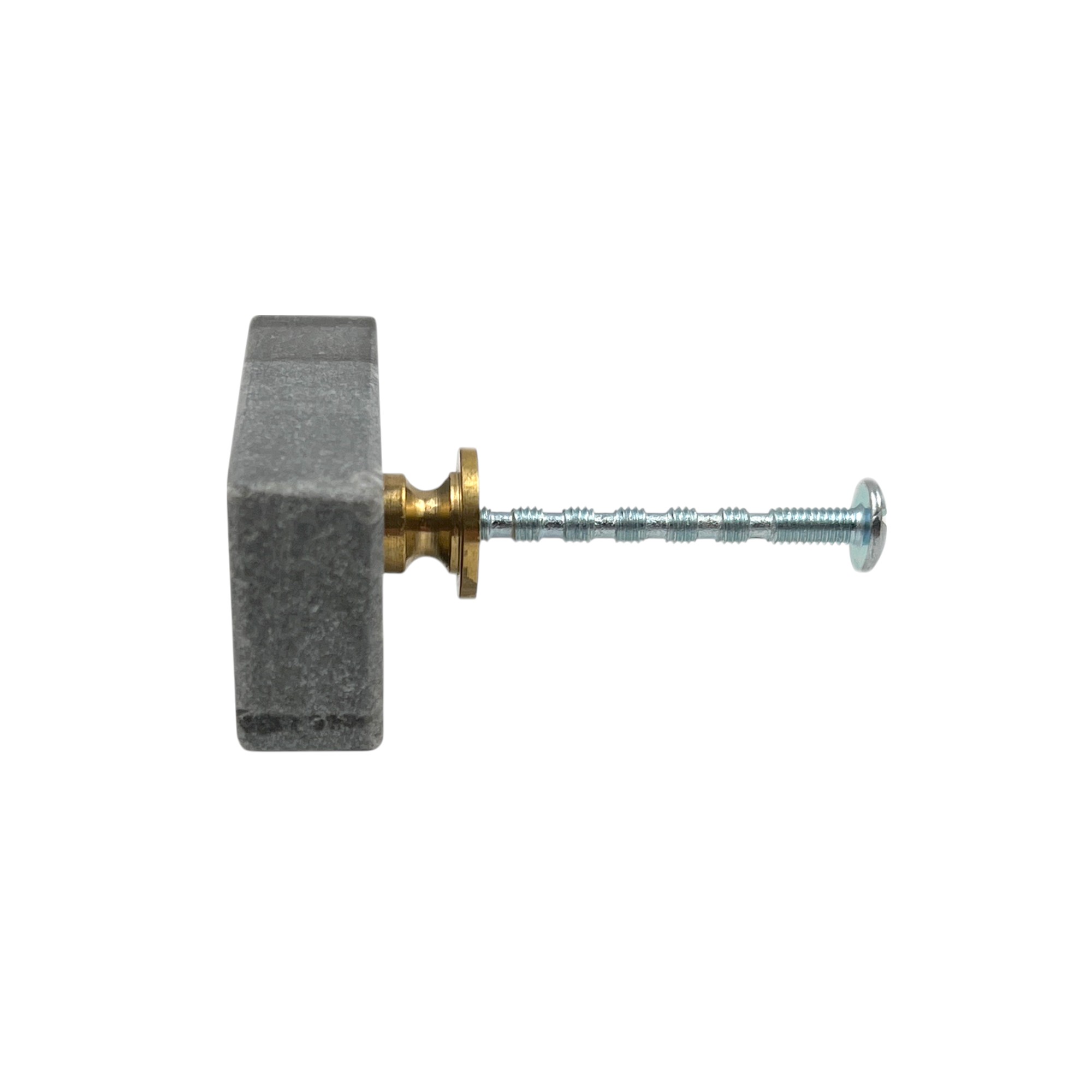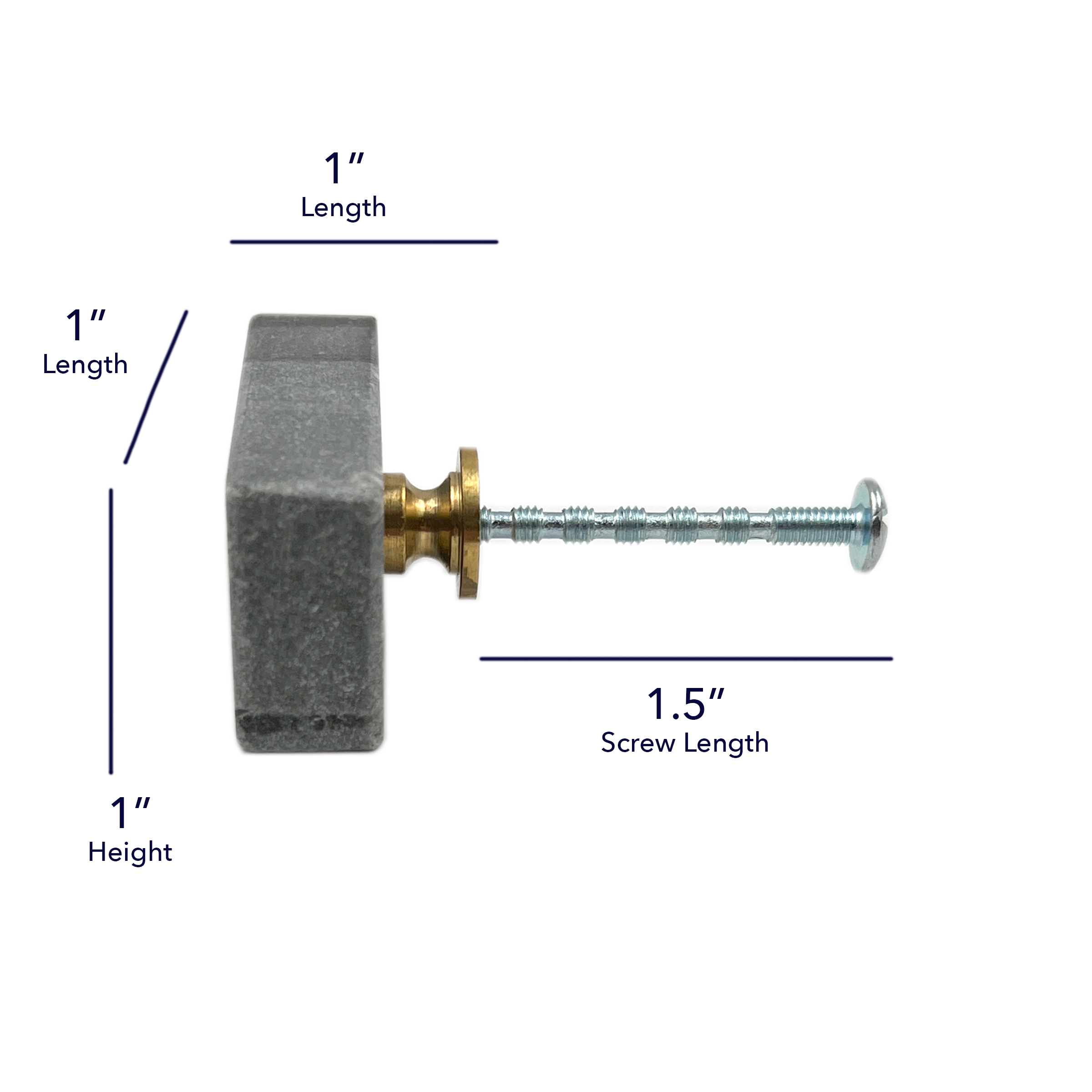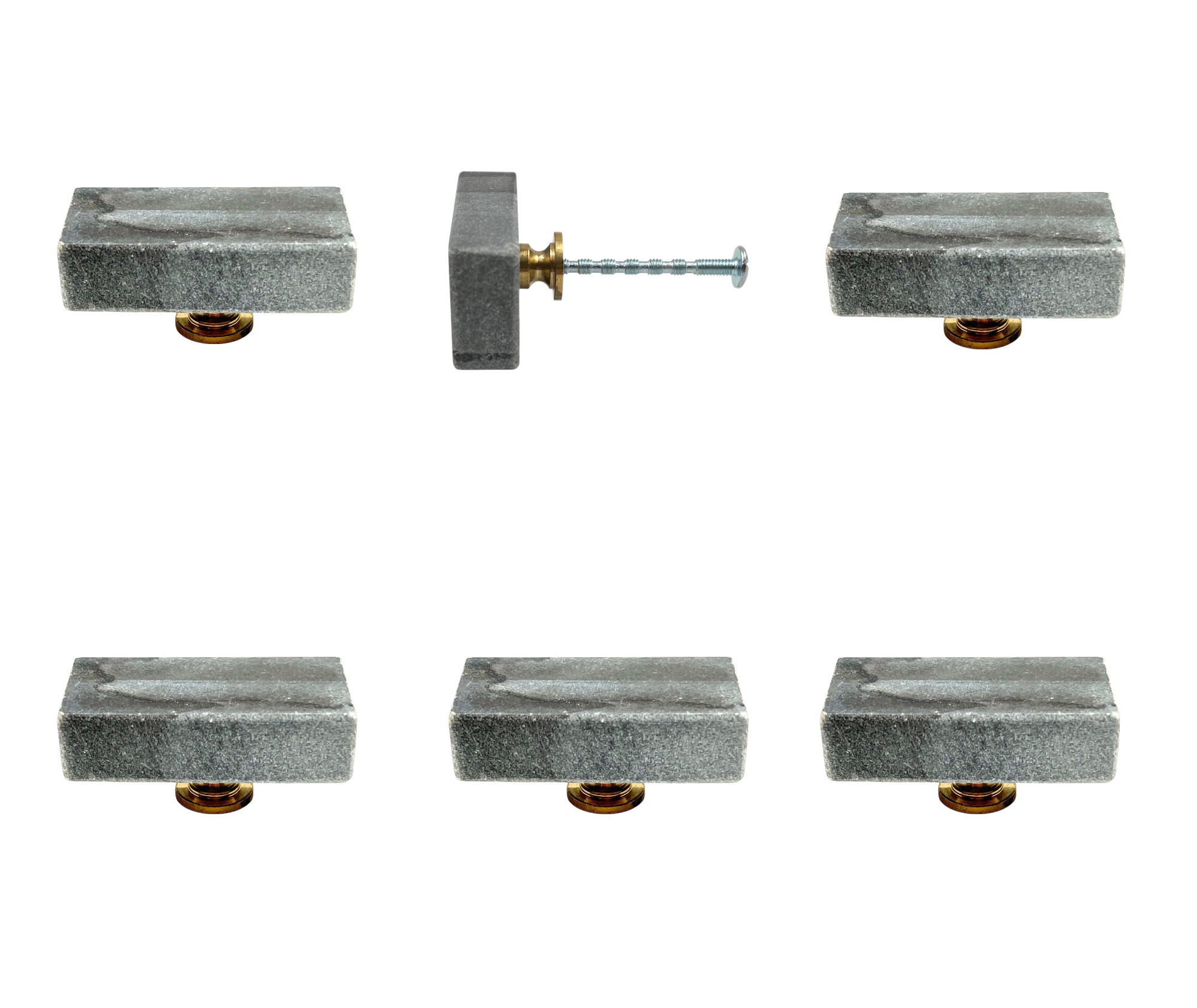Upgrade your space with a high end look with this set of six gray stone drawer pull knobs. A favorite of designers and diyer's alike, these high quality rectangular shaped knobs are versatile in use and will change up the look of your existing furniture and cabinetry in a snap. With a total of six knobs in this set, you can seamlessly enhance multiple drawers or cabinets, allowing for a cohesive look throughout your home. Embrace elegance and functionality with this stylish addition to your decor. 0.5-inch h x 1-inch w x 2-inch d.