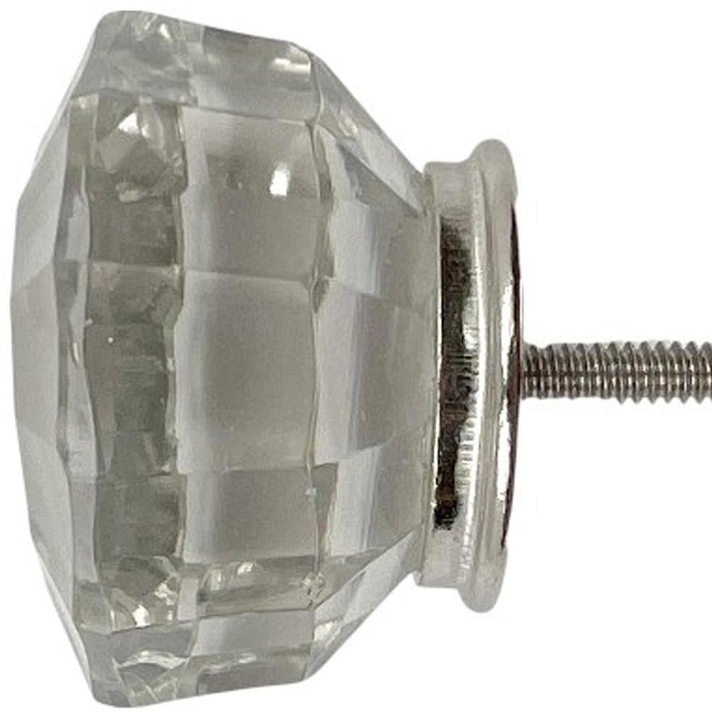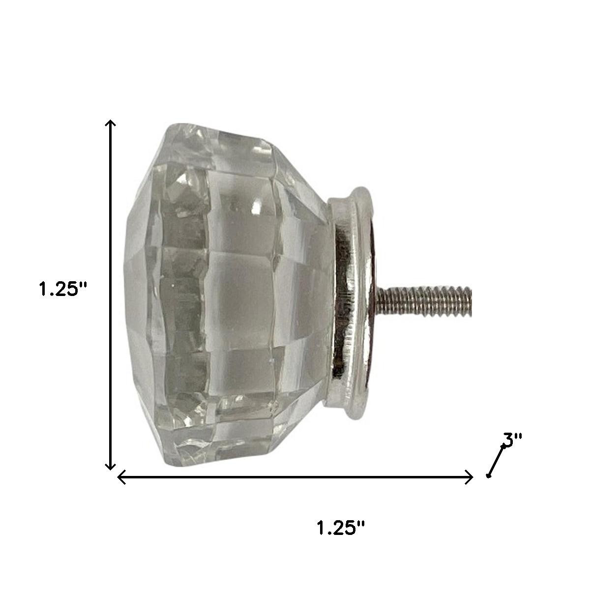 Upgrade your space with a high end look with this set of six clear glass drawer pull knobs. Featuring a sleek round shape, these knobs enhance any decor with their modern design. Crafted from high-quality glass, they effortlessly complement both traditional and contemporary styles. Each knob is machine made, ensuring consistent quality and durability for lasting use. The set includes screws for easy installation, making it convenient to transform your furniture or cabinets. With six knobs included, you can seamlessly upgrade multiple drawers or doors in your home. 1.25-inch h x 1.25-inch w x 3.00-inch d.