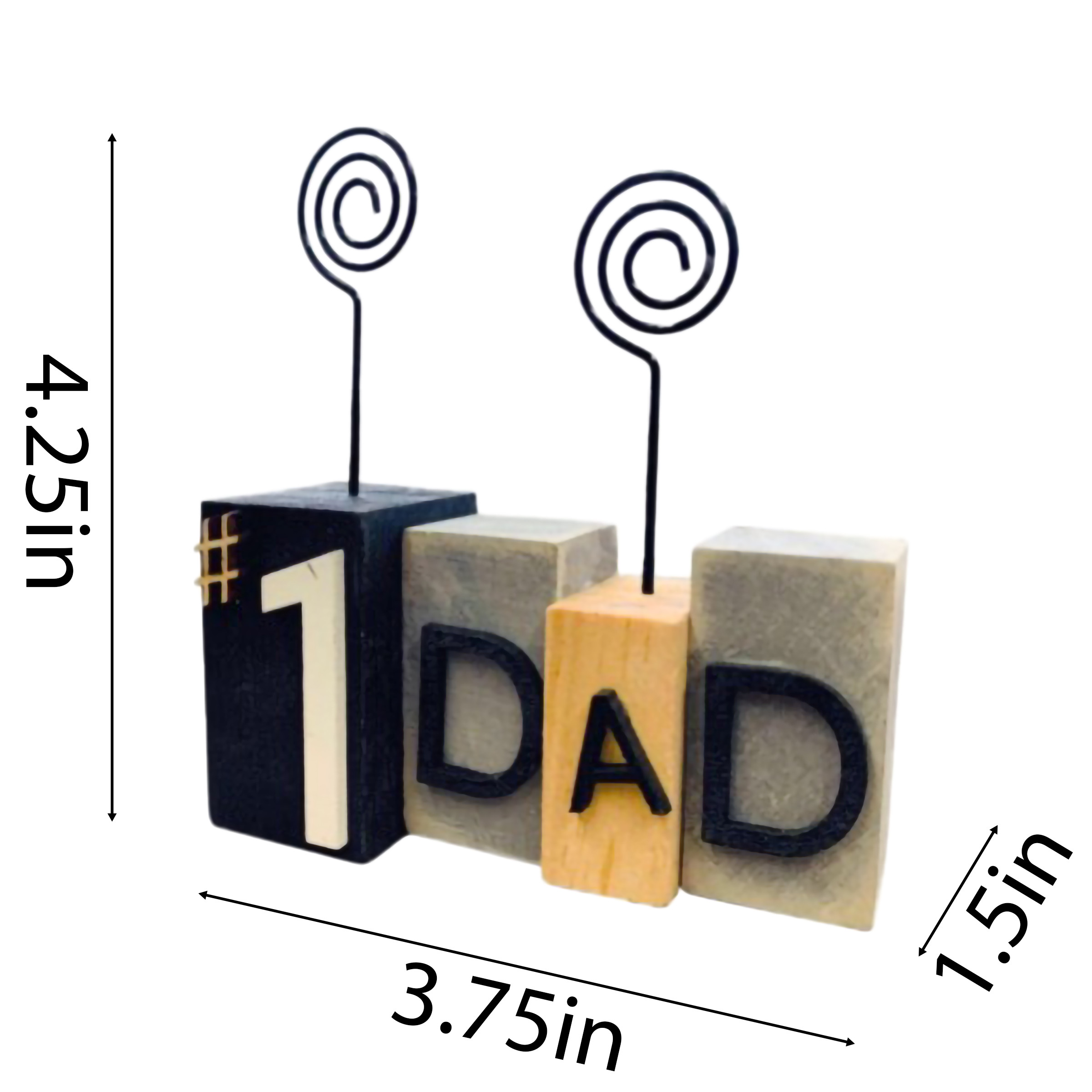 The black white and yellow distressed father's day hanging or tabletop picture frame beautifully showcases cherished moments. Designed for both hanging and tabletop display, it offers versatile styling options to fit any space. The clip picture frame allows for easy swapping of photos, making it perfect for capturing memories with family and friends. With the ability to orient photos horizontally or vertically, you can tailor it to your favorite images. Its distressed finish adds a touch of rustic charm, enhancing the visual appeal while celebrating special occasions. Whether as a gift or a personal keepsake, this frame is an ideal choice for honoring those unforgettable moments with loved ones. 3.75-inch h x 4.75-inch w x 1.50-inch d.