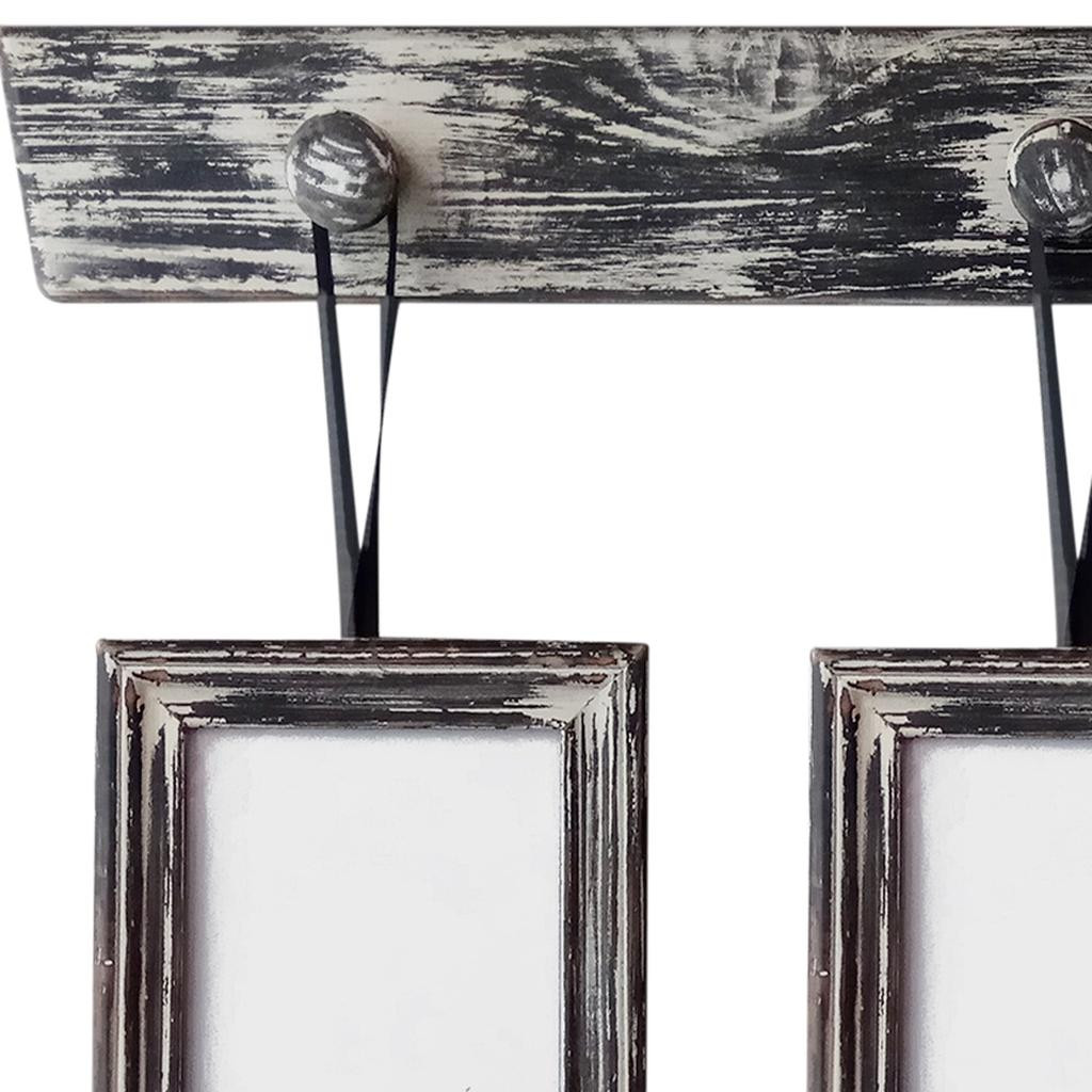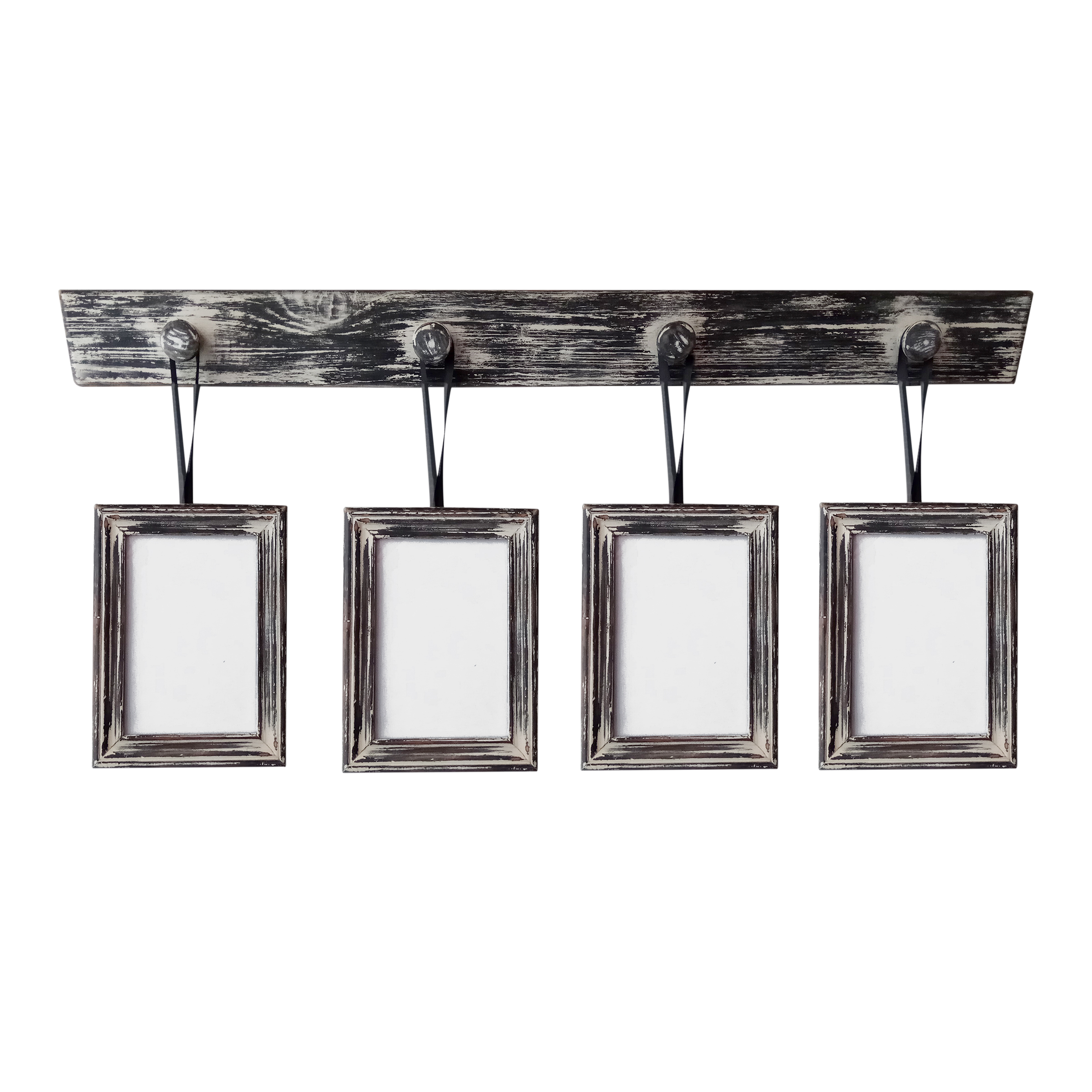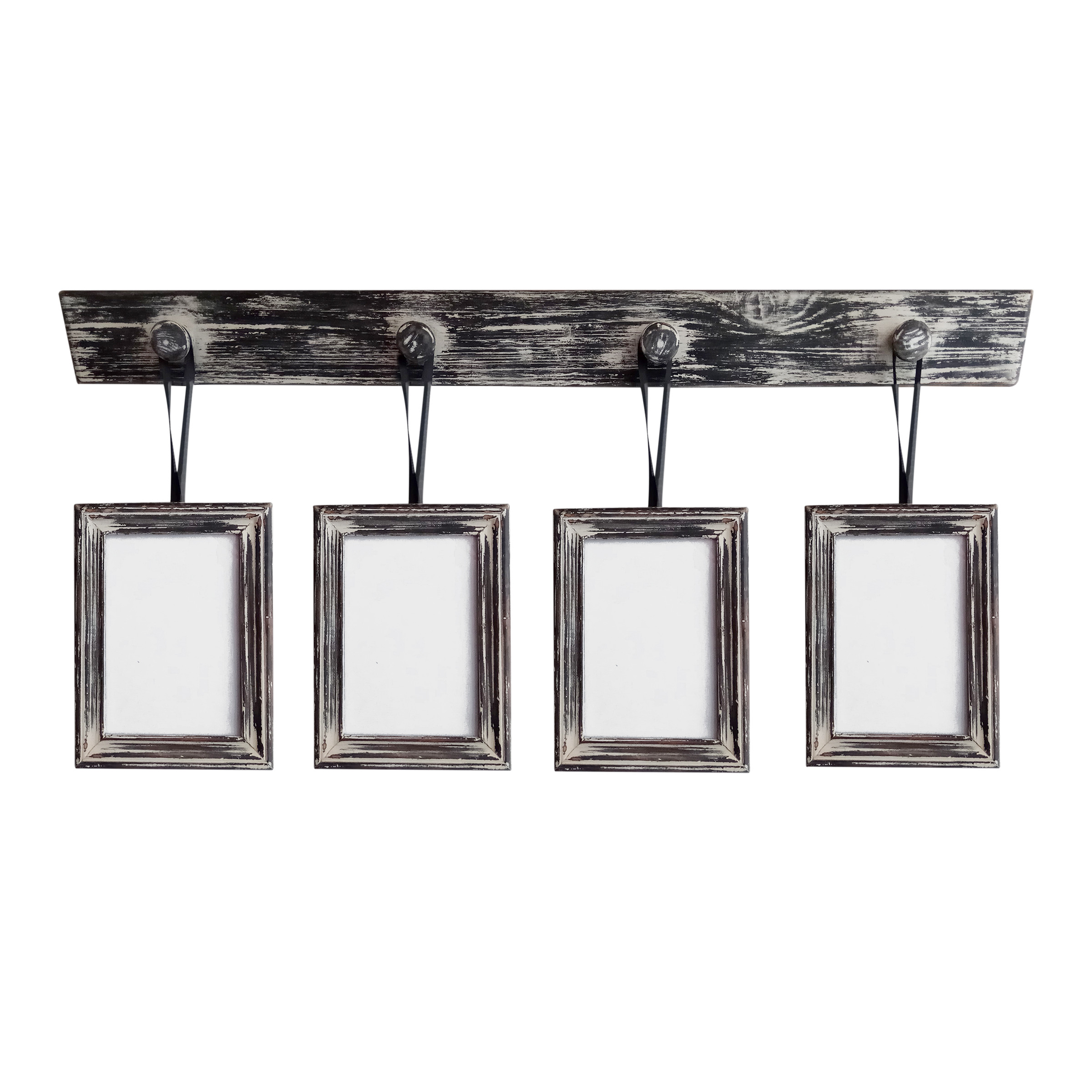 The 4-inch x 6-inch black and white distressed solid wood hanging picture frame adds a rustic touch to any decor. This gallery wall set is designed for vertical orientation, making it perfect for displaying cherished memories. Crafted from solid wood, it showcases a beautiful distressed finish that enhances its charm. The rectangular shape offers a classic look that complements various interior styles. Mounting is hassle-free with included hardware, allowing you to easily hang your pictures. With a capacity to hold four photos, this frame is ideal for creating a stunning visual display that tells your story. Elevate your home’s aesthetic with this versatile and stylish picture frame designed for lasting enjoyment. 28.00-inch h x 11.00-inch w x 2.00-inch d.