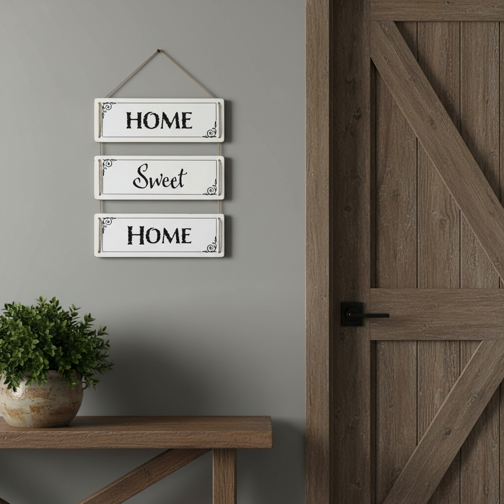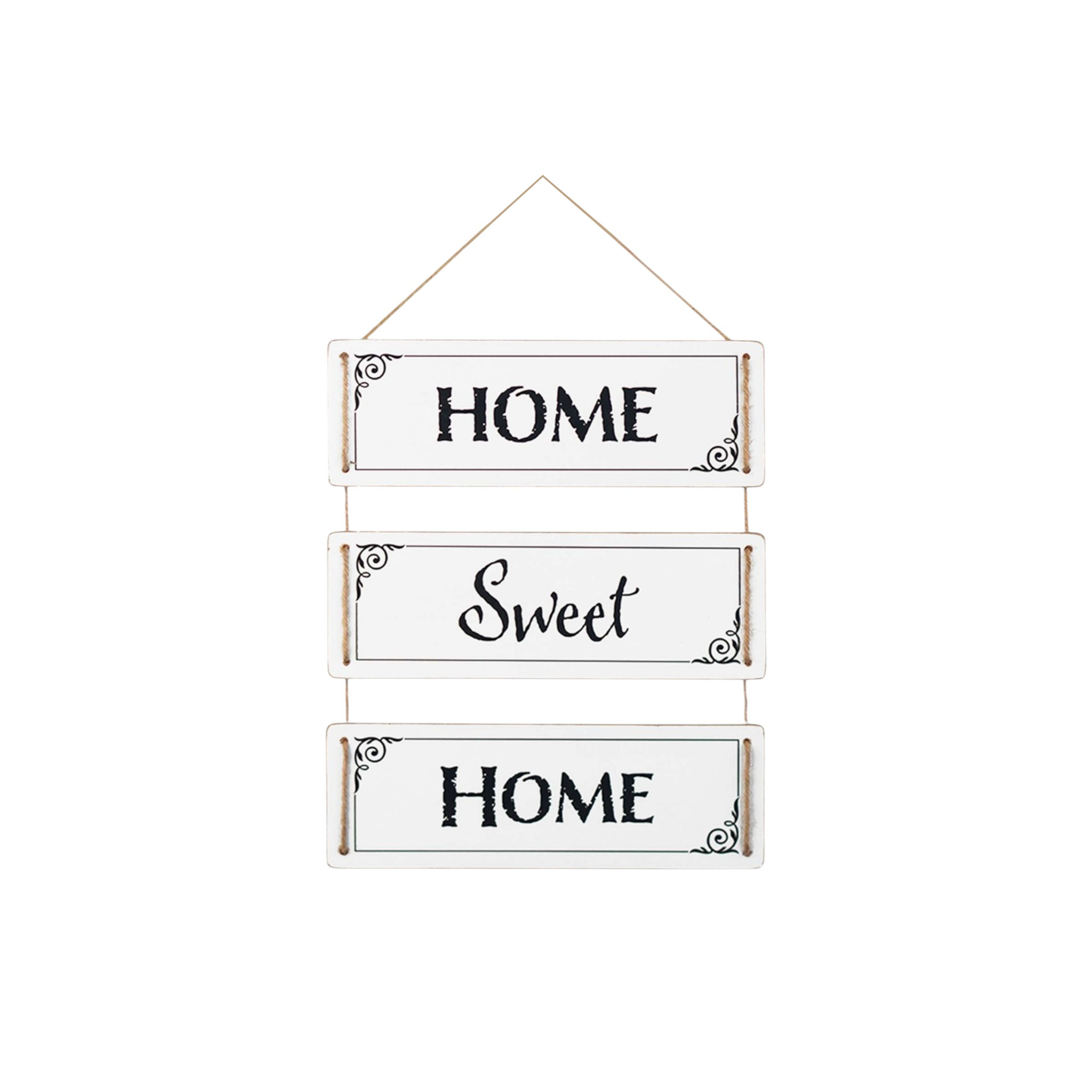 Welcome your family and guests with this fun hanging three panel wall decor that features inspirational and motivational themed text. Instantly liven up your space with this reversible text decor that brings sentiment, color, and dimension to your walls. This good looking decor will fill the empty space on your wall while adding a stylish and decorative touch. Utilize this opportunity to create a focal point in the room with this fun wall decor option that allows you to change up the look, as it features two different patterns, one on each side. 14.40-inch h x 11.75-inch w x 0.25-inch d.