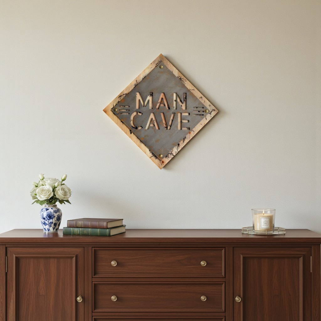cave metal wood wall decor, cave metal wood wall, man cave metal wood wall, metal wood wall decor, 19" X 18" gray natural man cave |