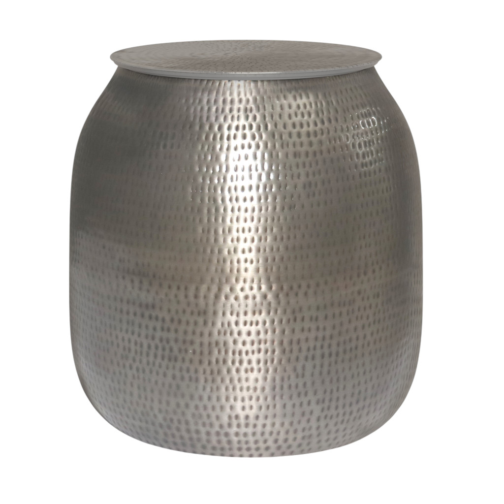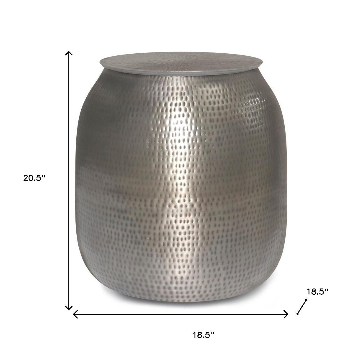 Show off your exquisite taste with this 21-inch silver metal round end table. This table is made from metal in a silver color throughout the base and top. An ideal location for placing your snacks and drinks, and a place to keep your lamp, frames, or other accessories. You can also use it as an entryway table to hold your keys. 20.50-inch h x 18.50-inch w x 18.50-inch d.