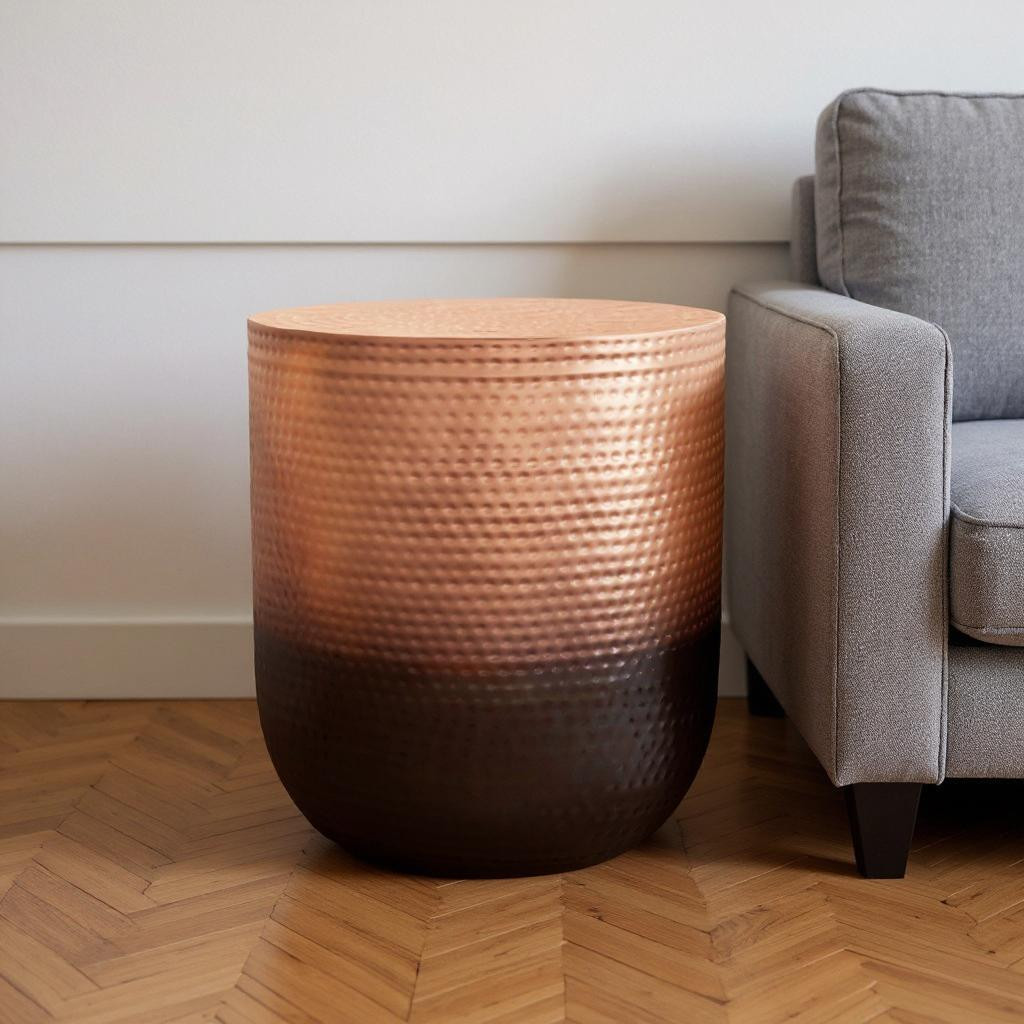 copper metal round end table, metal round end table, 22" copper metal round end, 22" copper metal round, round end table |