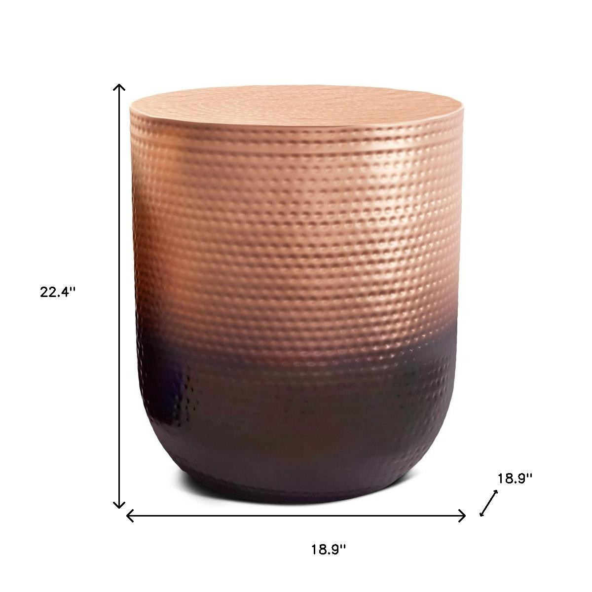 Show off your exquisite taste with this 22-inch copper metal round end table. Made of metal, the copper coloration throughout gives this piece an updated and refreshing look. Side tables are a great way to flank your sofa, use as an accent next to your favorite chair, or can even be used bedside. This versatile table is a great accent for most any room. 22.40-inch h x 18.90-inch w x 18.90-inch d.