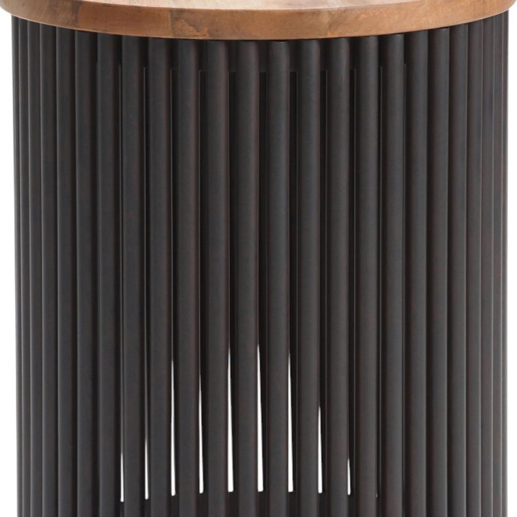 Optimize your space and add some charm to your room with the 21-inch black metal round end table. This table features quality construction from metal and an updated monotone color scheme with black as the main color on both the top and the base. Side tables are a great way to flank your sofa, use as an accent next to your favorite chair, or can even be used bedside. This versatile table is a great accent for most any room. 21.30-inch h x 17.50-inch w x 17.50-inch d.