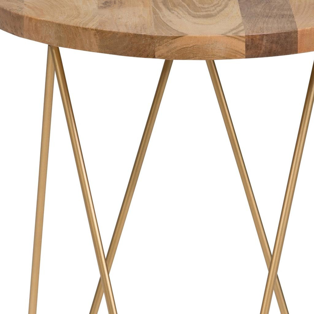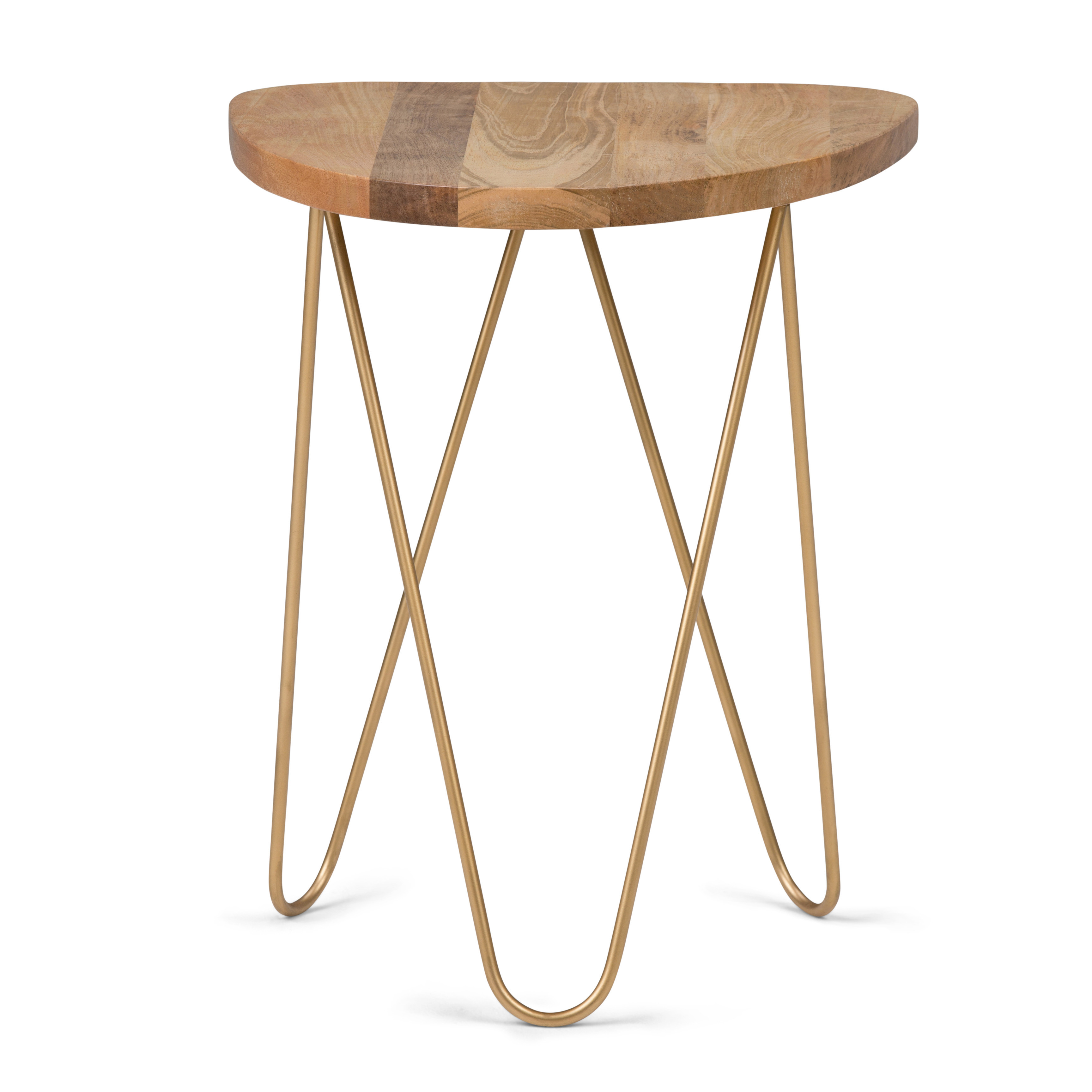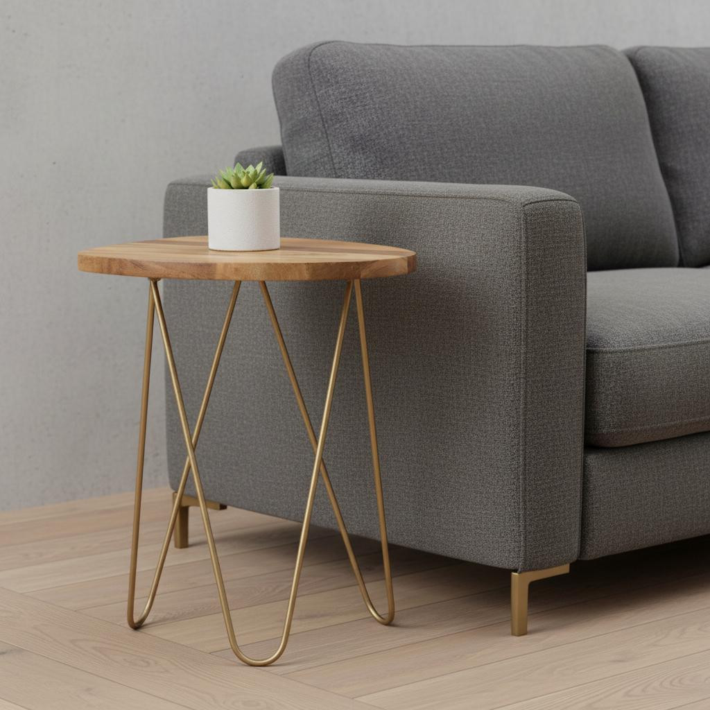 Distinctive in style the 21-inch gold metal round end table radiates a versatile charm. This table is made from metal in a gold color throughout the base and top. An ideal location for placing your snacks and drinks, and a place to keep your lamp, frames, or other accessories. You can match it with other pieces to get the ideal look for your place. 21.30-inch h x 18.00-inch w x 17.70-inch d.