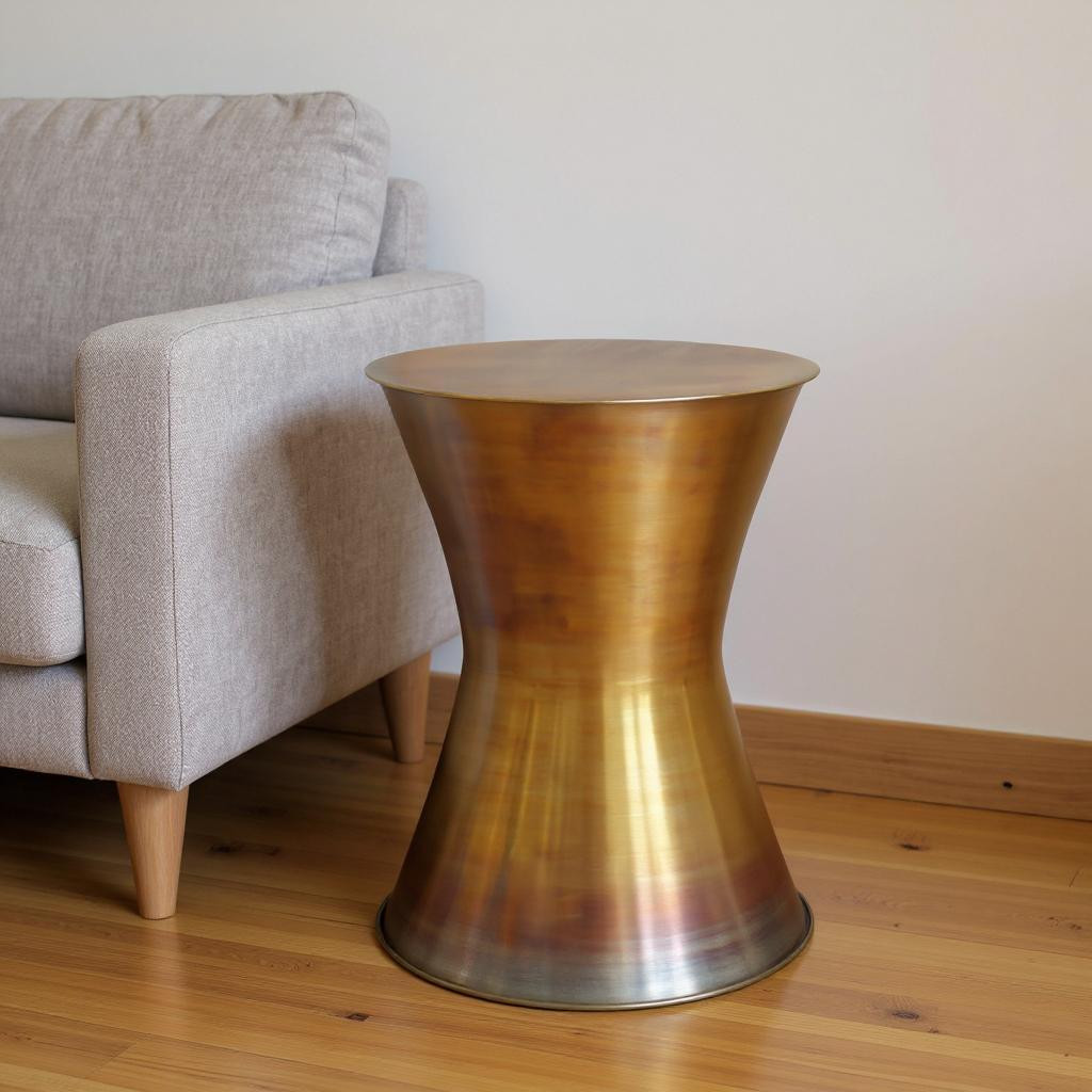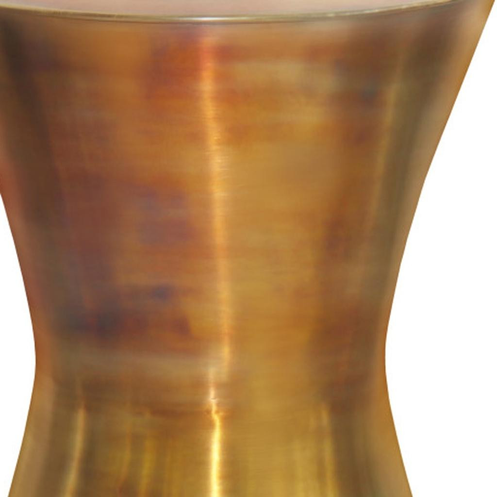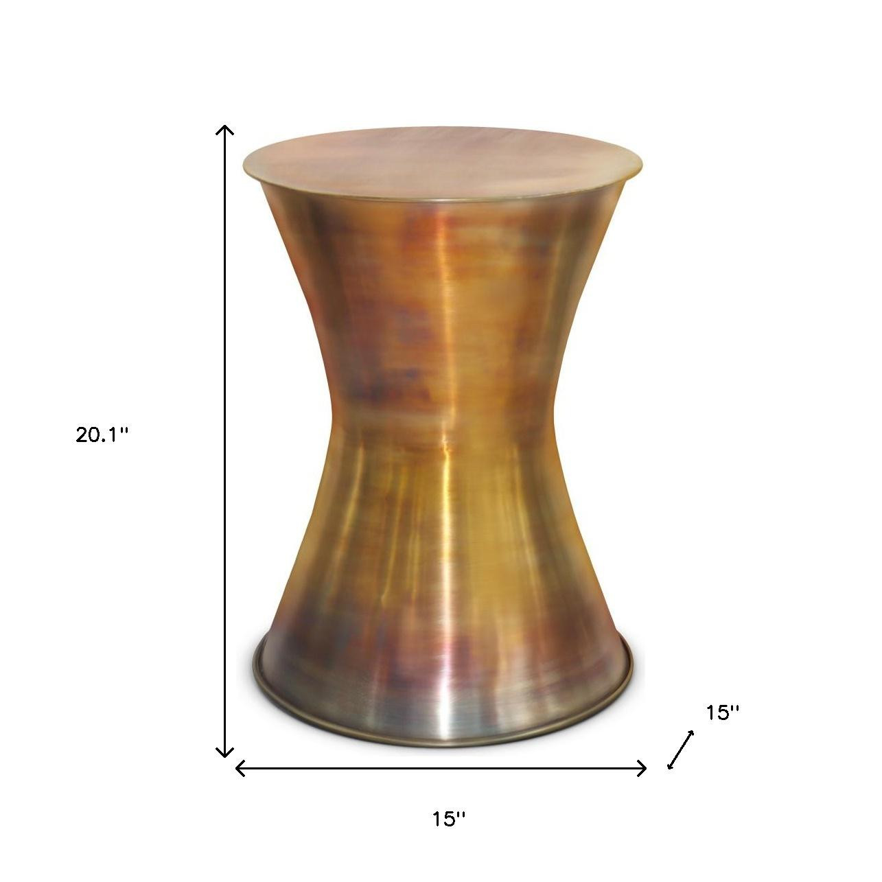 Distinctive in style the 20-inch antiqued brass metal round end table radiates a versatile charm. This table is made from metal in a antiqued brass color throughout the base and top. An ideal location for placing your snacks and drinks, and a place to keep your lamp, frames, or other accessories. You can match it with other pieces to get the ideal look for your place. 20.10-inch h x 15.00-inch w x 15.00-inch d.