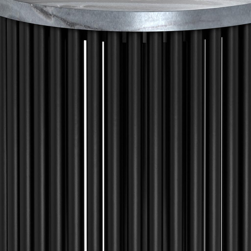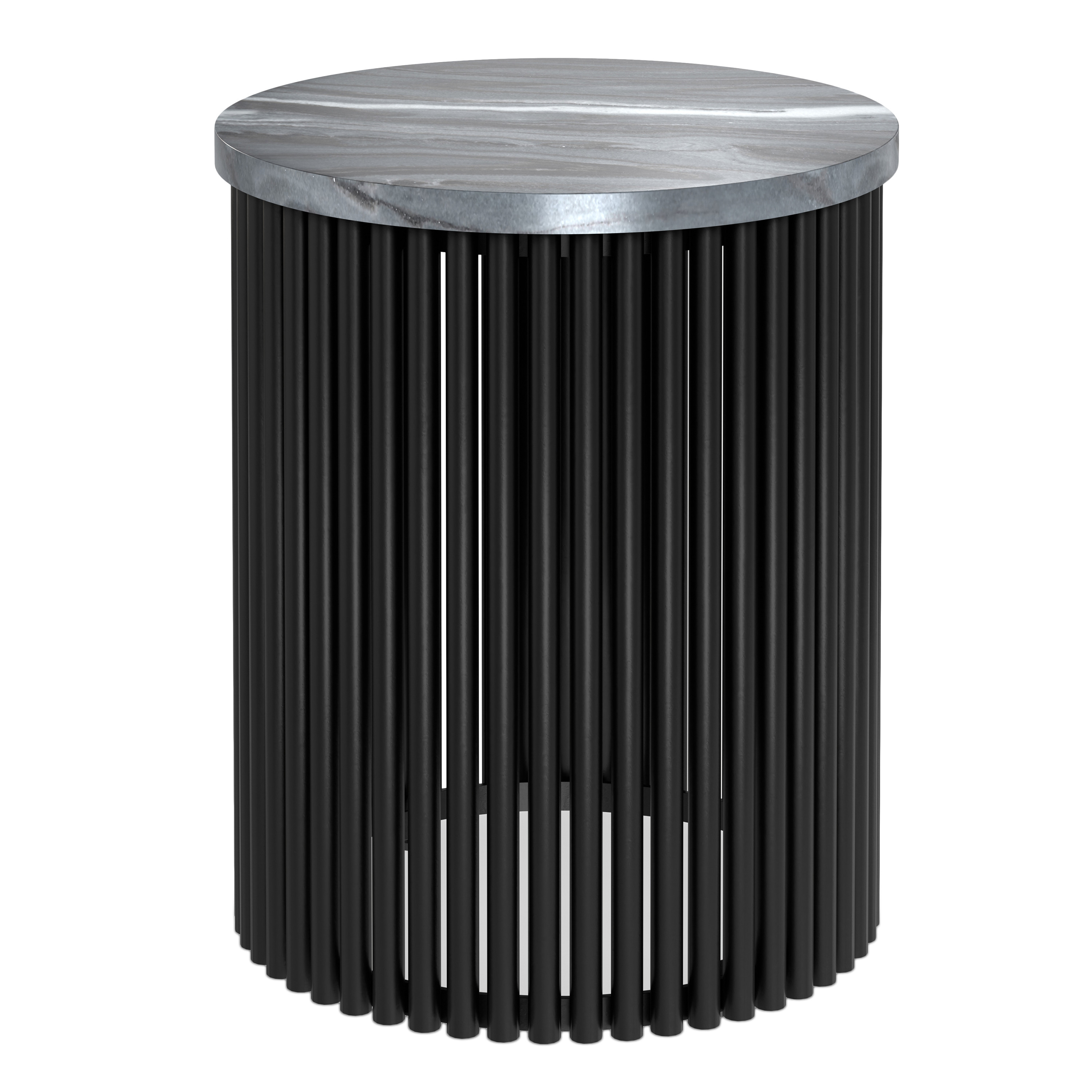 Show off your exquisite taste with this 21-inch black marble round end table. This table is made from marble in a black color throughout the base and top. An ideal location for placing your snacks and drinks, and a place to keep your lamp, frames, or other accessories. You can also use it as an entryway table to hold your keys. 21.30-inch h x 17.50-inch w x 17.50-inch d.