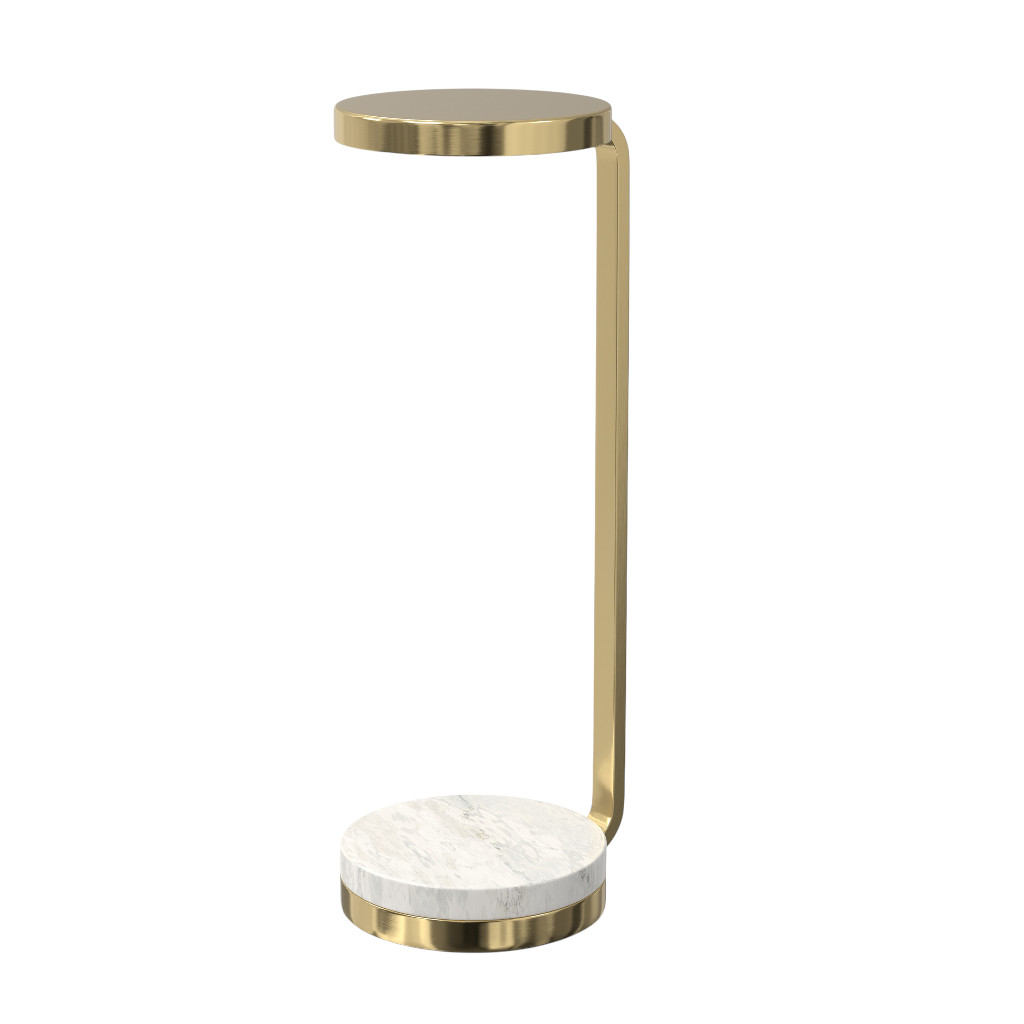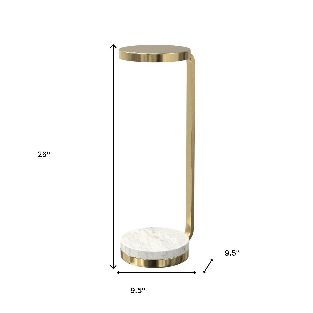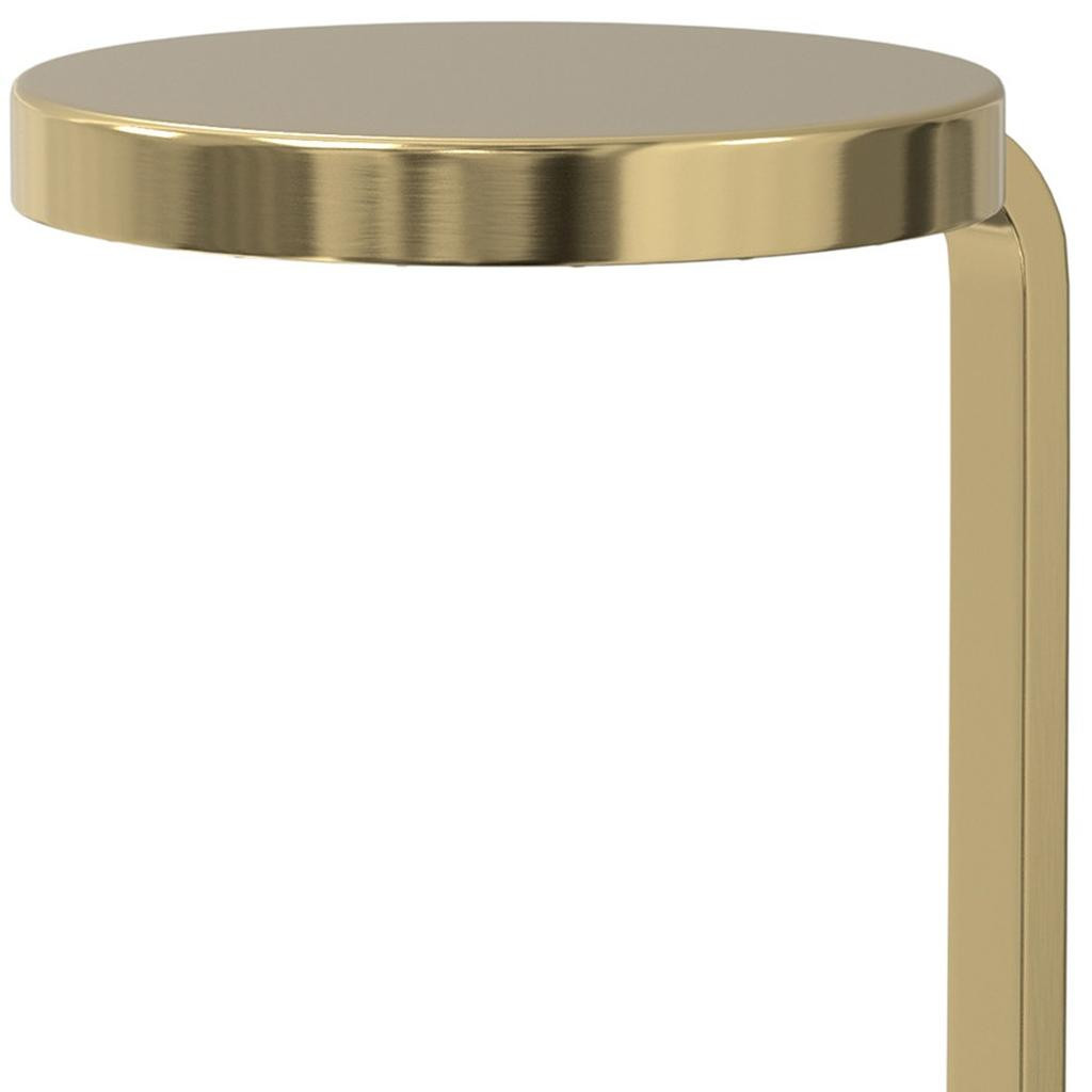 Distinctive in style the 26-inch gold iron round end table radiates a versatile charm. Made of iron, the gold coloration throughout gives this piece an updated and refreshing look. Side tables are a great way to flank your sofa, use as an accent next to your favorite chair, or can even be used bedside. You can match it with other pieces to get the ideal look for your place. 26.00-inch h x 9.50-inch w x 9.50-inch d.