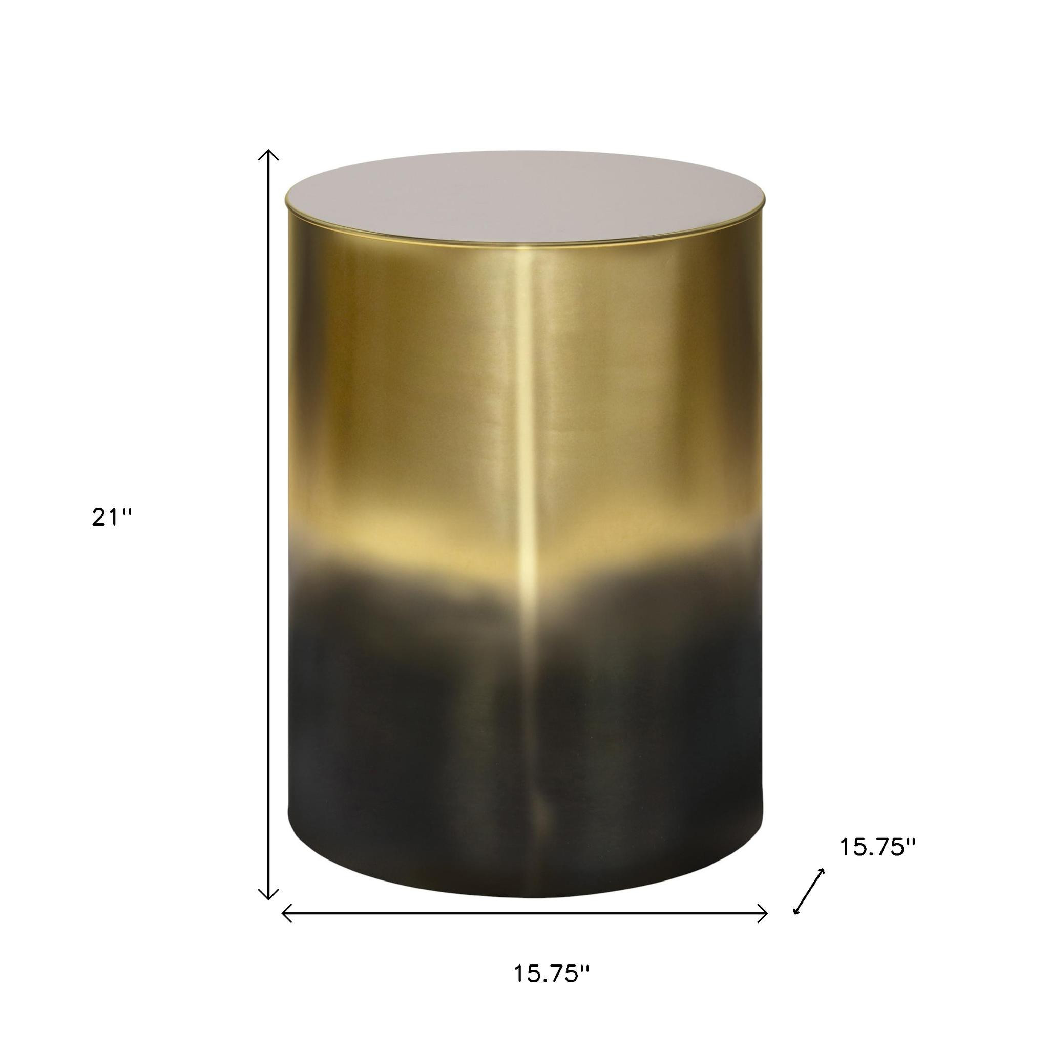 Distinctive in style the 21-inch gold metal round end table radiates a versatile charm. This table is made from metal in a gold color throughout the base and top. A great accent on either side of the sofa or bed, this adorable end or side table is just what you need. You can also use it as an entryway table to hold your keys. 21.00-inch h x 15.75-inch w x 15.75-inch d.