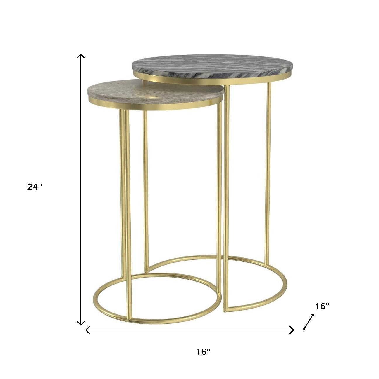 Distinctive in style the set of two 24-inch gold iron round end table radiates a versatile charm. This table features quality construction from iron and an updated monotone color scheme with gold as the main color on both the top and the base. Side tables are a great way to flank your sofa, use as an accent next to your favorite chair, or can even be used bedside. This versatile table is a great accent for most any room. 24.00-inch h x 16.00-inch w x 16.00-inch d.