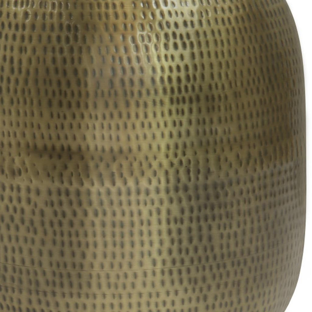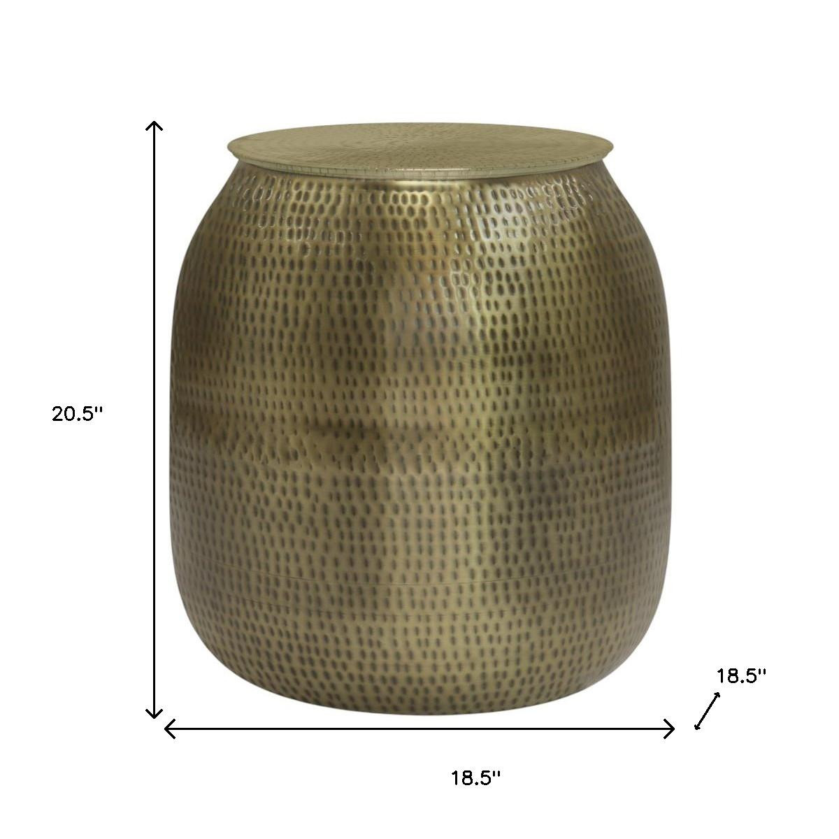 Show off your exquisite taste with this 21-inch gold metal round end table. This table is made from metal in a gold color throughout the base and top. A great accent on either side of the sofa or bed, this adorable end or side table is just what you need. This versatile table is a great accent for most any room. 20.50-inch h x 18.50-inch w x 18.50-inch d.