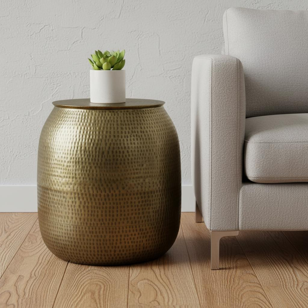 gold metal round end table, metal round end table, 21" gold metal round end, 21" gold metal round, round end table |