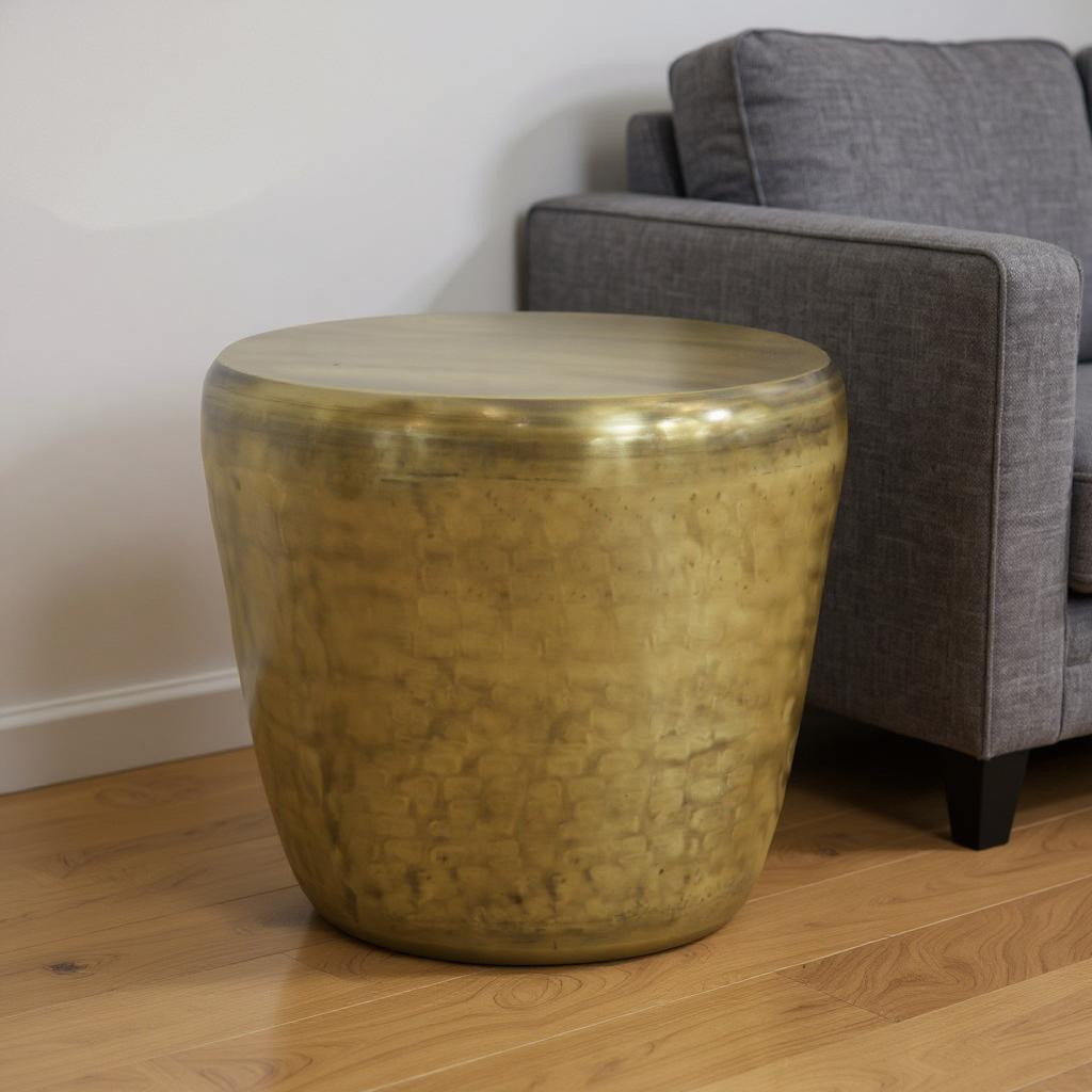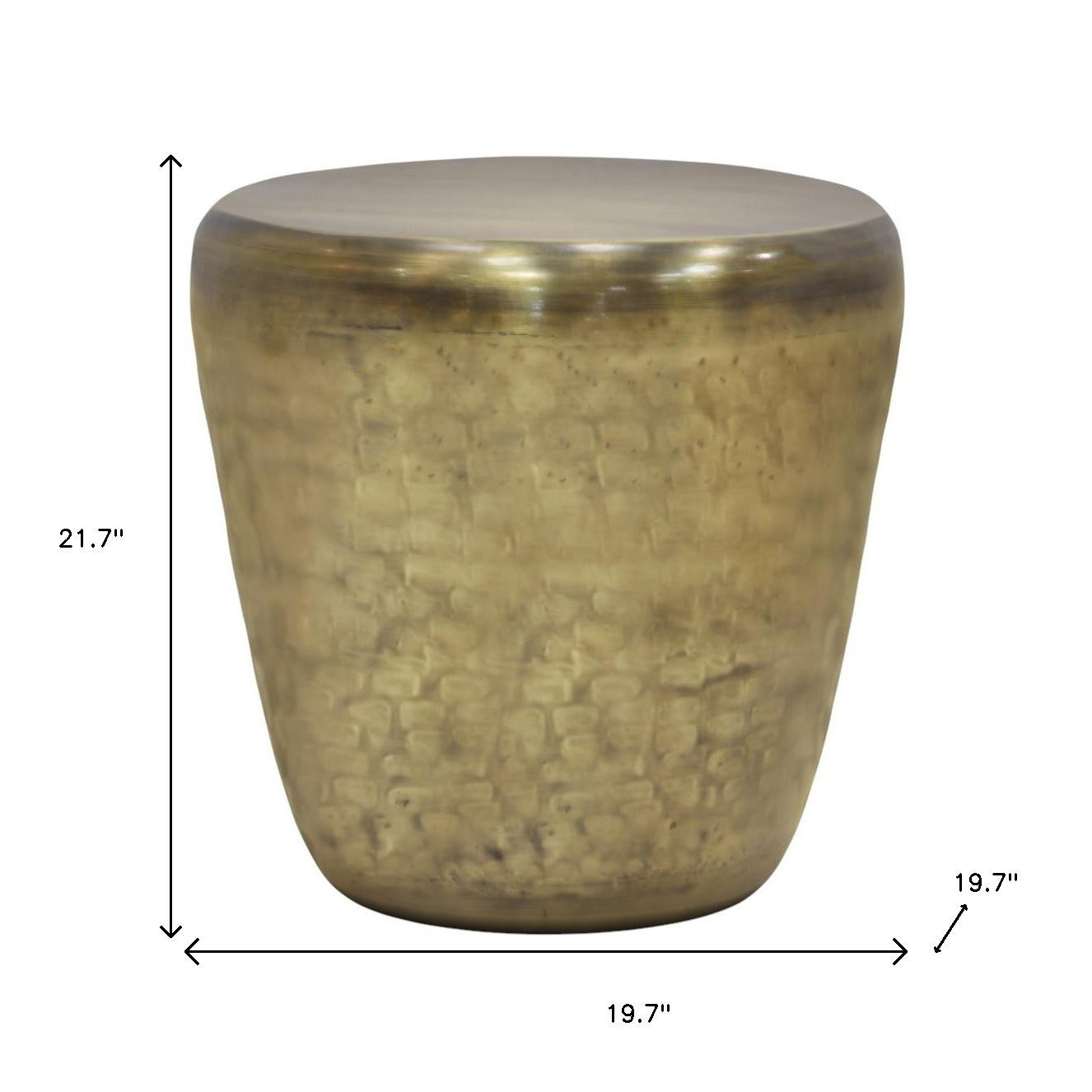 Optimize your space and add some charm to your room with the 22-inch gold metal round end table. This table features quality construction from metal and an updated monotone color scheme with gold as the main color on both the top and the base. A great accent on either side of the sofa or bed, this adorable end or side table is just what you need. This versatile table is a great accent for most any room. 21.70-inch h x 19.70-inch w x 19.70-inch d.