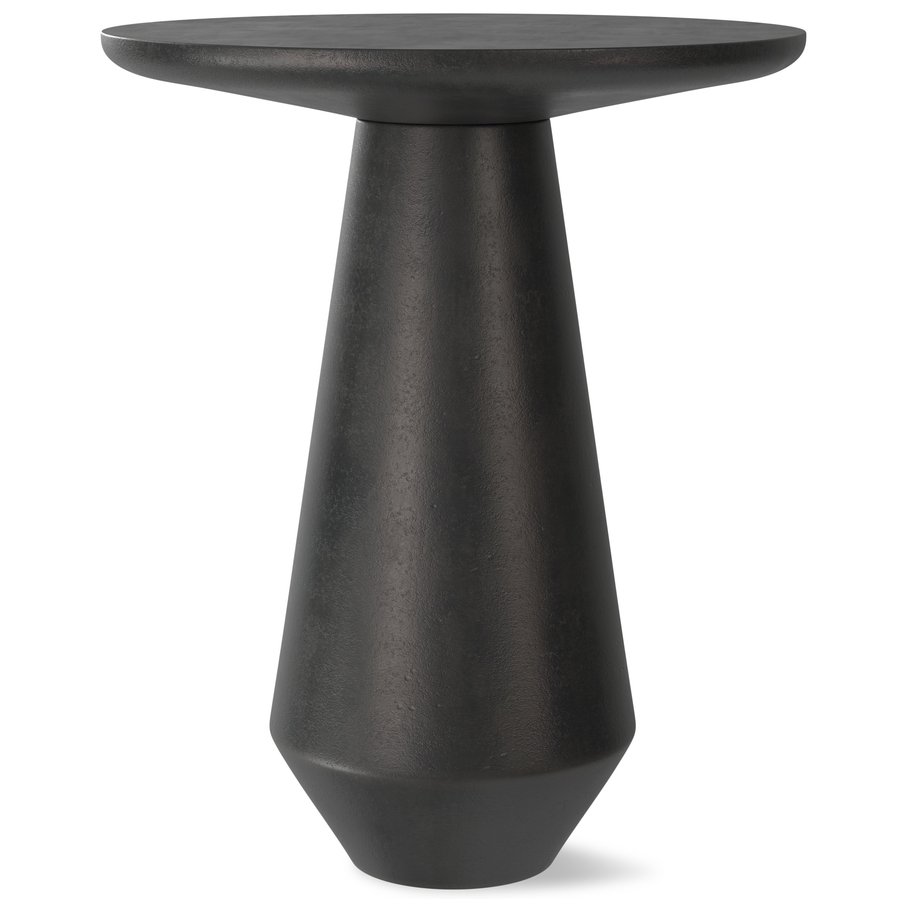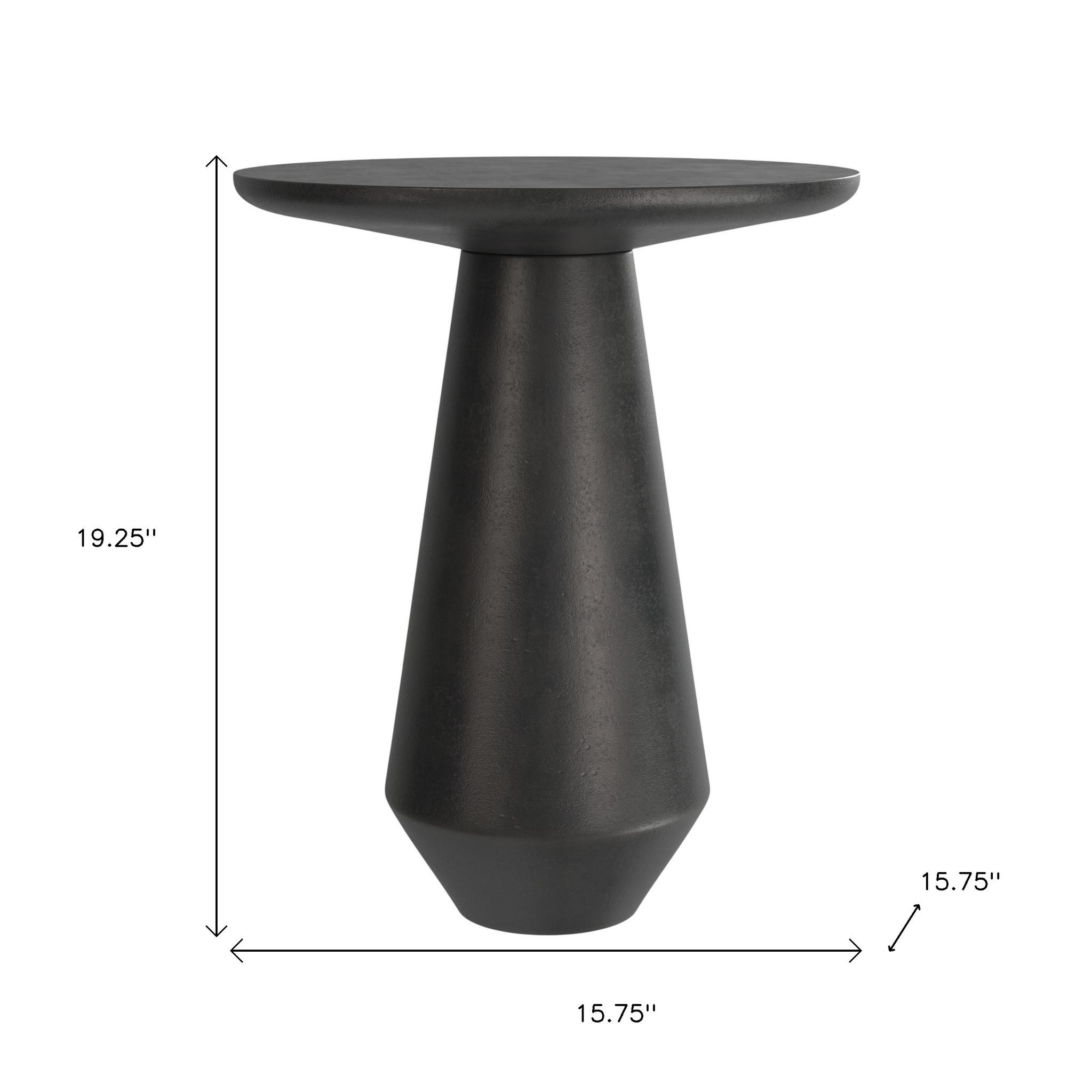 Distinctive in style the 19-inch graphite aluminum round end table radiates a versatile charm. This table features quality construction from aluminum and an updated monotone color scheme with graphite as the main color on both the top and the base. An ideal location for placing your snacks and drinks, and a place to keep your lamp, frames, or other accessories. You can match it with other pieces to get the ideal look for your place. 19.25-inch h x 15.75-inch w x 15.75-inch d.
