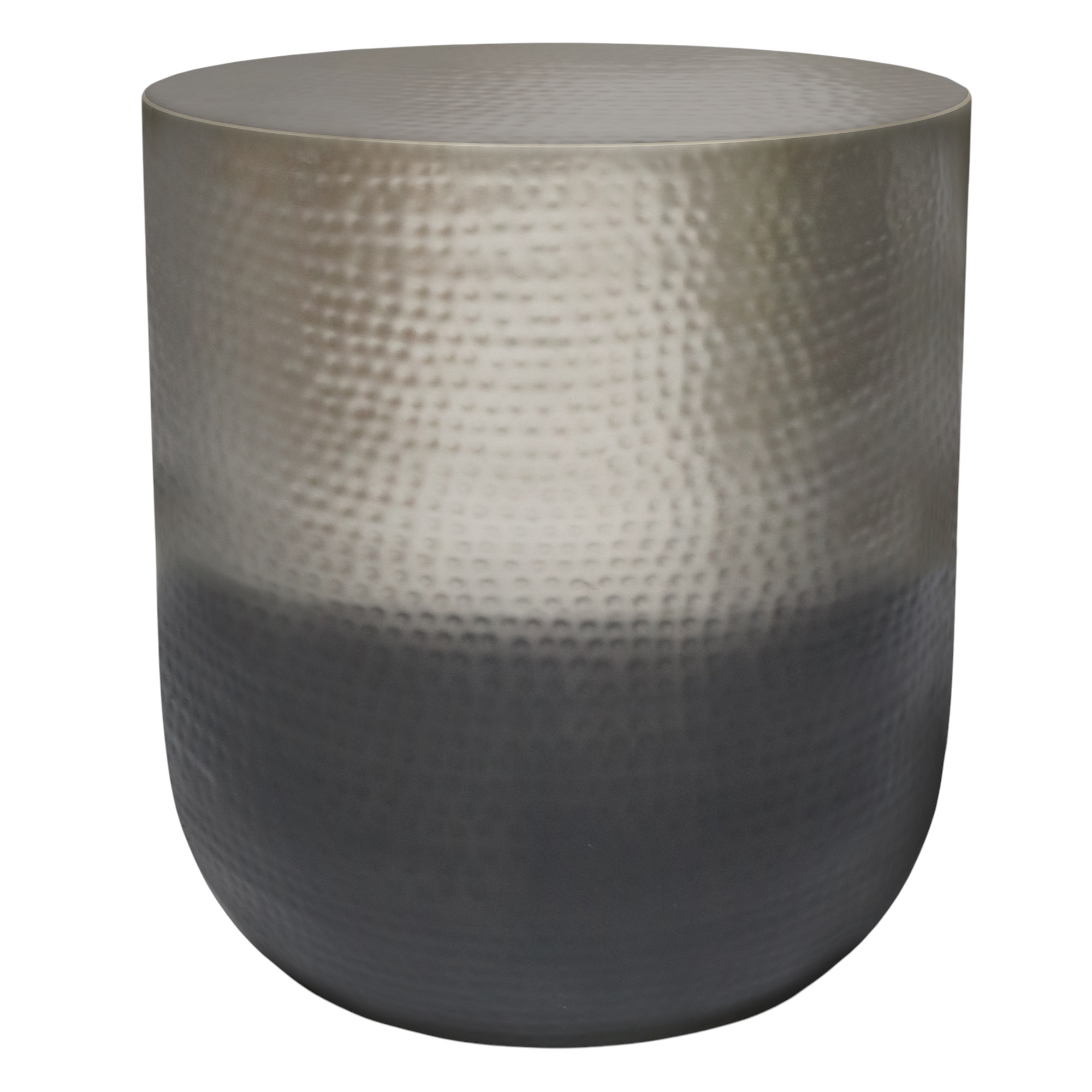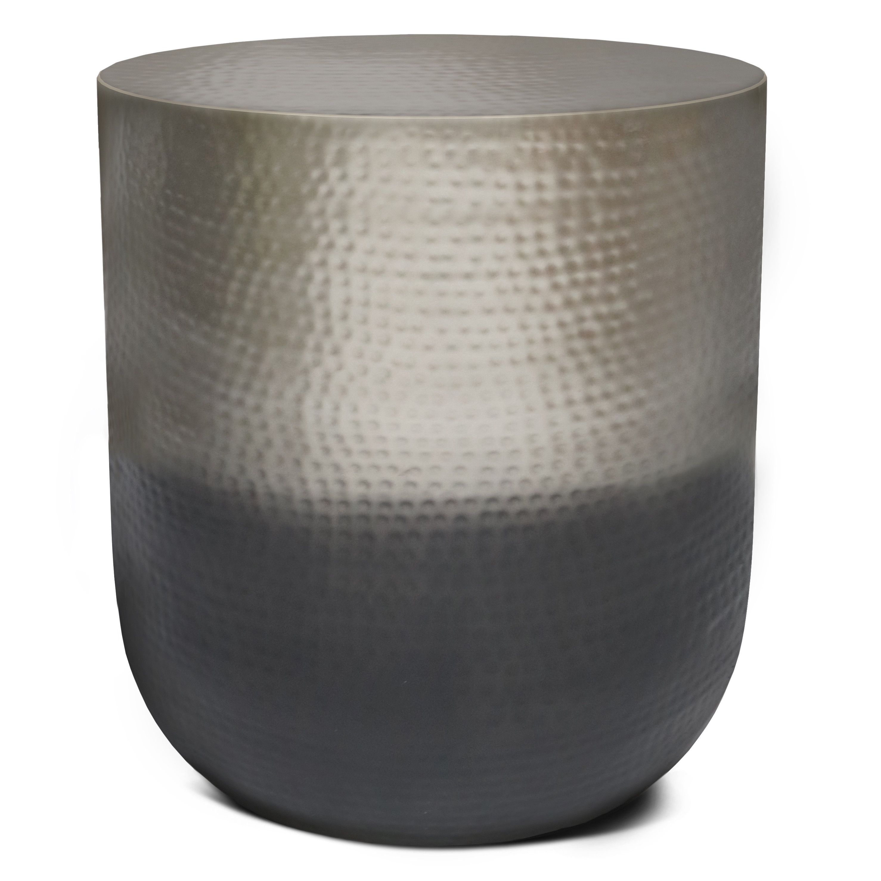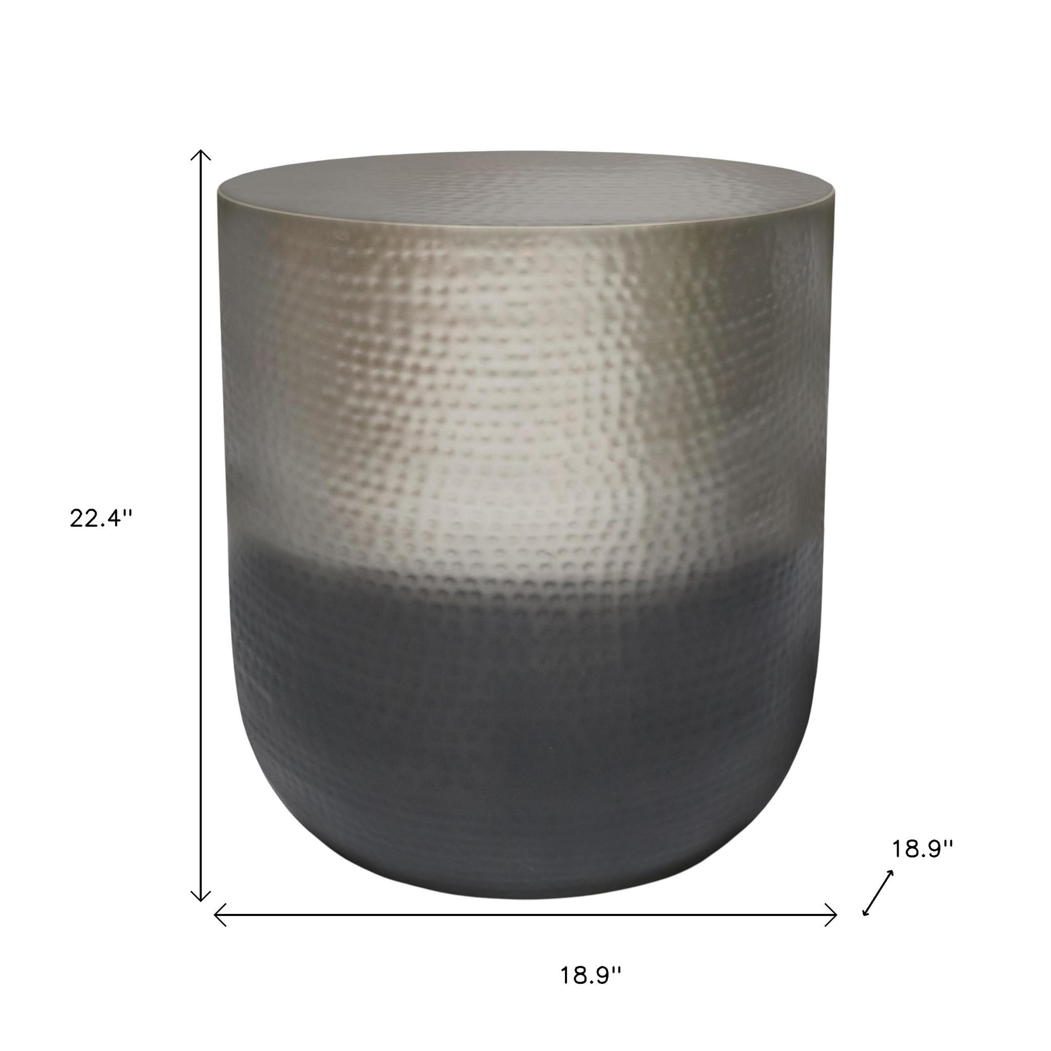 Distinctive in style the 22-inch silver metal round end table radiates a versatile charm. This table features quality construction from metal and an updated monotone color scheme with silver as the main color on both the top and the base. An ideal location for placing your snacks and drinks, and a place to keep your lamp, frames, or other accessories. This versatile table is a great accent for most any room. 22.40-inch h x 18.90-inch w x 18.90-inch d.