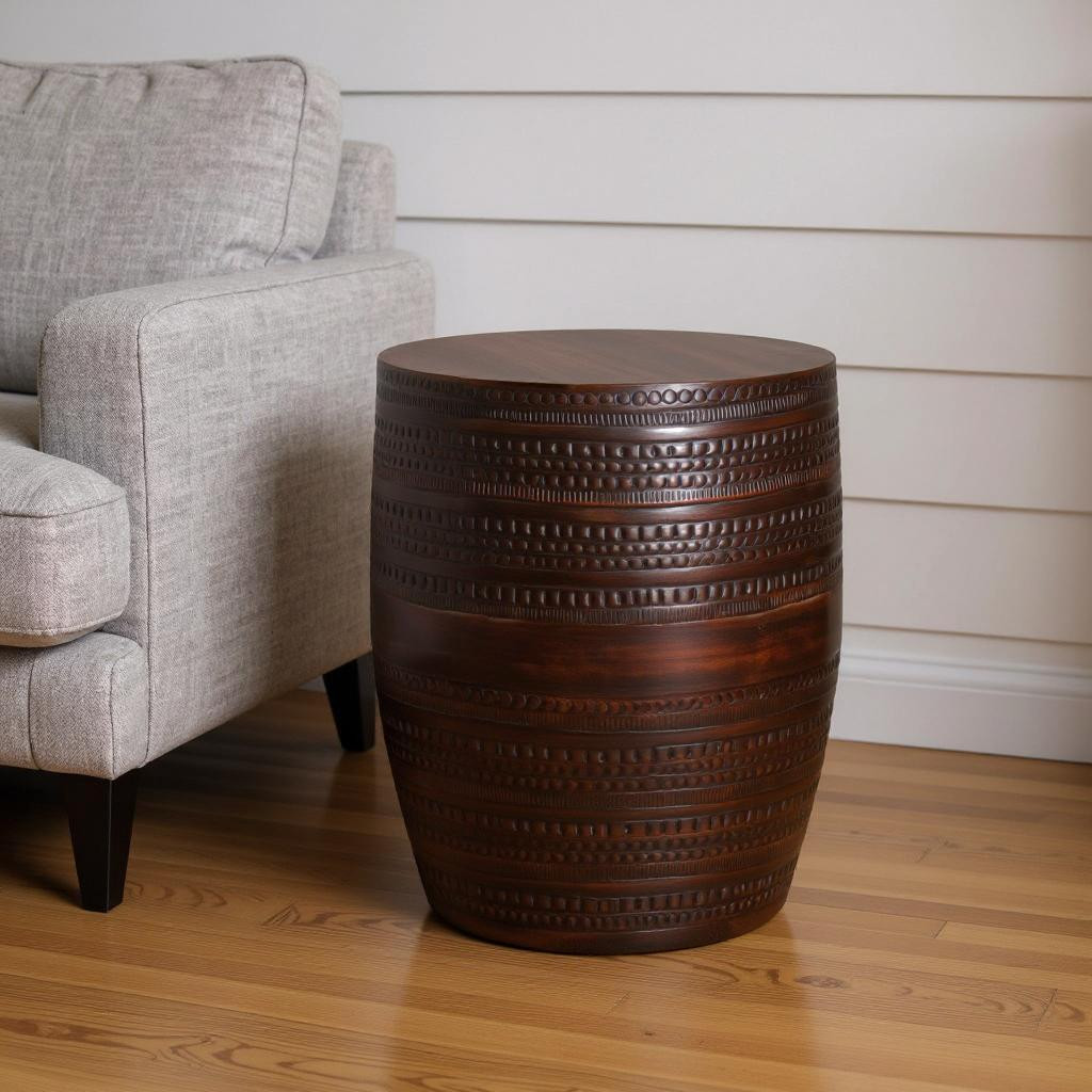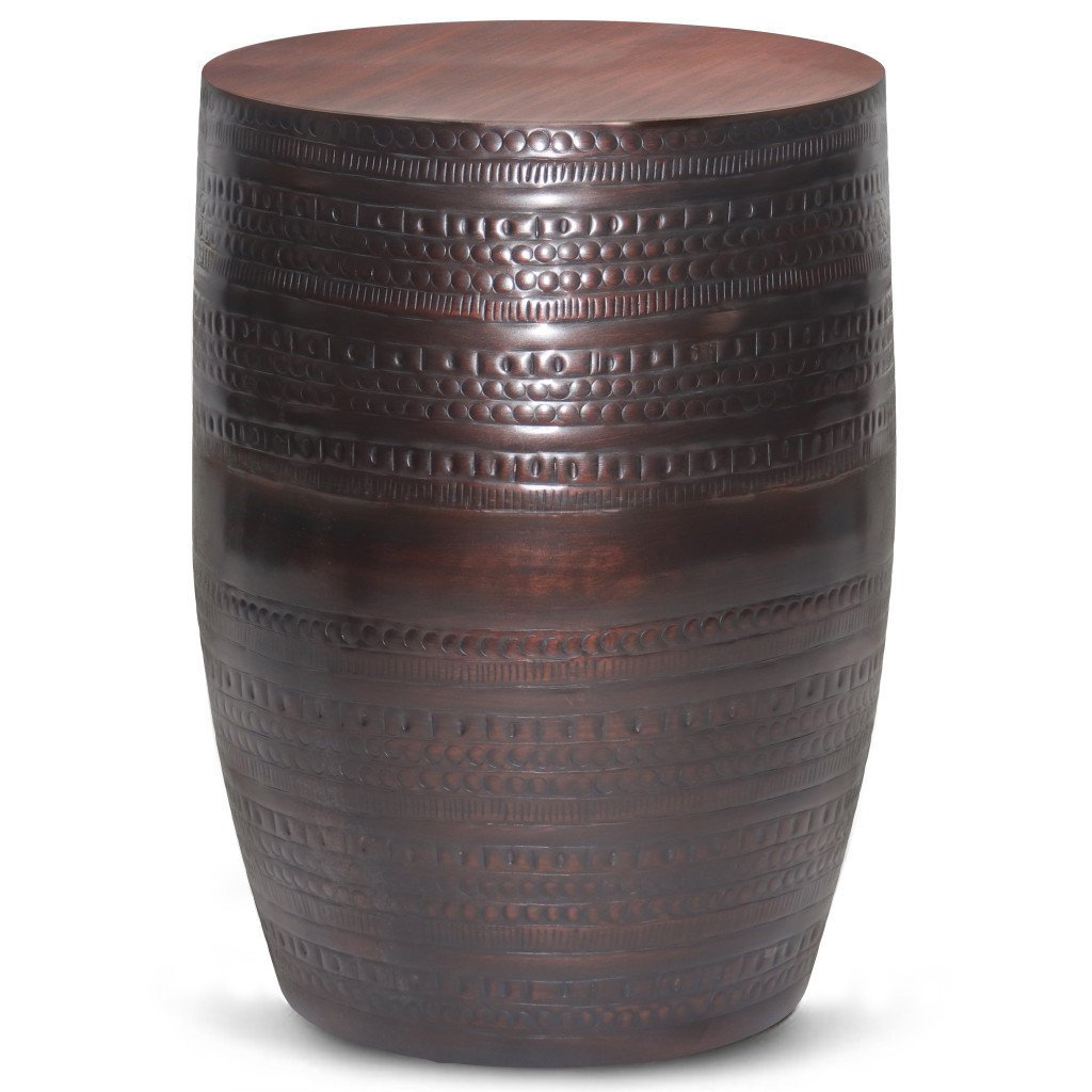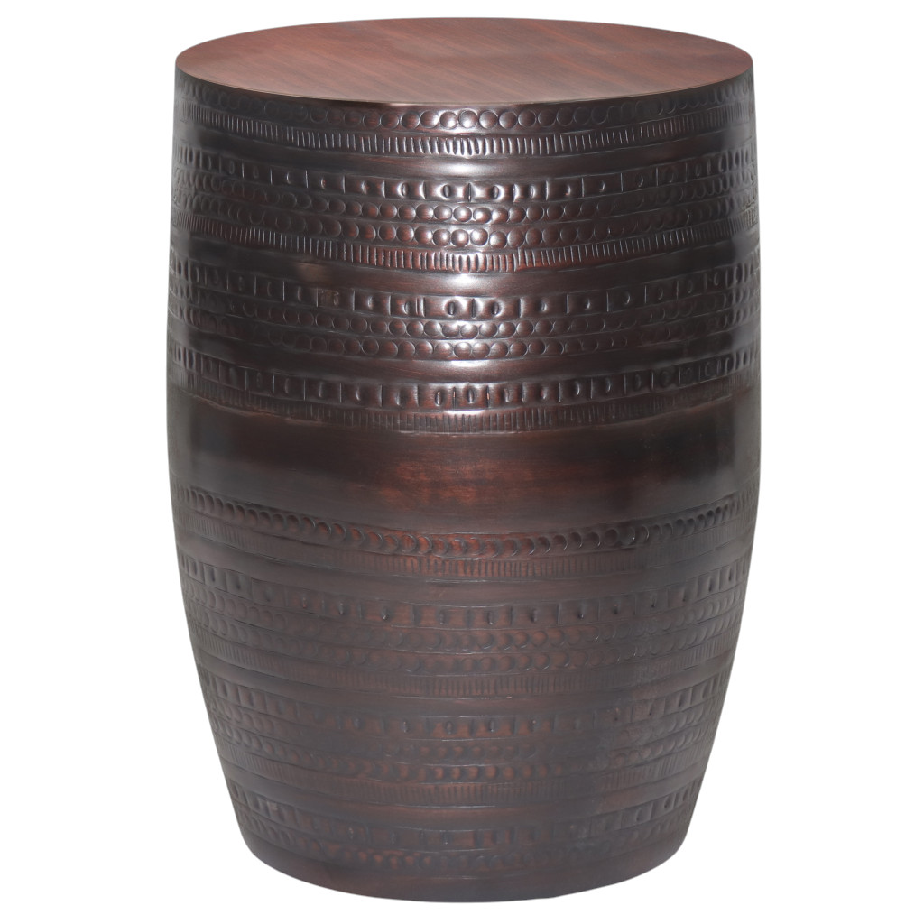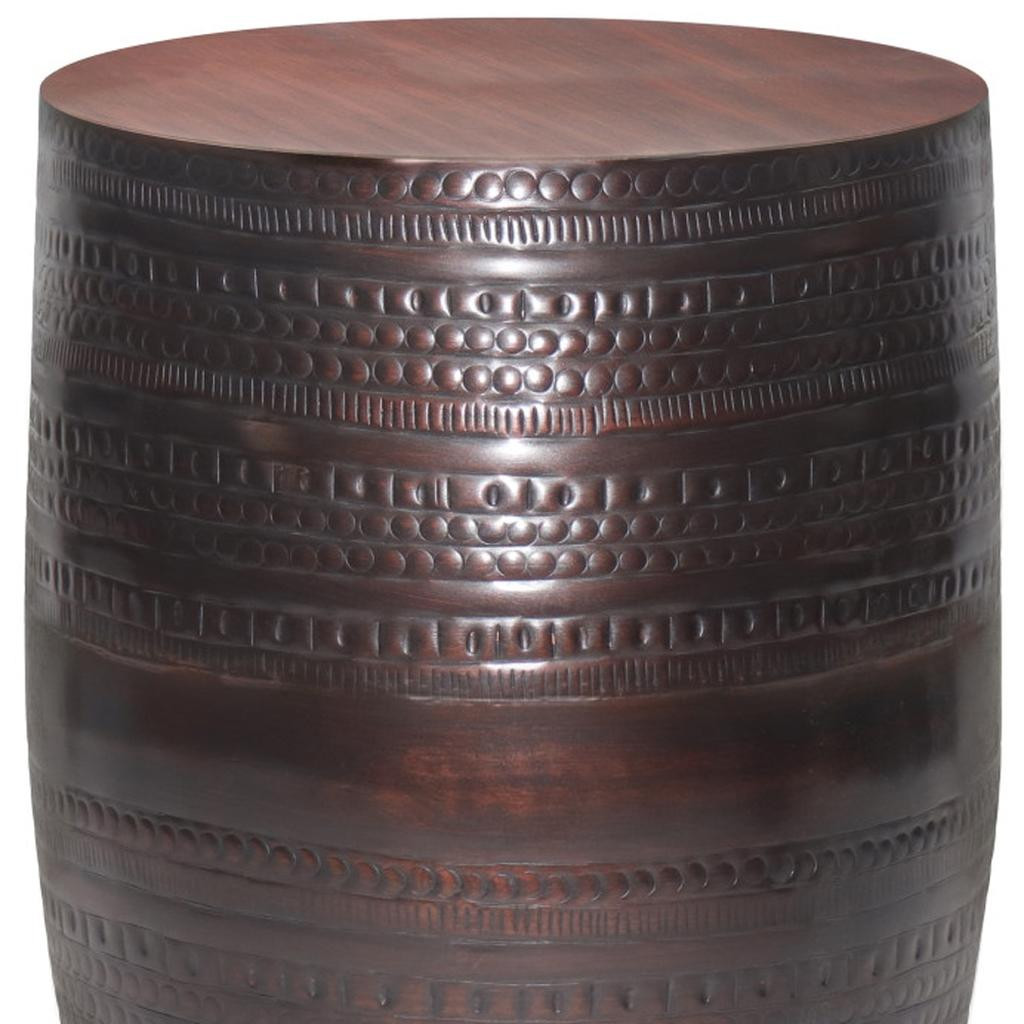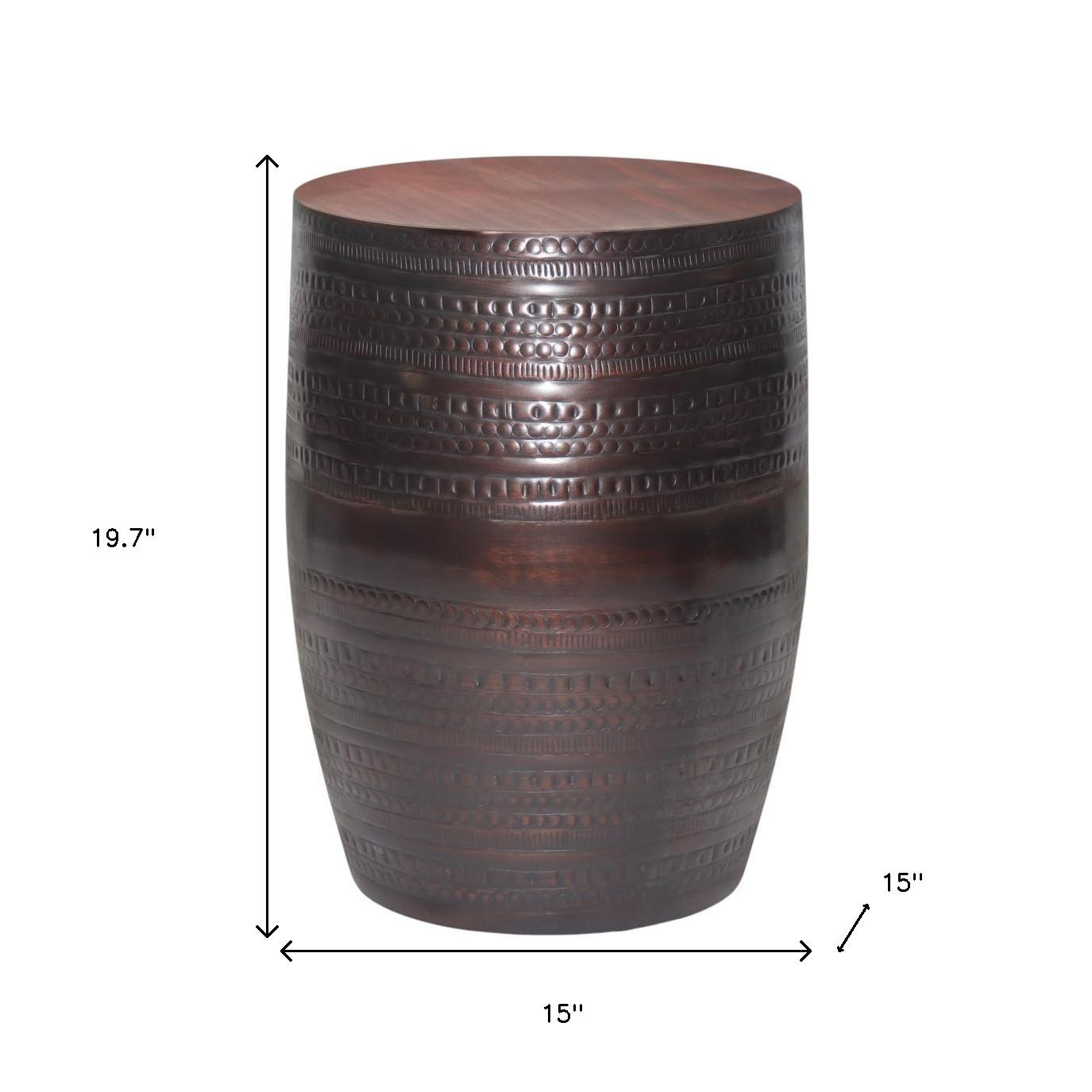 Distinctive in style the 20-inch bronze metal round end table radiates a versatile charm. This table features quality construction from metal and an updated monotone color scheme with bronze as the main color on both the top and the base. An ideal location for placing your snacks and drinks, and a place to keep your lamp, frames, or other accessories. This versatile table is a great accent for most any room. 19.70-inch h x 15.00-inch w x 15.00-inch d.