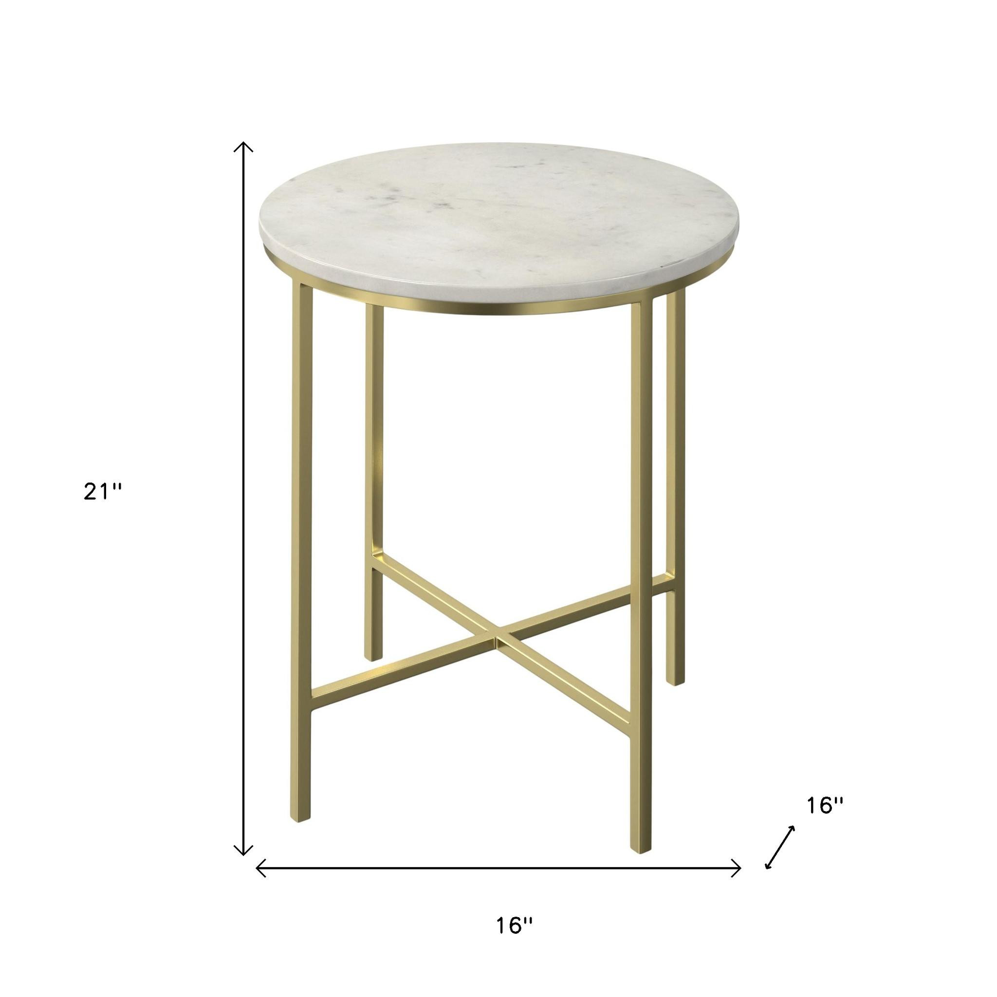 Show off your exquisite taste with this 21-inch gold iron round end table and trunk storage. This table features quality construction from iron and an updated monotone color scheme with gold as the main color on both the top and the base. Side tables are a great way to flank your sofa, use as an accent next to your favorite chair, or can even be used bedside. You can match it with other pieces to get the ideal look for your place. 21.00-inch h x 16.00-inch w x 16.00-inch d.