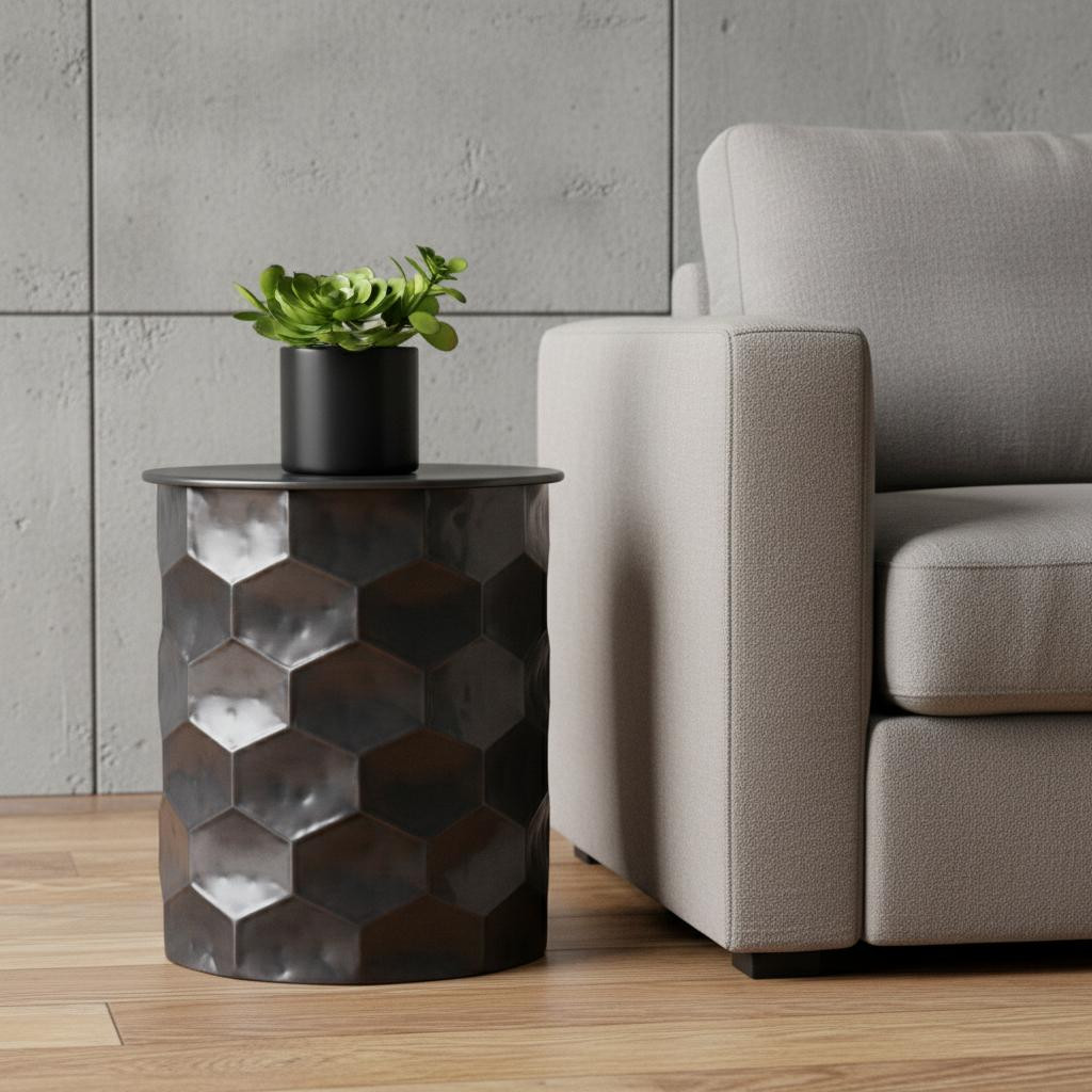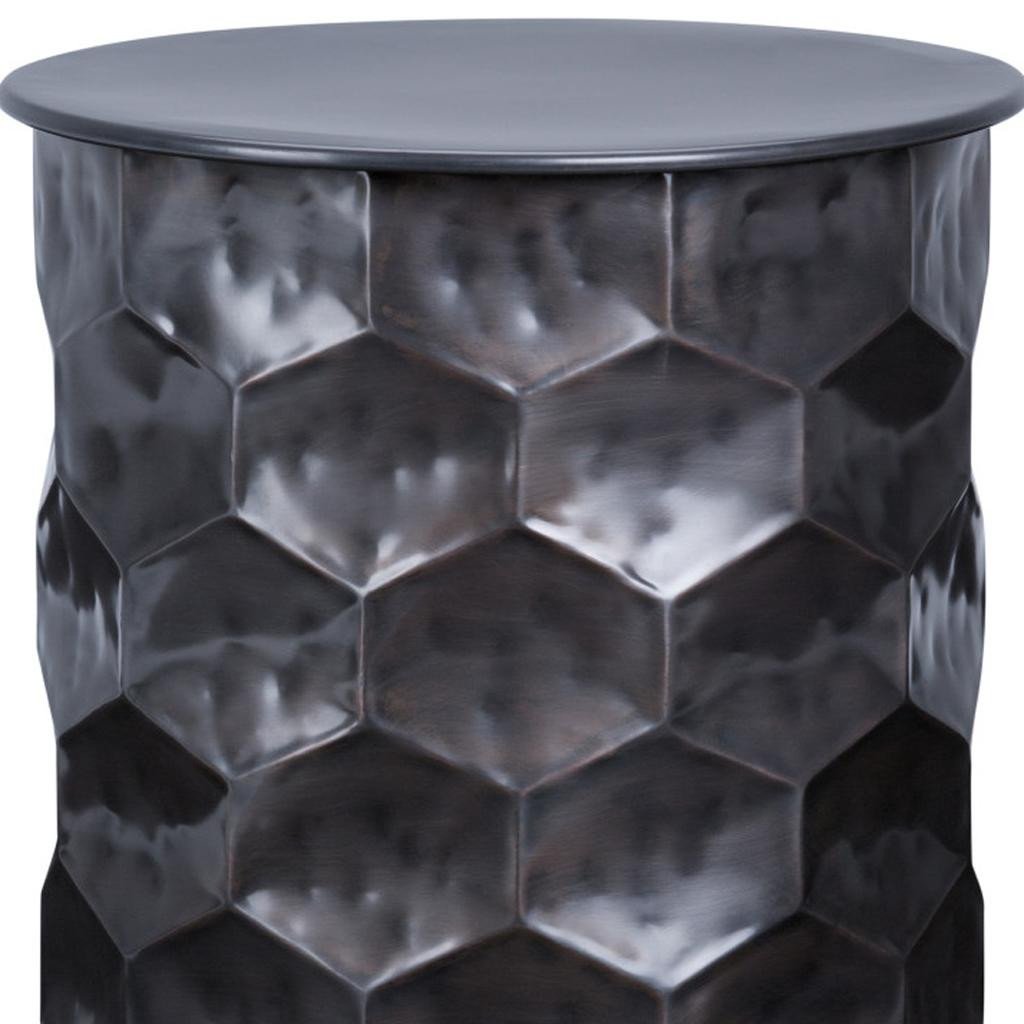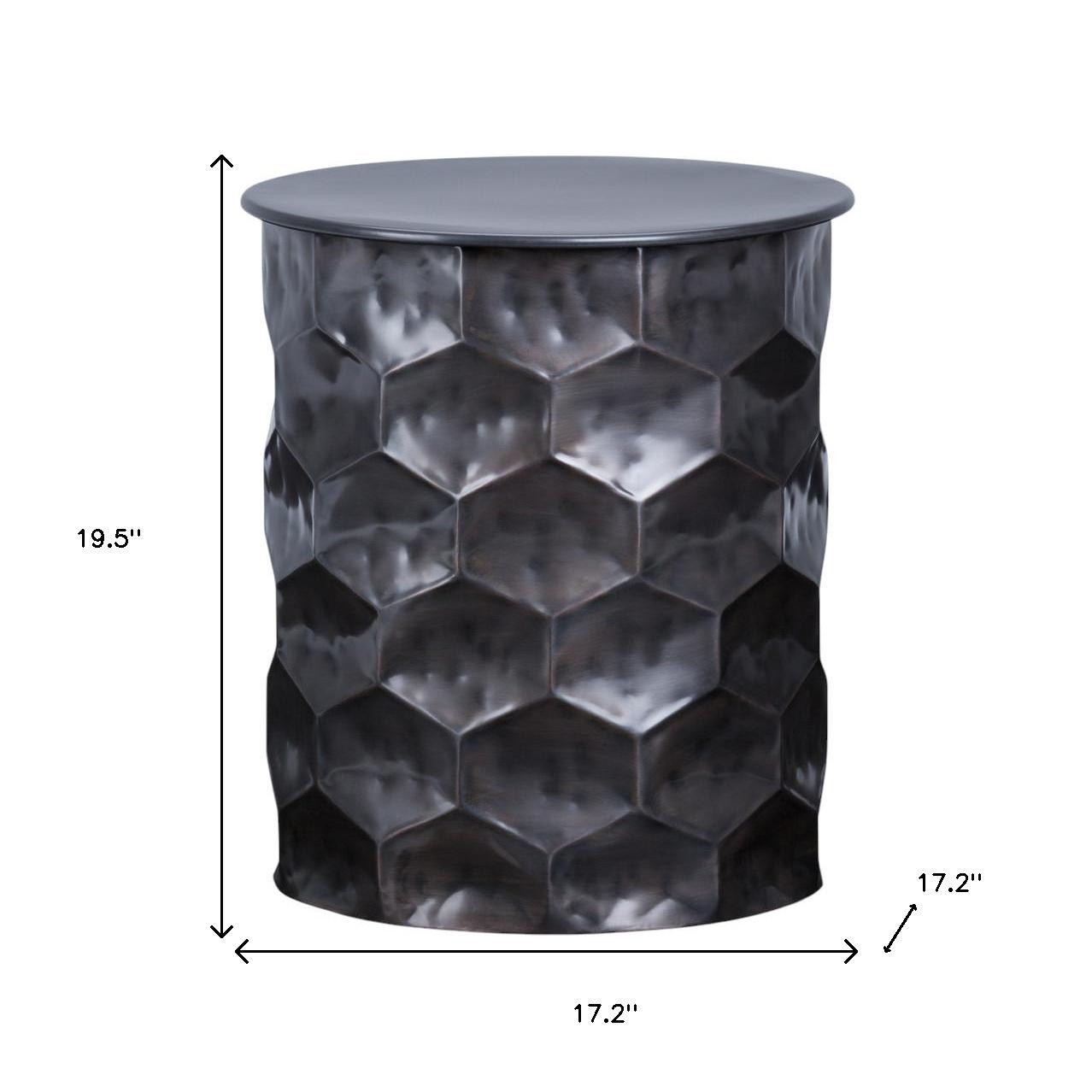Optimize your space and add some charm to your room with the 20-inch antiqued bronze metal round end table. This table is made from metal in a antiqued bronze color throughout the base and top. An ideal location for placing your snacks and drinks, and a place to keep your lamp, frames, or other accessories. This versatile table is a great accent for most any room. 19.50-inch h x 17.20-inch w x 17.20-inch d.