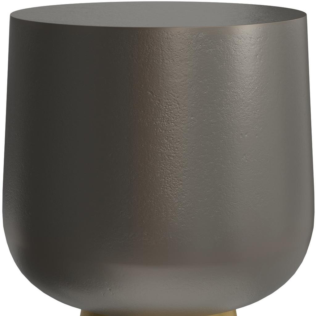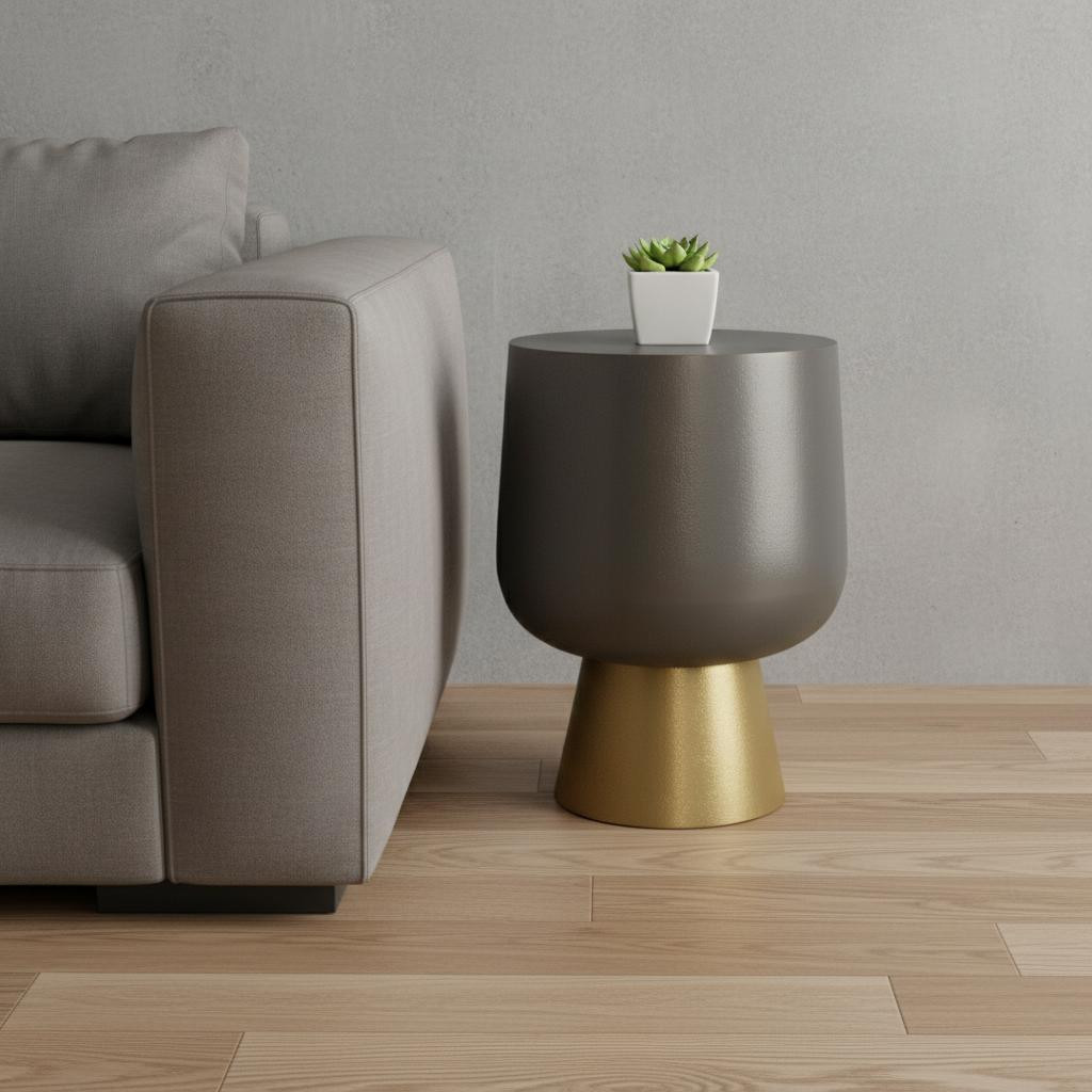 Optimize your space and add some charm to your room with the 20-inch antiqued brass aluminum round end table. This table is made from aluminum in a antiqued brass color throughout the base and top. An ideal location for placing your snacks and drinks, and a place to keep your lamp, frames, or other accessories. This versatile table is a great accent for most any room. 20.00-inch h x 13.75-inch w x 13.75-inch d.