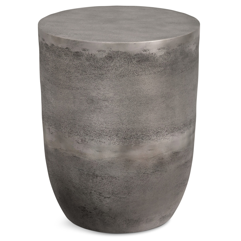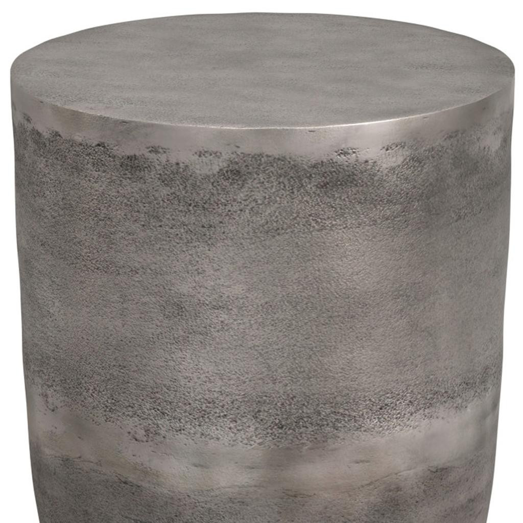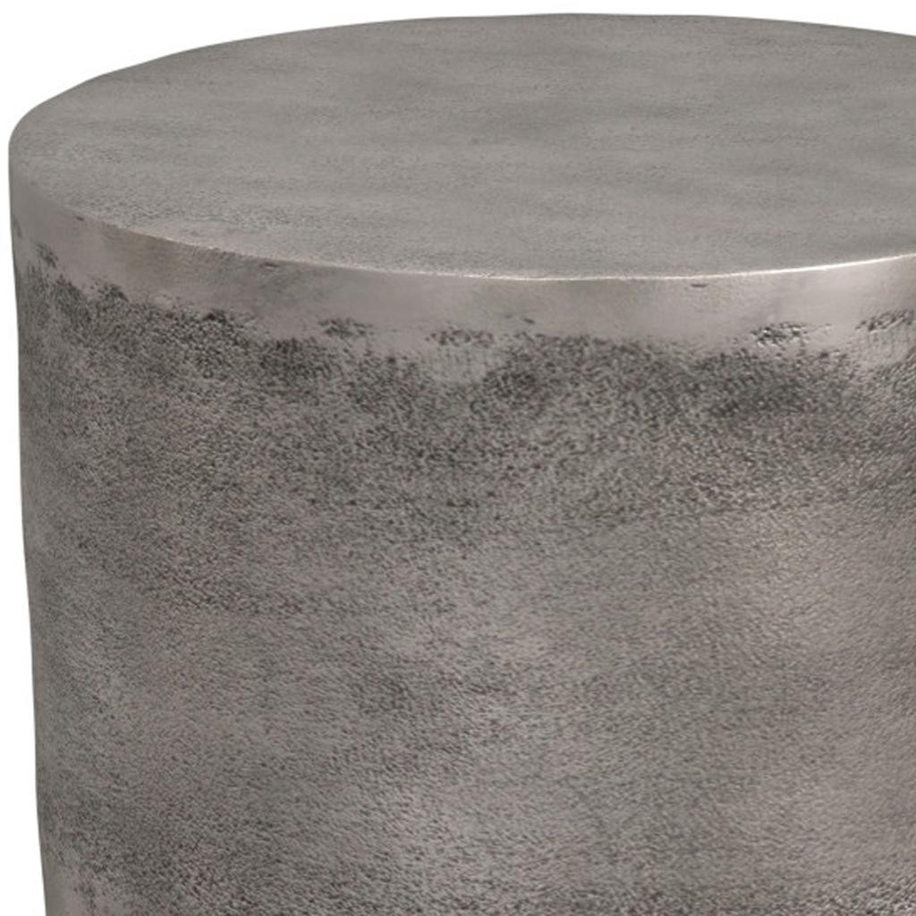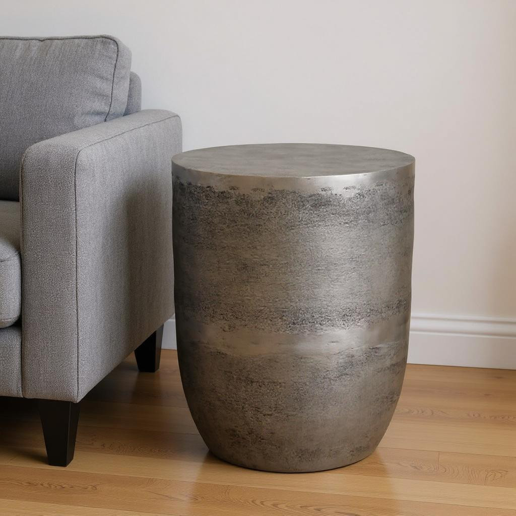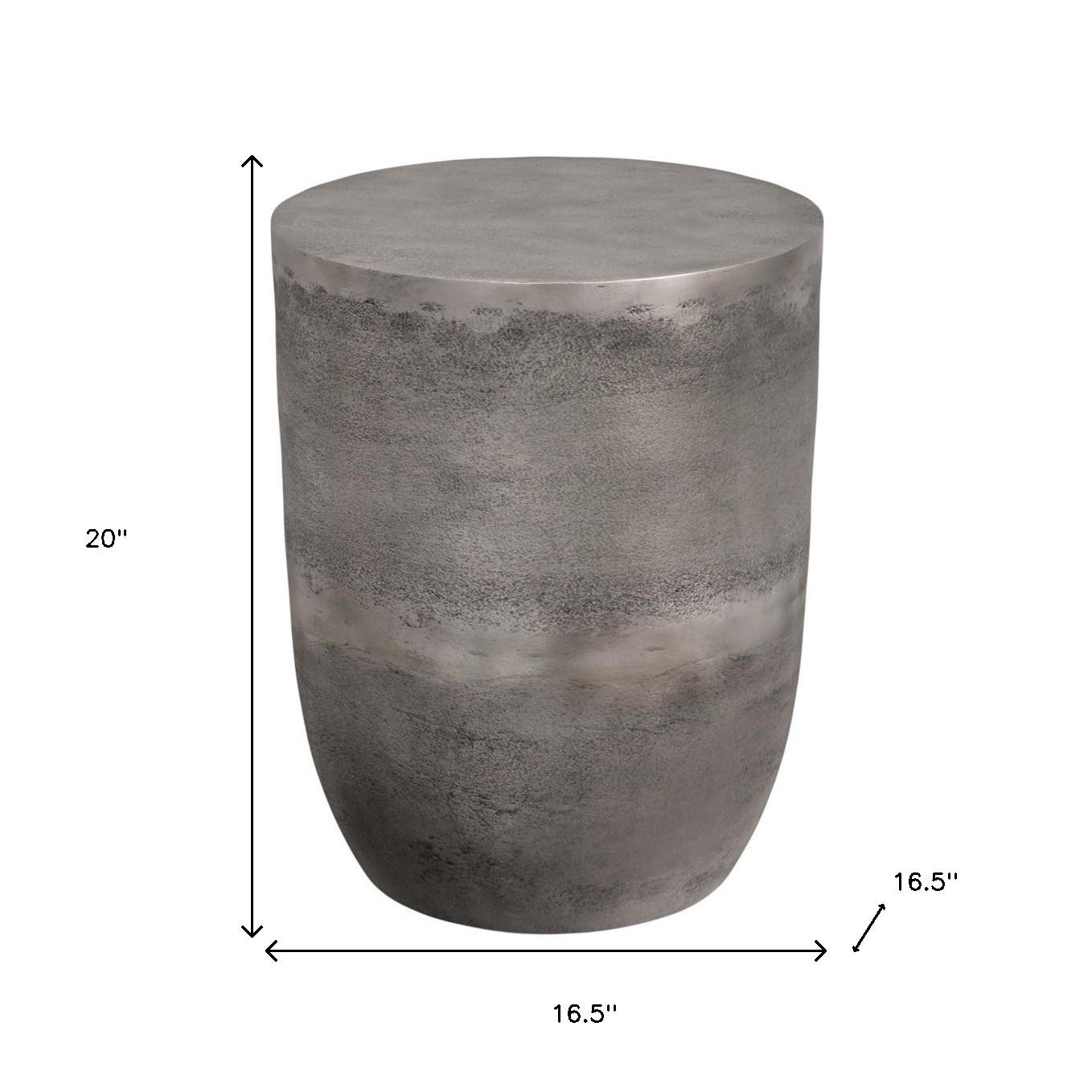 Show off your exquisite taste with this 20-inch silver aluminum round end table. Made of aluminum, the silver coloration throughout gives this piece an updated and refreshing look. An ideal location for placing your snacks and drinks, and a place to keep your lamp, frames, or other accessories. You can also use it as an entryway table to hold your keys. 20.00-inch h x 16.50-inch w x 16.50-inch d.