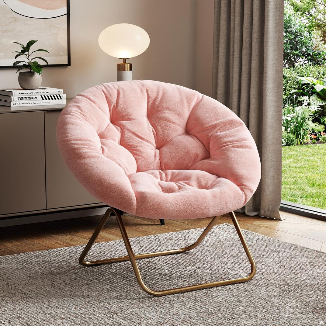 This 26-inch pink and brown tufted heavy duty plastic lounge chair will add a beautiful decorative accent to your decor. The sturdy inner frame is built with high quality plastic, featuring a fixed back that is accented with soft and comfortable cushioning. The tufted cushions add fine designer detailing. 32.28-inch h x 25.59-inch w x 25.59-inch d.