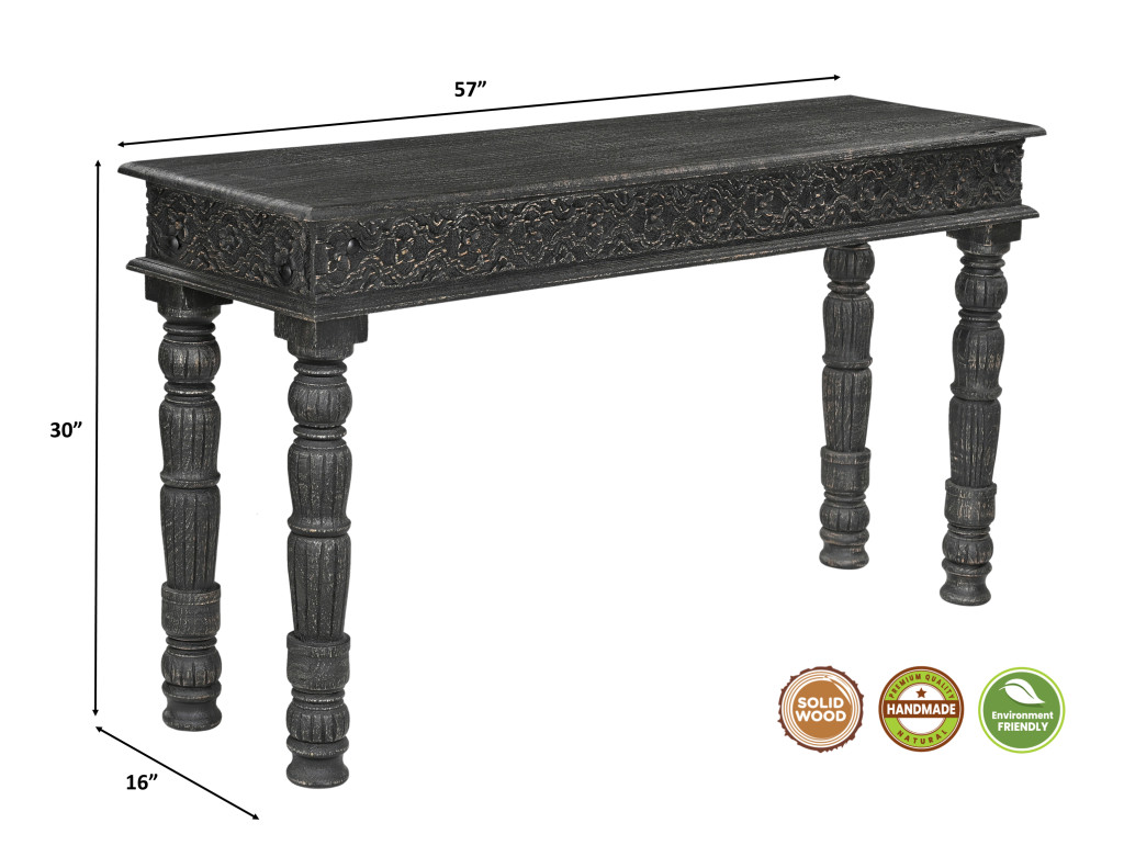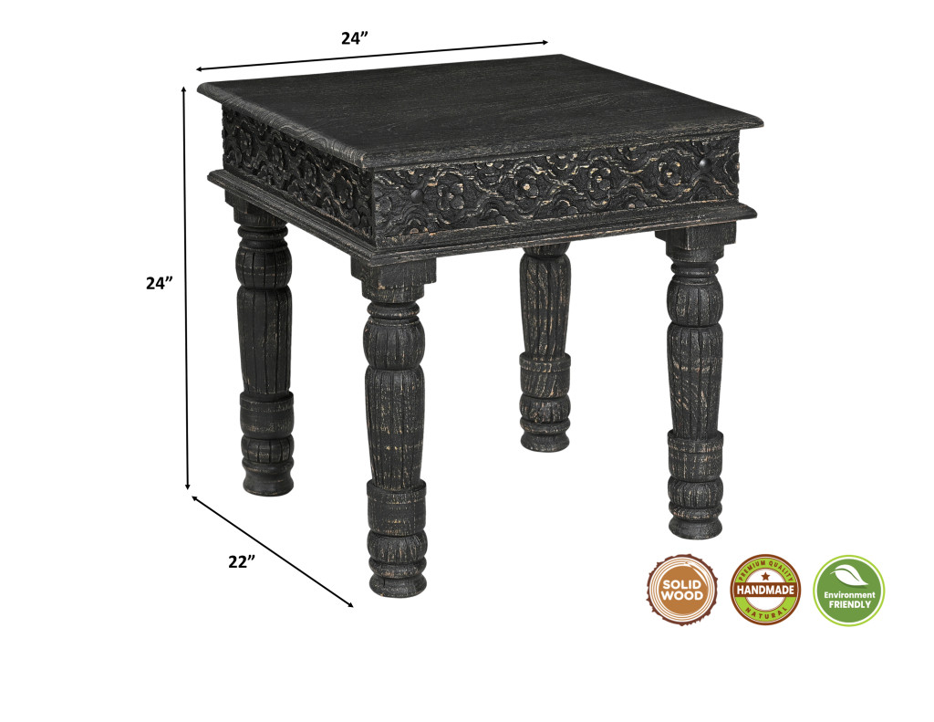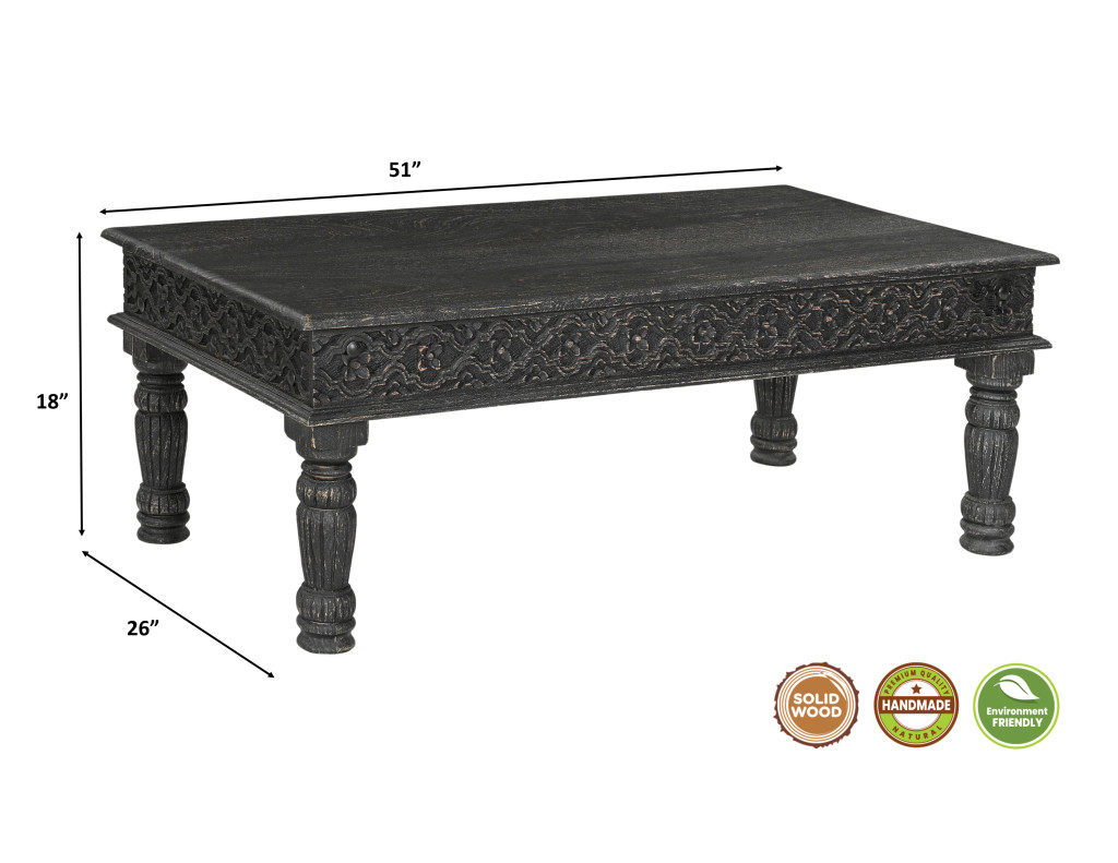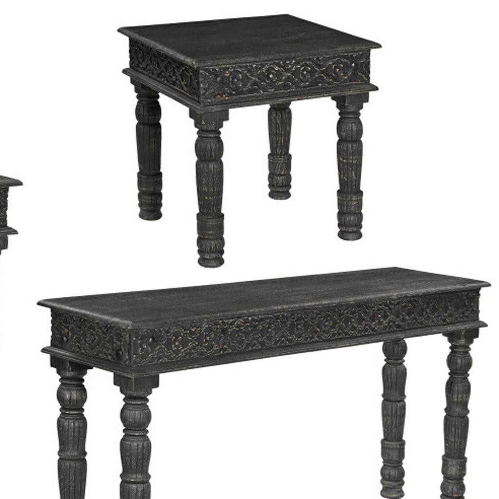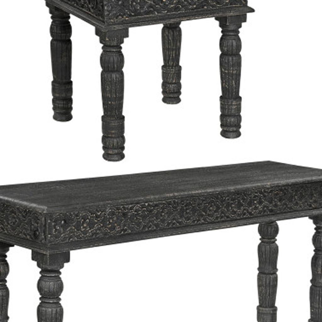 This coffee table set is just what you need to get your living room or lounge area set up and ready. Create an inspiring atmosphere in most any room with this black solid wood table. Complete with a purposefully distressed finish, this table has an aged, vintage, and rustic feel. This rectangular table is an classic yet updated way to accent your room. It has an attractive design that will definitely breathe some fresh air into your interior. 18.00-inch h x 51.00-inch w x 26.00-inch d.